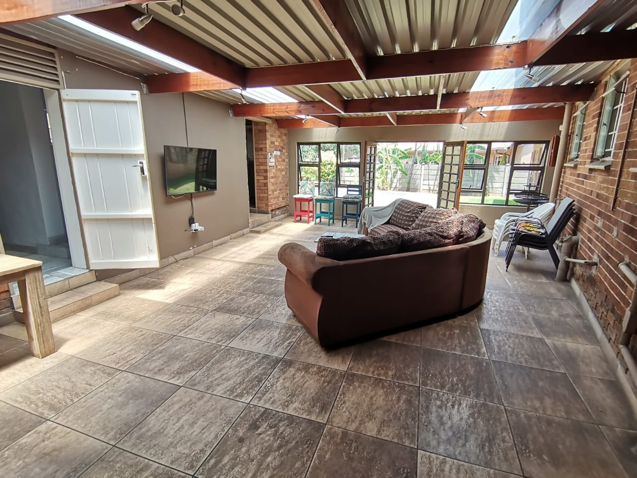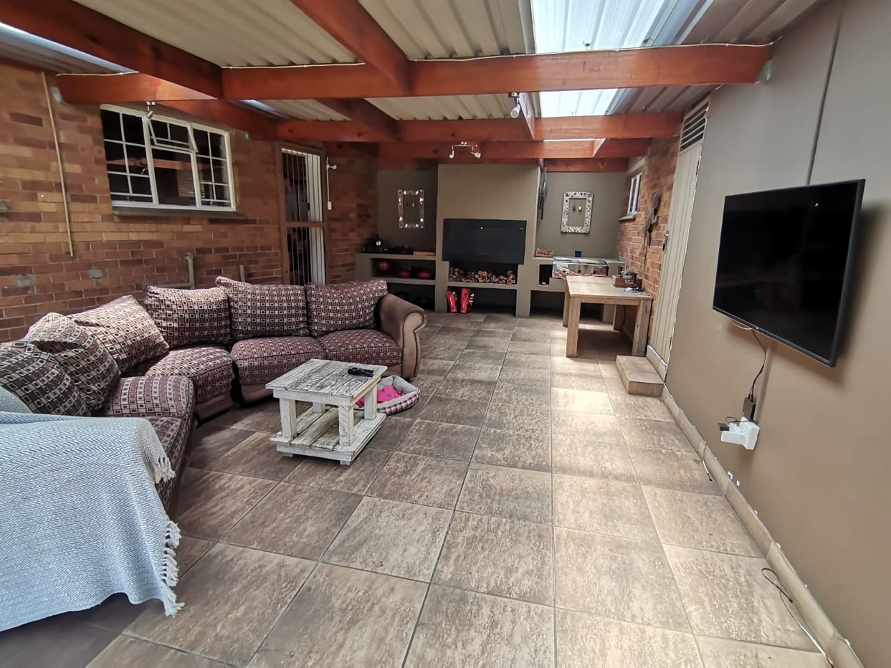 Fully enclosed entertainment patio featuring a built-in braai—ideal for social gatherings in any season