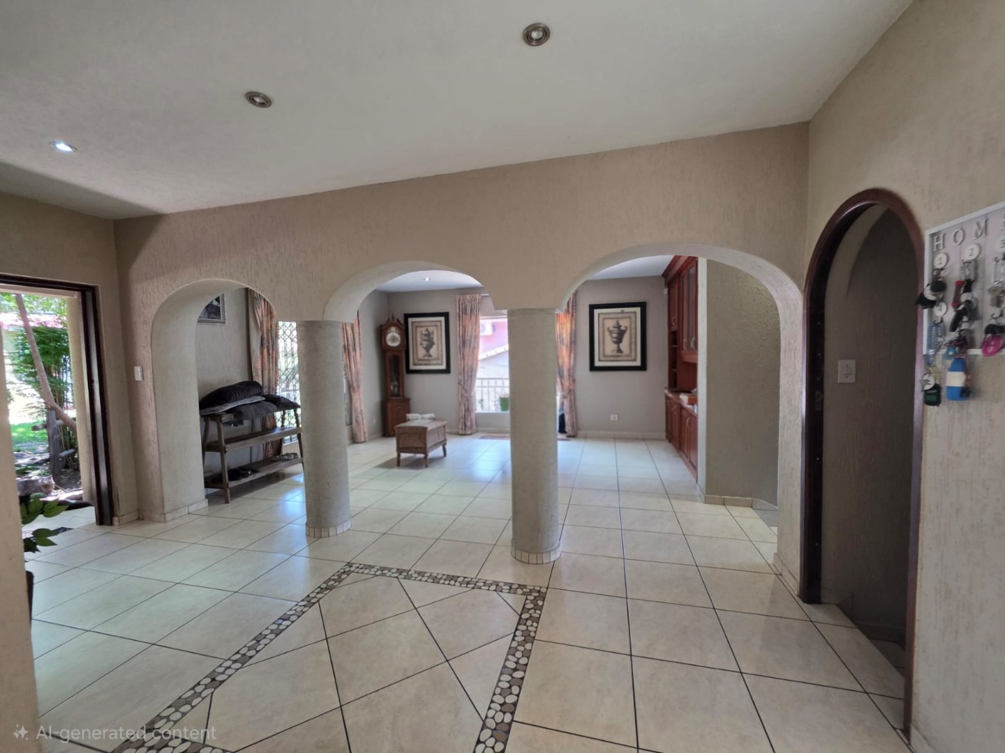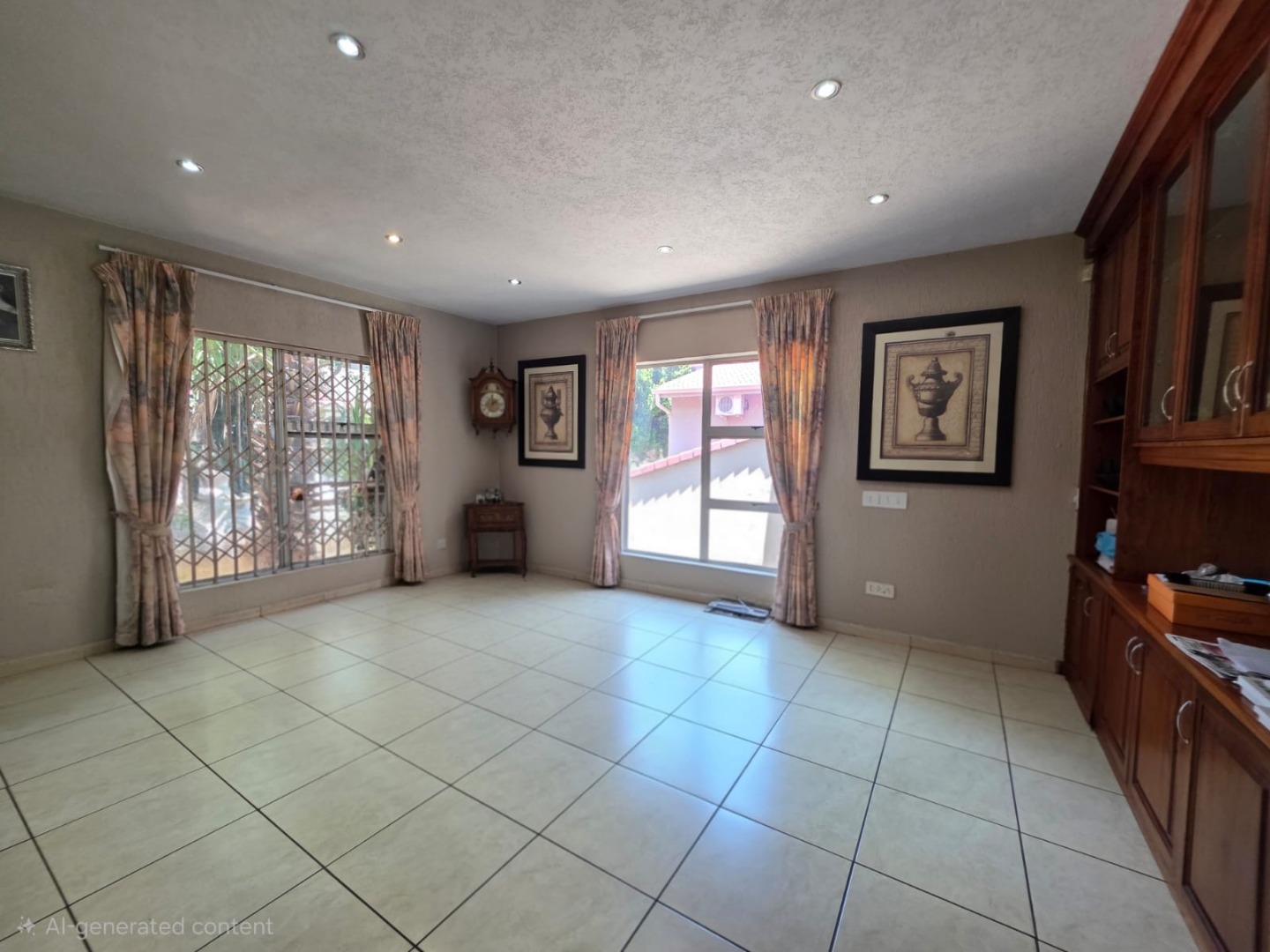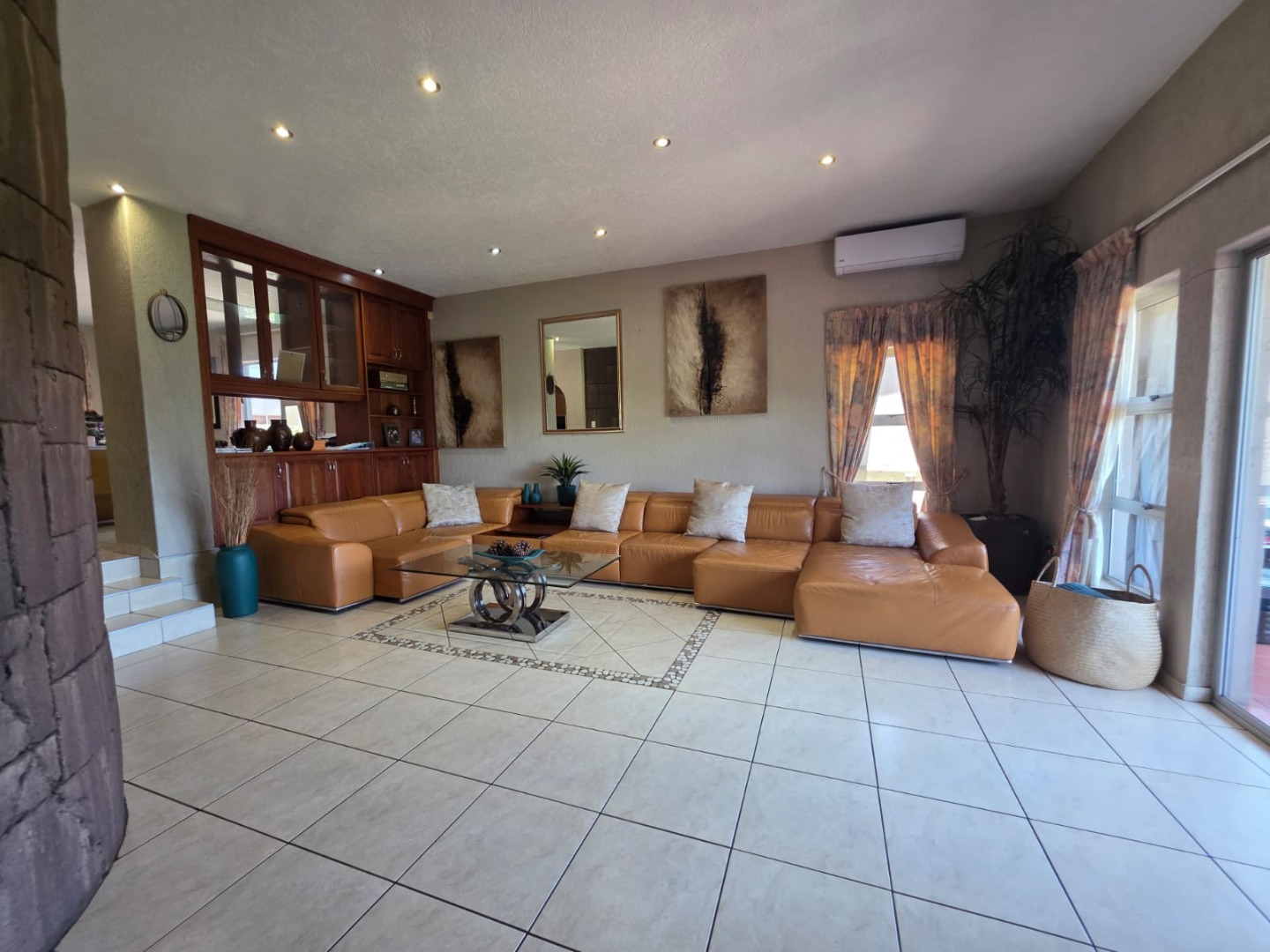 This inviting home features a well-designed open-plan layout, encompassing one lounge, a dedicated dining room, and a functional kitchen, ideal for both daily living and entertaining. Air conditioning ensures comfort throughout the year, enhancing the living experience within this spacious residence.