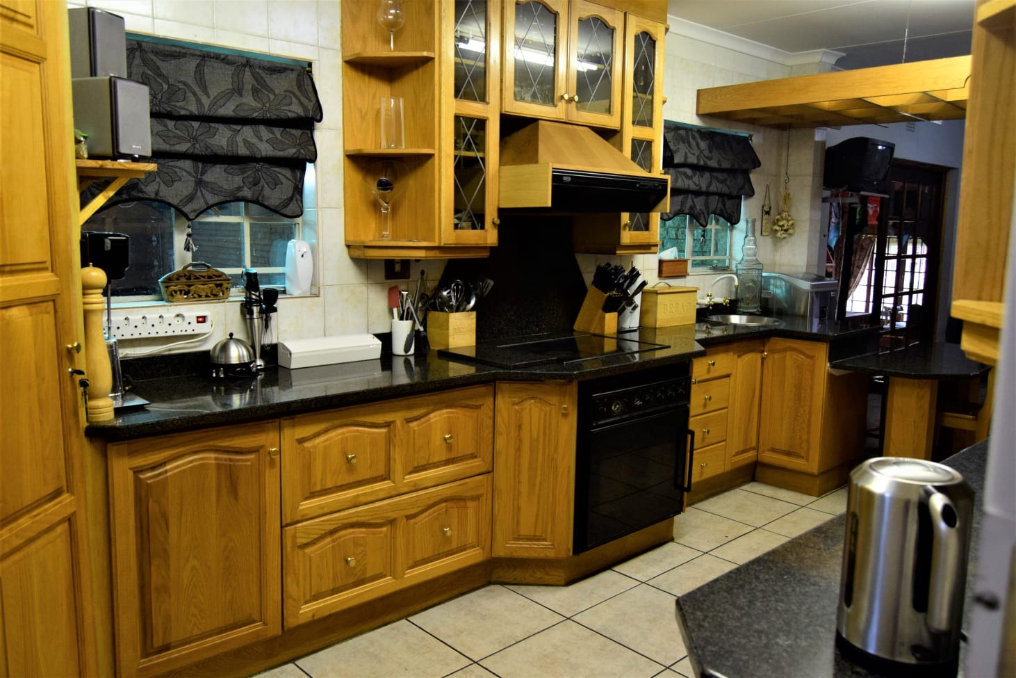 Gourmet Kitchen — Featuring solid oak cupboards, granite countertops, a gas stove, air-conditioning, and ample space for family gatherings
