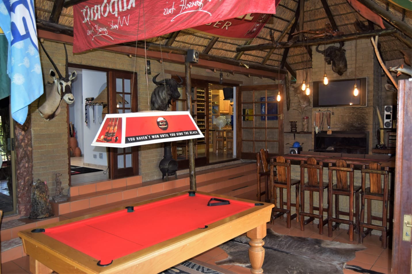 Added Extras — Pool table and elegant Rhodesian teak wall units included