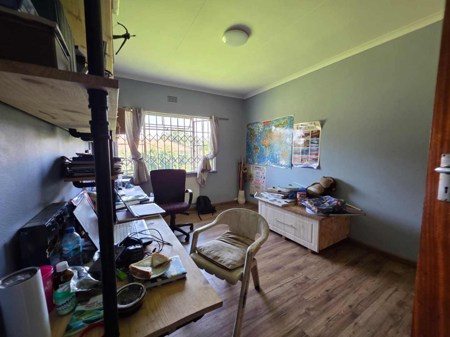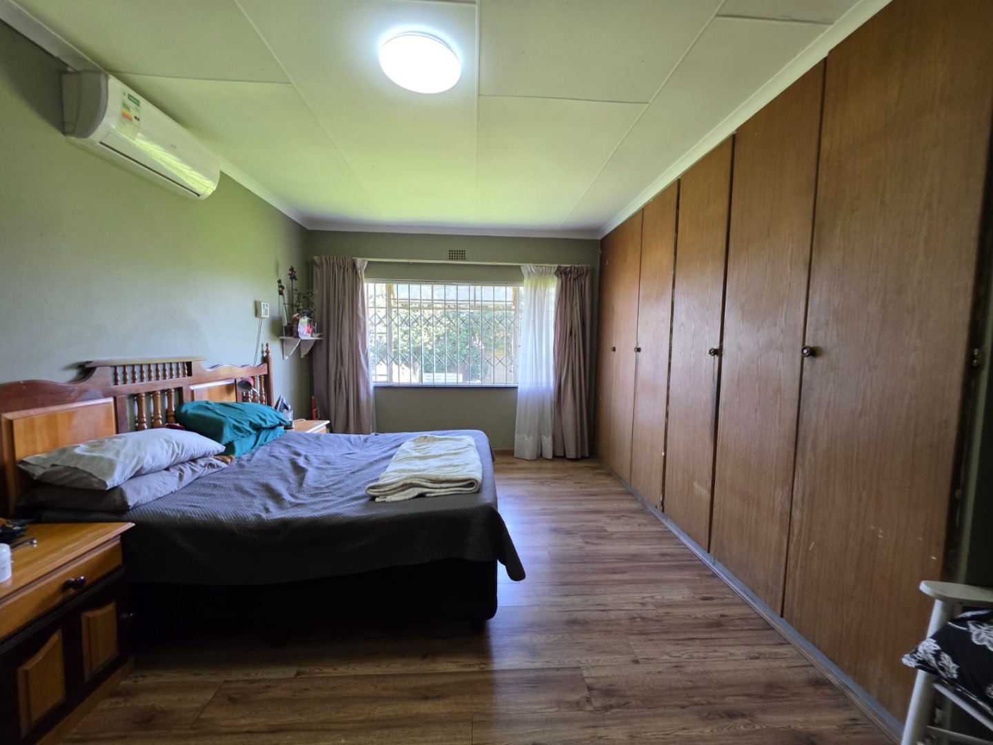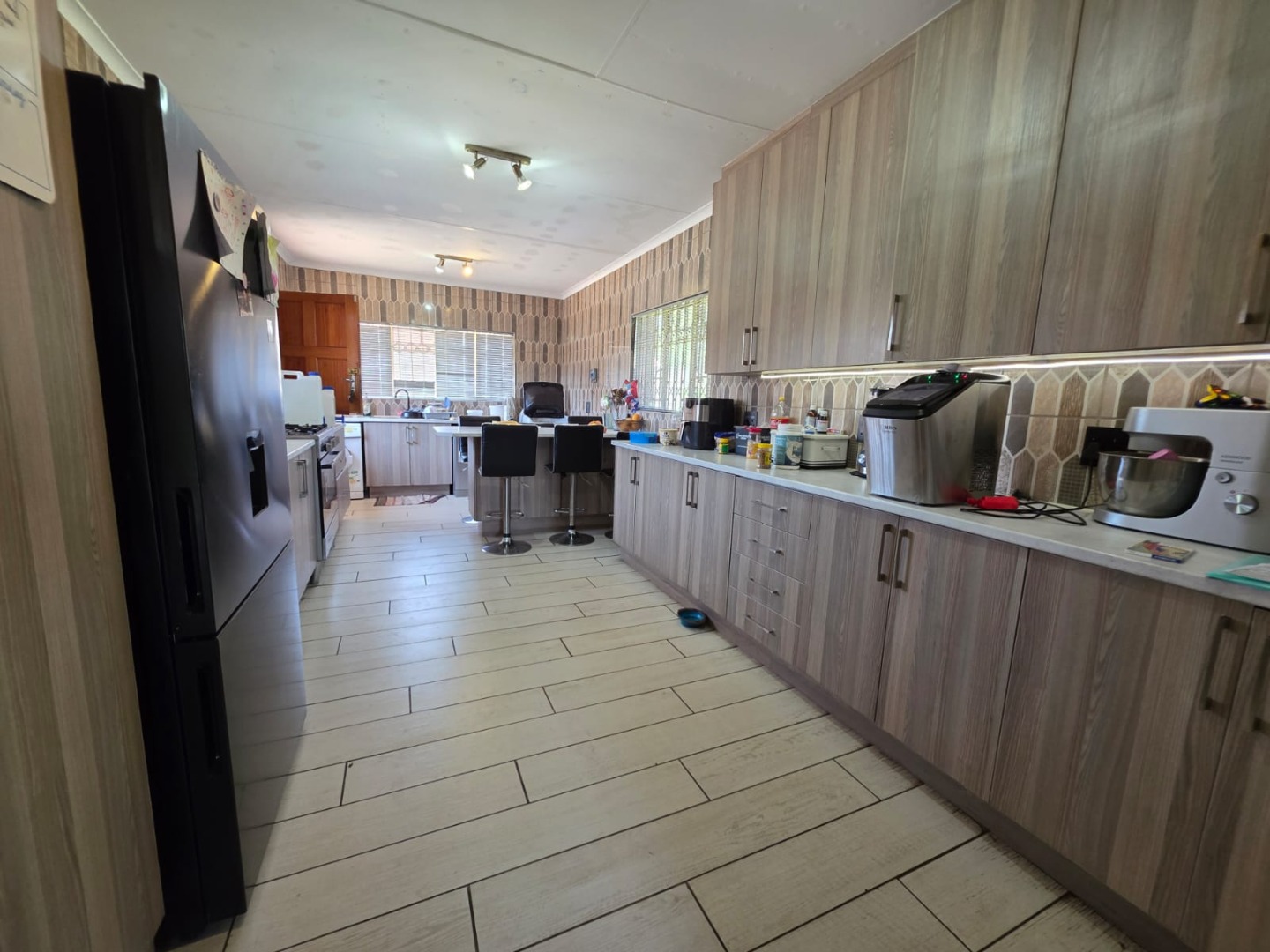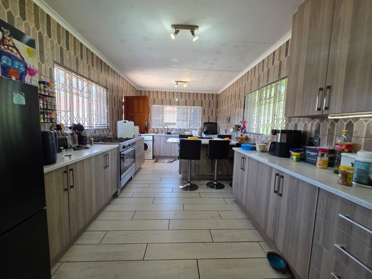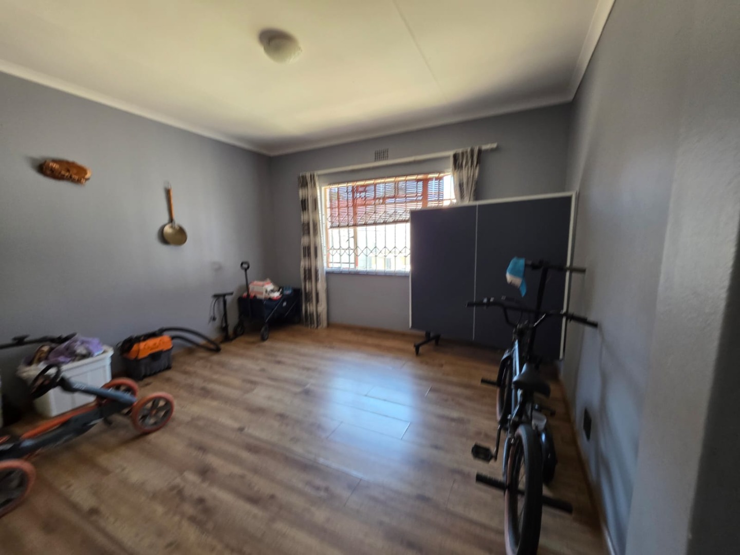 Set on a generous 1188 sqm erf, the property truly shines outdoors. A private swimming pool, currently covered, is surrounded by brick paving, creating an ideal space for leisure. The well-maintained green lawn and mature trees provide a serene backdrop, while a red brick paved area adds to the kerb appeal. For enhanced sustainability, the home is fitted with solar panels on the roof. Domestic rooms and outside toilets cater to practical needs.
