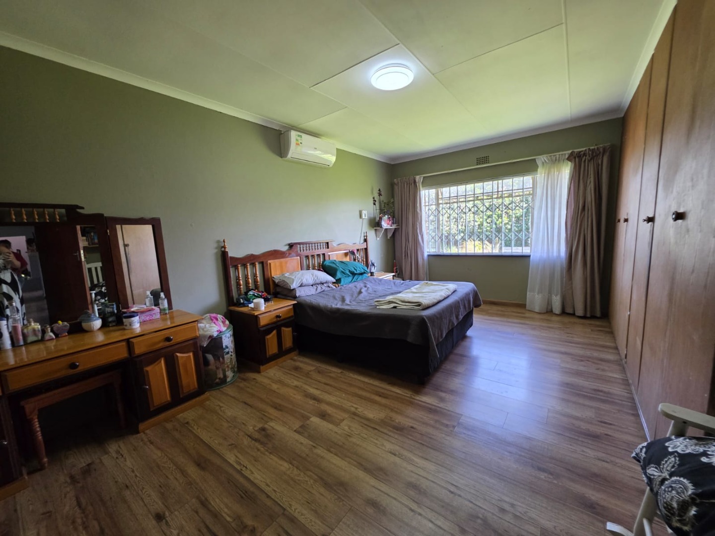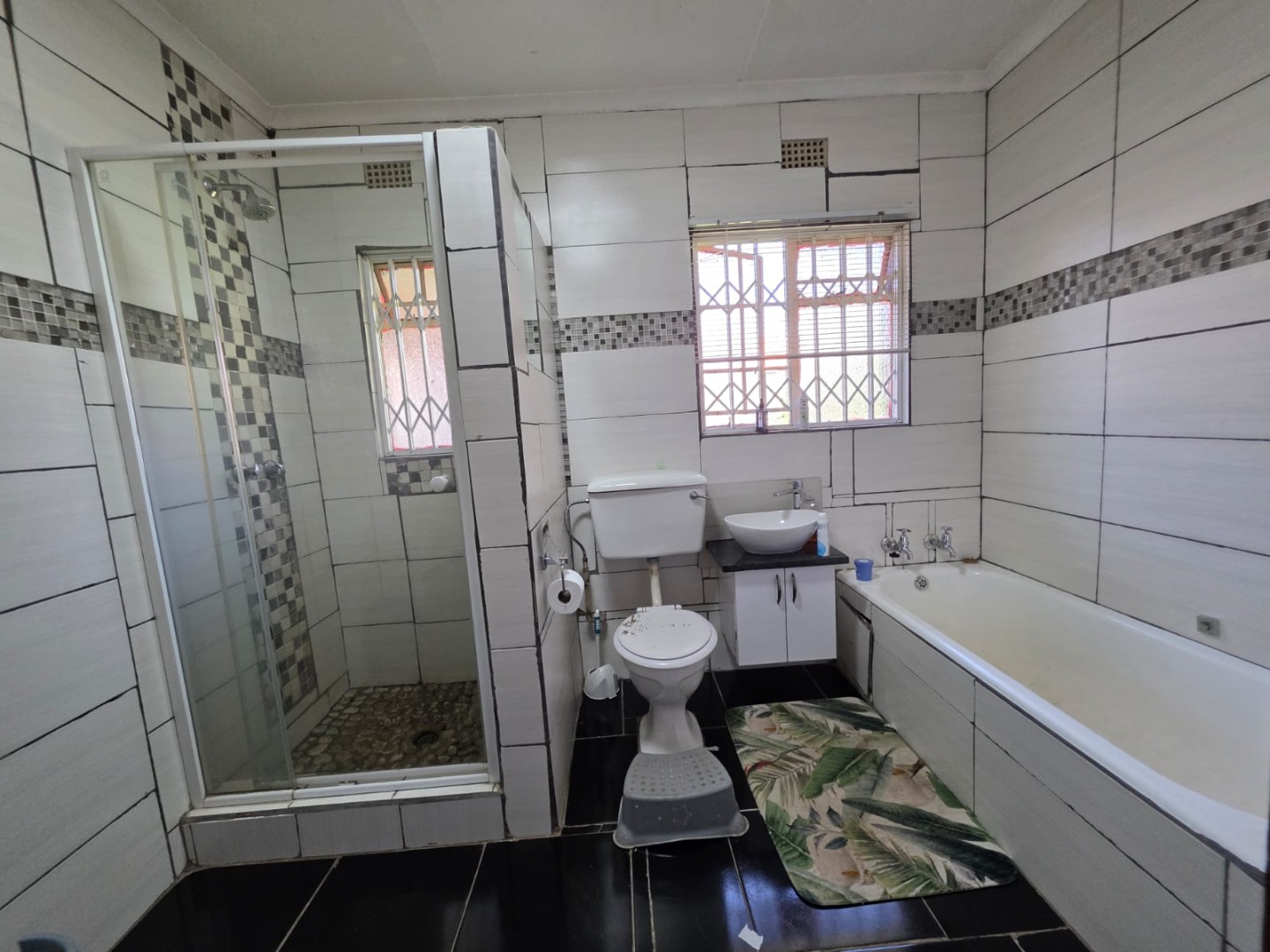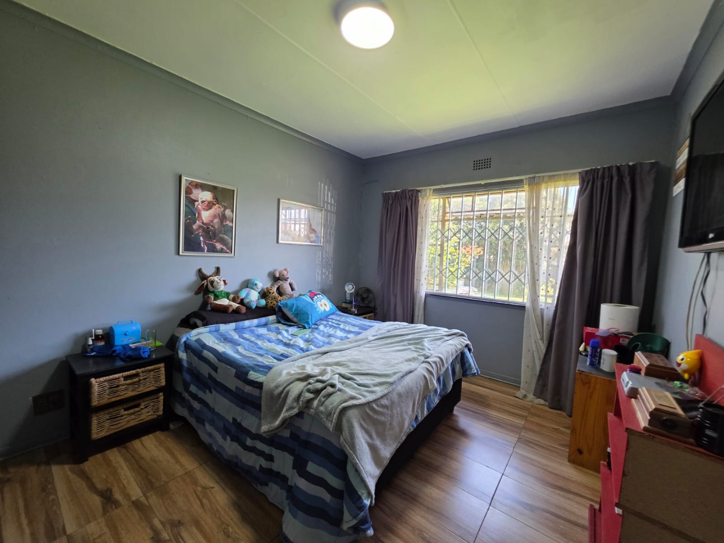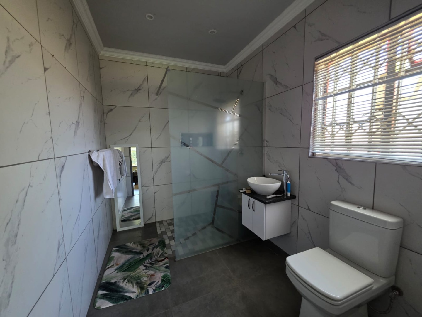 Set on a generous 1188 sqm erf, the property truly shines outdoors. A private swimming pool, currently covered, is surrounded by brick paving, creating an ideal space for leisure. The well-maintained green lawn and mature trees provide a serene backdrop, while a red brick paved area adds to the kerb appeal. For enhanced sustainability, the home is fitted with solar panels on the roof. Domestic rooms and outside toilets cater to practical needs.