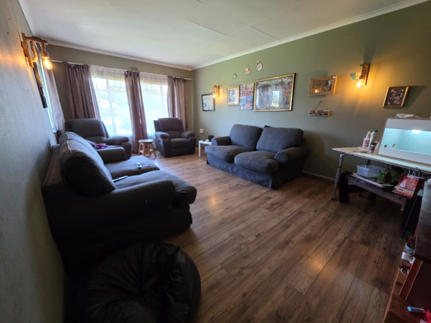 Discover this inviting 4-bedroom, 2-bathroom family home situated in the suburban heart of Vaalpark, Sasolburg. This residence offers a comfortable and practical living environment, perfect for a growing family. The interior boasts a spacious lounge and a dedicated dining room. One living area features attractive wood laminate flooring, while another offers direct access to the private backyard through a large sliding glass door, enhancing indoor-outdoor flow.