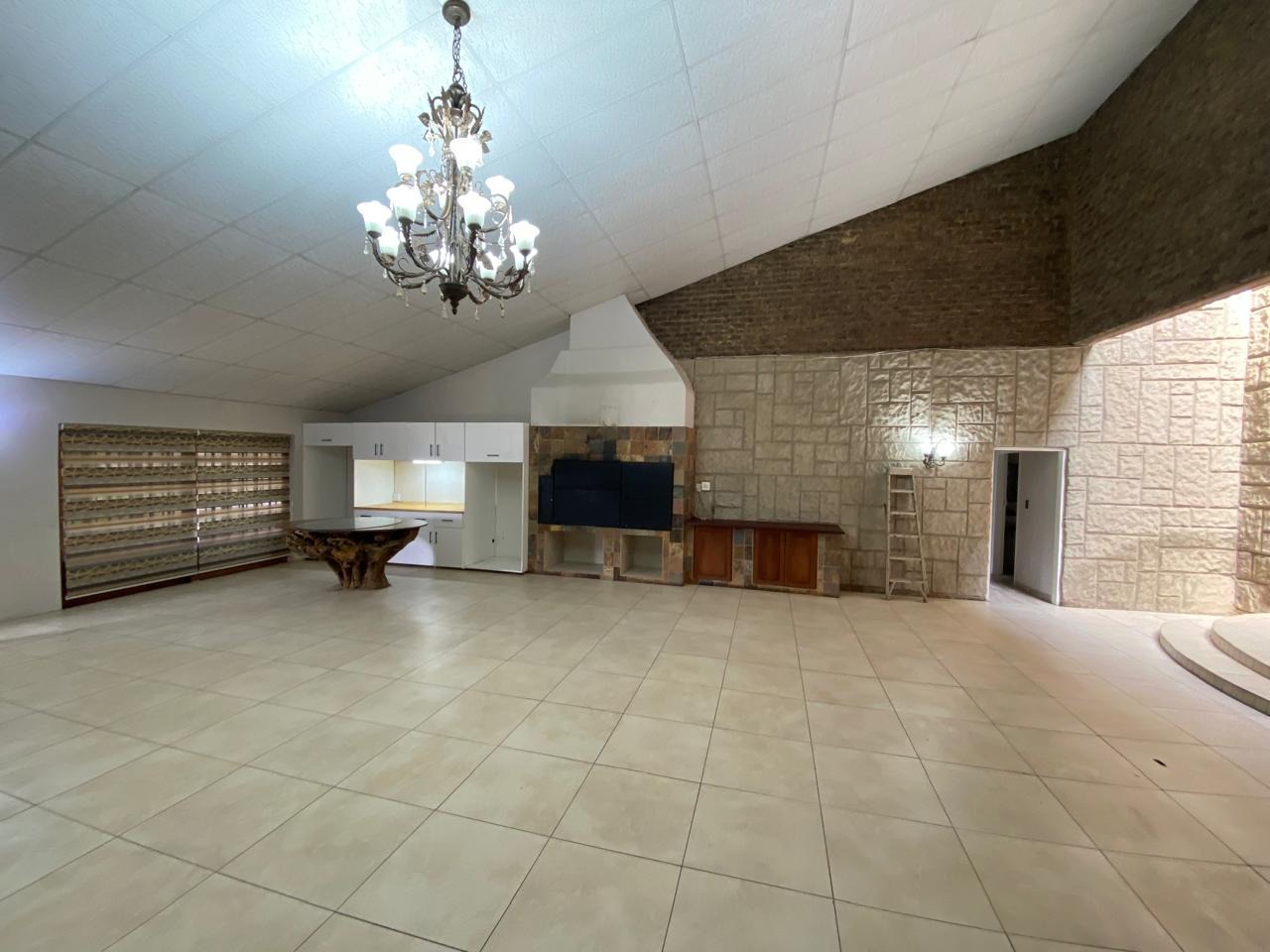 Enjoy multiple living spaces including a front portal, an extra room ideal for an office or guest suite, and a large entertainment area complete with a built-in braai and impressive additional features. A cozy fireplace adds warmth and charm to the living area.