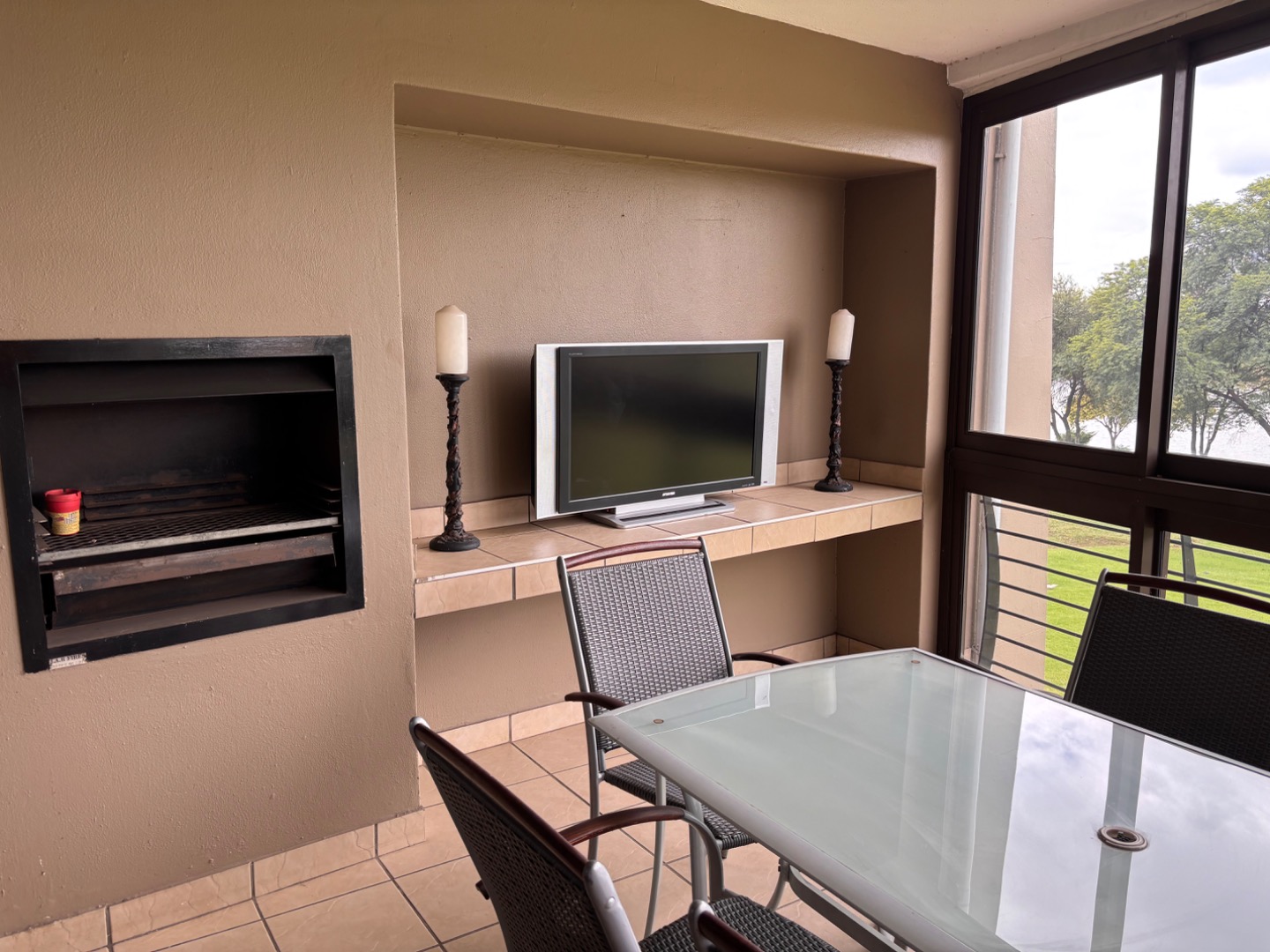 Nestled within the prestigious Emfuleni Golf Estate in Vanderbijlpark, this residential sale offers an exceptional lifestyle opportunity in South Africa. Enjoy the tranquility of a secure, gated community with direct riverfrontage and scenic views, perfect for those seeking a blend of luxury and nature. The interior boasts a spacious, open-plan living area with tiled flooring and abundant natural light streaming through large sliding glass doors, creating an inviting atmosphere. The modern kitchen is a chef's delight, featuring sleek dark cabinetry, granite-look countertops, stainless steel appliances, and a convenient breakfast bar. A dedicated dining room seamlessly connects these spaces, ideal for entertaining. This home comprises two comfortable bedrooms, including an ensuite bathroom for added privacy. Both bedrooms are equipped with ceiling fans for climate control and offer ample storage, with one featuring extensive built-in wardrobes. The property includes two well-appointed bathrooms, one with a full bathtub and shower, and another with a contemporary rainfall shower. Step outside to discover a covered outdoor entertainment area, complete with a built-in braai, perfect for al fresco dining and enjoying the picturesque surroundings. A private balcony extends the living space, offering expansive views of the lake and lush green lawns. Residents also benefit from access to a communal pool, a club house, and the estate's golf course. Parking is provided with a single garage and an additional parking space. Security is paramount within this security estate, featuring 24-hour security, a security post, and access gates, ensuring peace of mind. The property is also equipped with fibre connectivity, catering to modern lifestyle needs. This home truly combines comfort, convenience, and an enviable waterfront golf estate setting. Key Features: * 2 Bedrooms, 2 Bathrooms (1 Ensuite) * Modern Kitchen with Stainless Steel Appliances * Spacious Open-Plan Living Area * Covered Outdoor Entertainment Area with Built-in Braai * Private Balcony with Scenic Lake Views * Access to Communal Pool & Golf Course * Single Garage & Additional Parking * 24-Hour Security & Gated Community * Fibre Connectivity