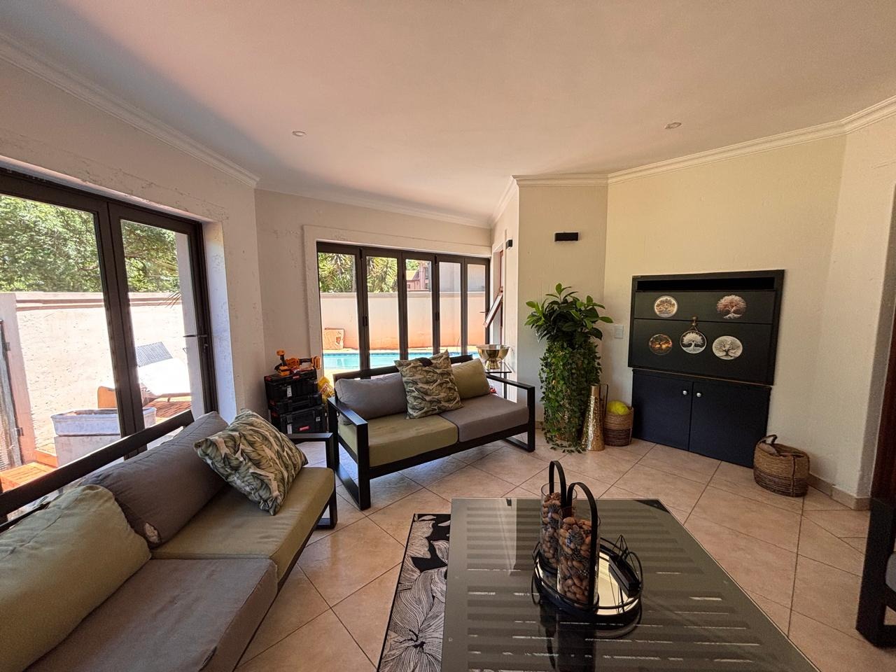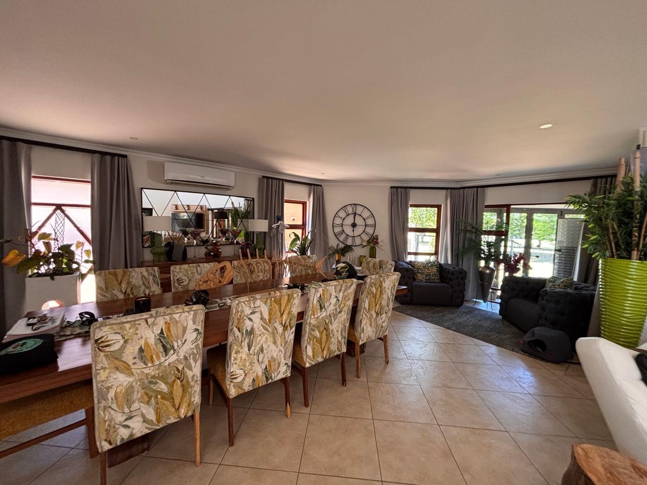 Spanning 400 sqm on a 581 sqm erf, this home is designed for comfort and functionality. An inviting entrance hall leads to an open-plan layout, featuring a lounge and a family/TV room. Two modern kitchens with a pantry cater to diverse culinary needs. Accommodation includes thirty-one bedrooms, three with en-suite bathrooms, plus a guest toilet, totaling 3.5 bathrooms. A dedicated study, laundry room, and air conditioning enhance daily living.