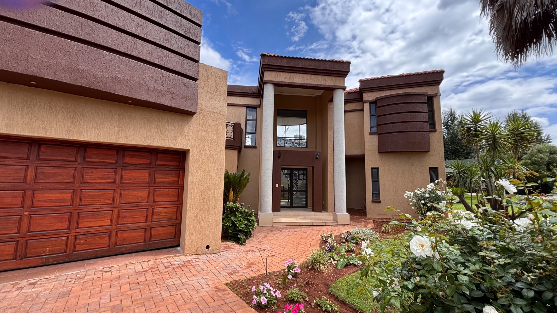 Discover an exceptional lifestyle within the prestigious Emfuleni Golf Estate, Vanderbijlpark. This modern, multi-story residence, set on an 843 sqm erf, presents a striking kerb appeal with its grand entrance, prominent pillars, and meticulously landscaped front garden. As part of this secure, gated community, residents enjoy 24-hour security, CCTV, and exclusive access to a country club, golf course, and tennis court, ensuring both peace of mind and an active, luxurious living experience. Step inside the expansive 350 sqm floor plan, designed for contemporary living. An impressive entrance hall features a grand spiral staircase with ornate wrought iron railings, bathed in natural light from large, curved windows. High ceilings and modern tiled flooring flow through the open-plan lounge, dining room, and family/TV room. The sleek, modern kitchen is a focal point, equipped with dark cabinetry, integrated double ovens, and a distinctive curved island. Four generously sized bedrooms include two luxurious en-suites, complemented by 3.5 bathrooms in total, featuring a guest toilet and a spa bath. Air conditioning ensures year-round comfort. Outdoor living is equally inviting with a private garden, patio, and built-in braai, ideal for al fresco dining. A double garage, domestic rooms, and a dedicated laundry area add practical appeal. Enhanced security features include an access gate, security gate, and the estate's comprehensive 24-hour security and CCTV surveillance. The home is also fibre-ready, ensuring high-speed internet connectivity. Key Features: * 4 Bedrooms, 3.5 Bathrooms (2 En-suite) * Modern Open-Plan Living with High Ceilings * Sleek Kitchen with Integrated Appliances * Grand Spiral Staircase & Abundant Natural Light * Double Garage & Domestic Rooms * Private Garden, Patio & Built-in Braai * Air Conditioning & Fibre Connectivity * Secure Golf Estate Living with 24-Hour Security