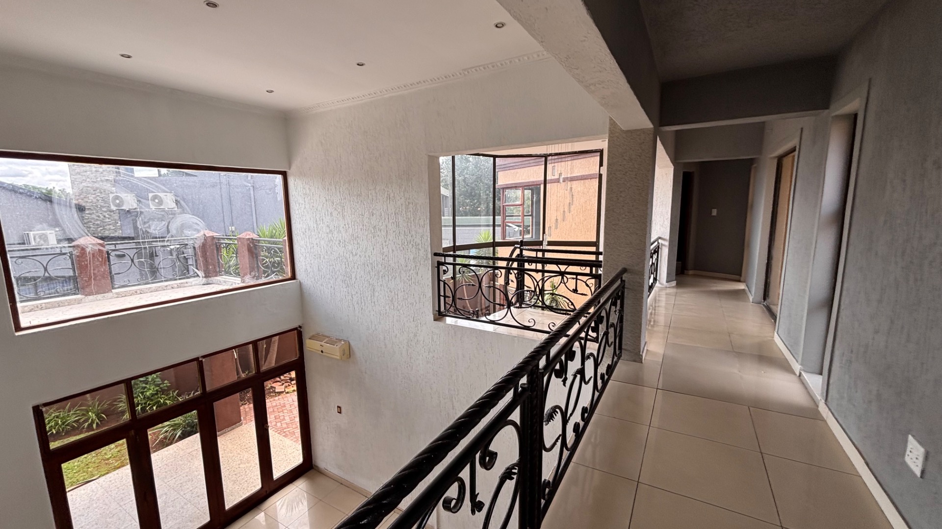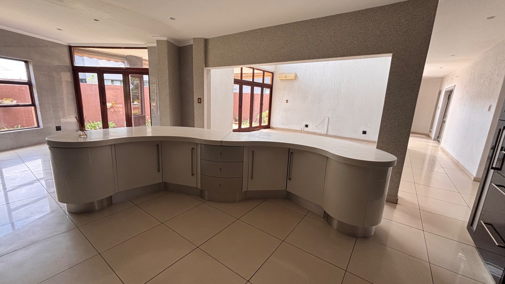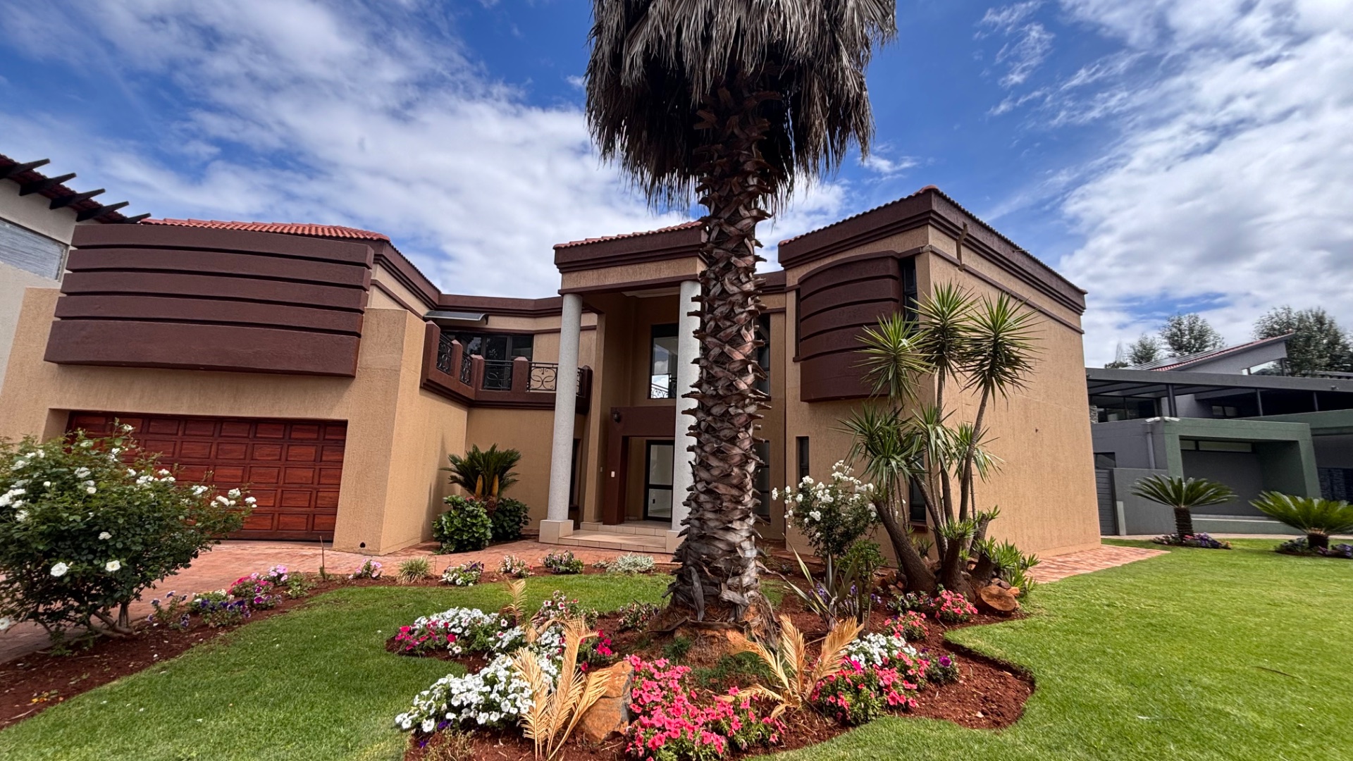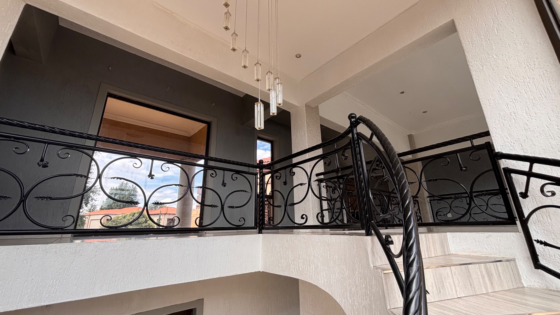 Discover an exceptional lifestyle within the prestigious Emfuleni Golf Estate, Vanderbijlpark. This modern, multi-story residence, set on an 843 sqm erf, presents a striking kerb appeal with its grand entrance, prominent pillars, and meticulously landscaped front garden. As part of this secure, gated community, residents enjoy 24-hour security, CCTV, and exclusive access to a country club, golf course, and tennis court, ensuring both peace of mind and an active, luxurious living experience. Step inside the expansive 350 sqm floor plan, designed for contemporary living. An impressive entrance hall features a grand spiral staircase with ornate wrought iron railings, bathed in natural light from large, curved windows. High ceilings and modern tiled flooring flow through the open-plan lounge, dining room, and family/TV room. The sleek, modern kitchen is a focal point, equipped with dark cabinetry, integrated double ovens, and a distinctive curved island. Four generously sized bedrooms include two luxurious en-suites, complemented by 3.5 bathrooms in total, featuring a guest toilet and a spa bath. Air conditioning ensures year-round comfort. Outdoor living is equally inviting with a private garden, patio, and built-in braai, ideal for al fresco dining. A double garage, domestic rooms, and a dedicated laundry area add practical appeal. Enhanced security features include an access gate, security gate, and the estate's comprehensive 24-hour security and CCTV surveillance. The home is also fibre-ready, ensuring high-speed internet connectivity. Key Features: * 4 Bedrooms, 3.5 Bathrooms (2 En-suite) * Modern Open-Plan Living with High Ceilings * Sleek Kitchen with Integrated Appliances * Grand Spiral Staircase & Abundant Natural Light * Double Garage & Domestic Rooms * Private Garden, Patio & Built-in Braai * Air Conditioning & Fibre Connectivity * Secure Golf Estate Living with 24-Hour Security