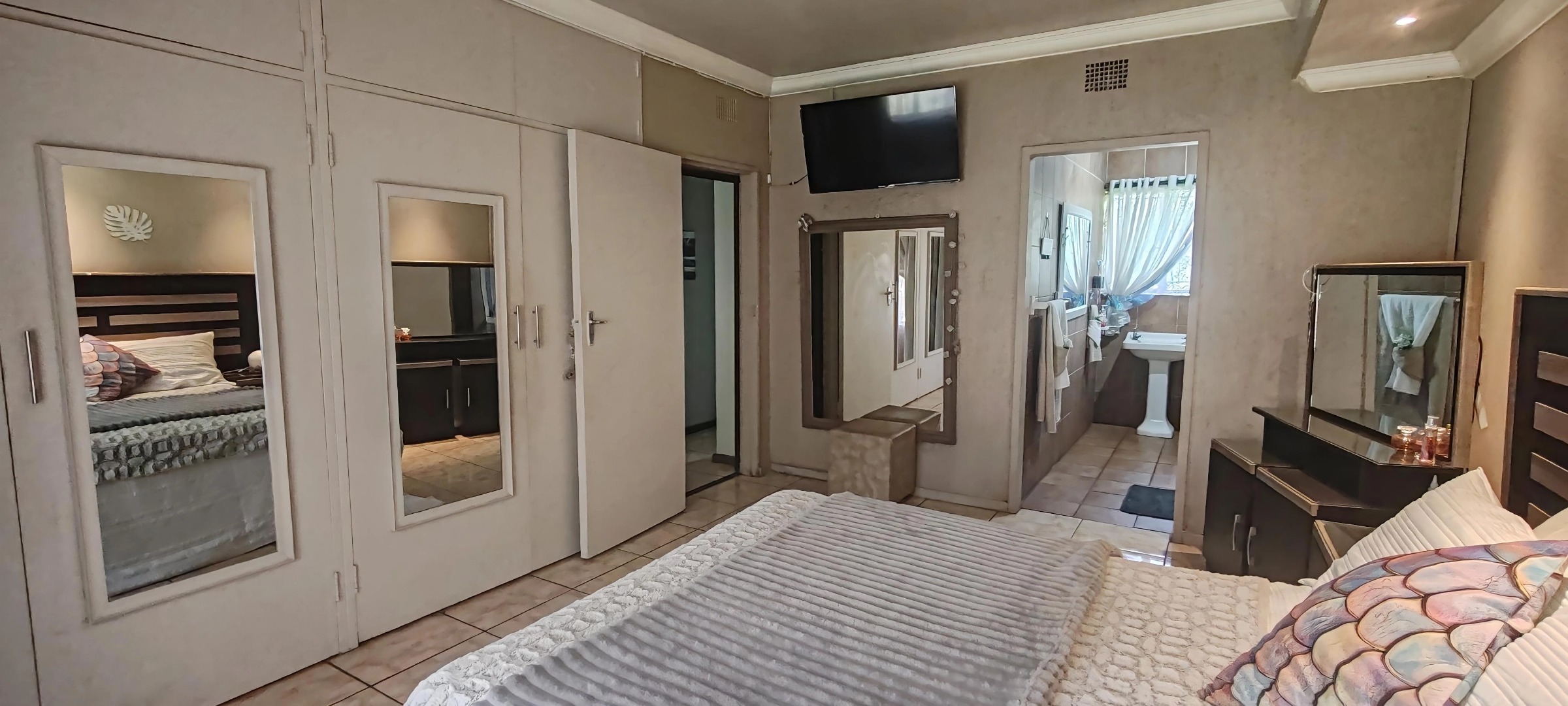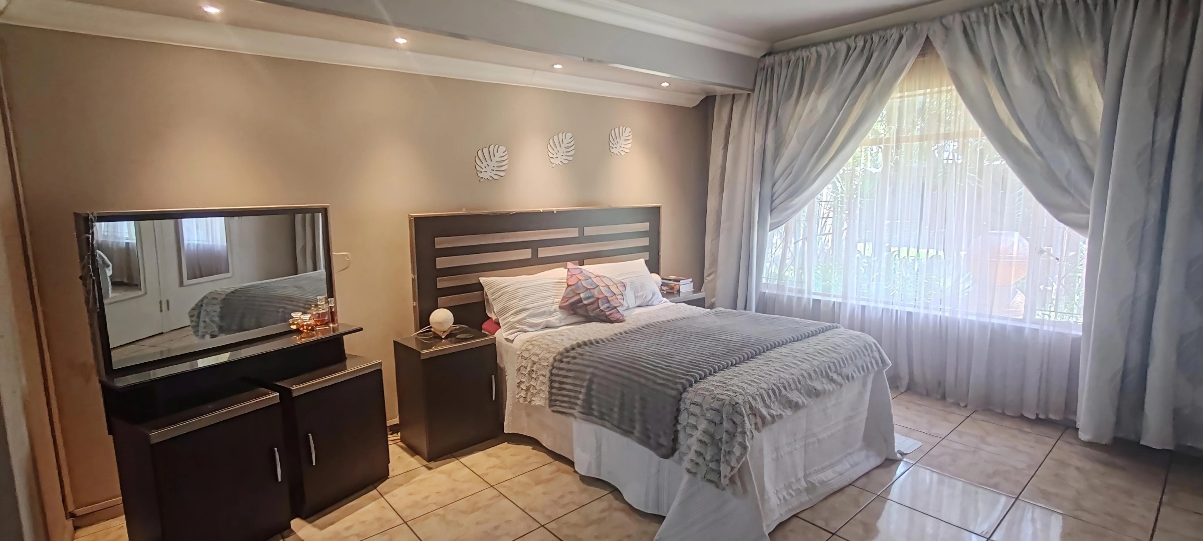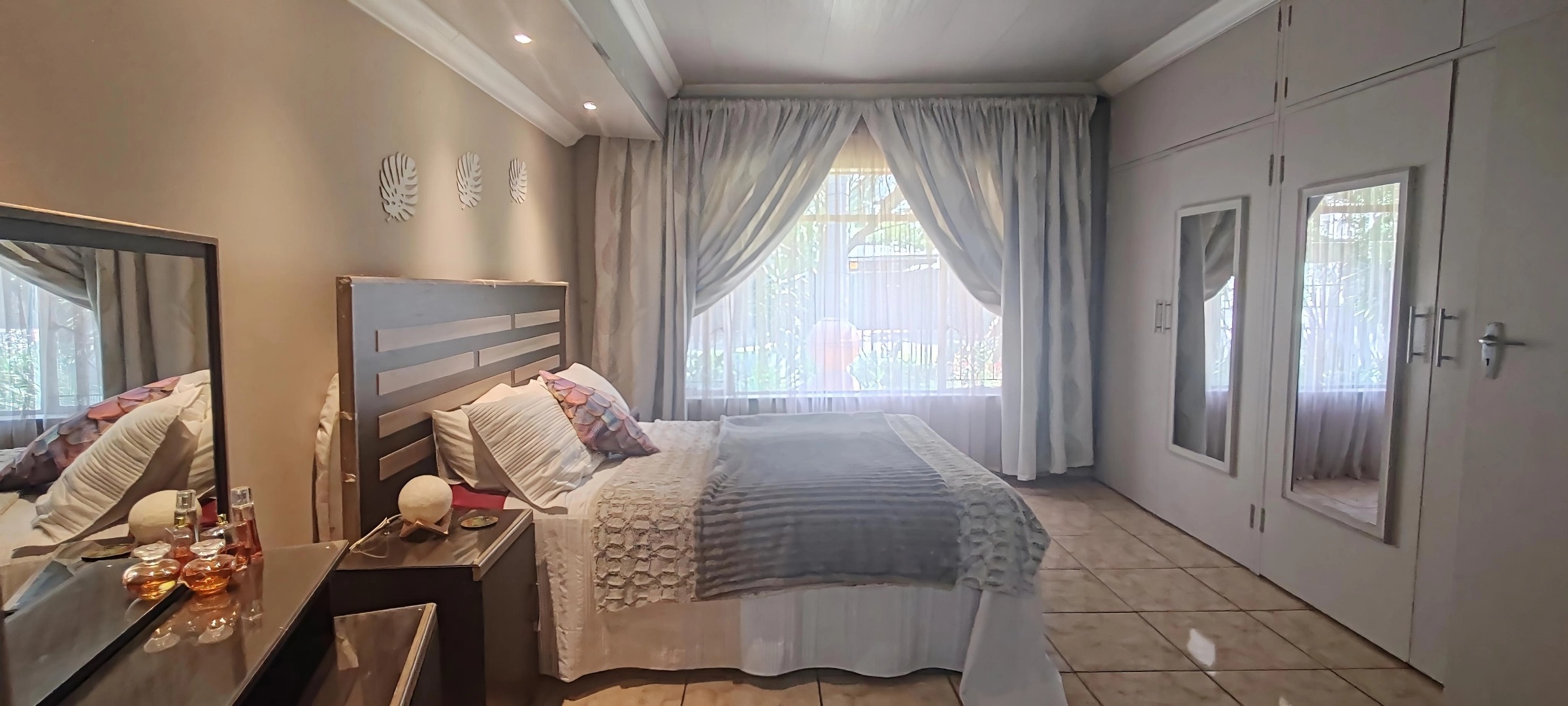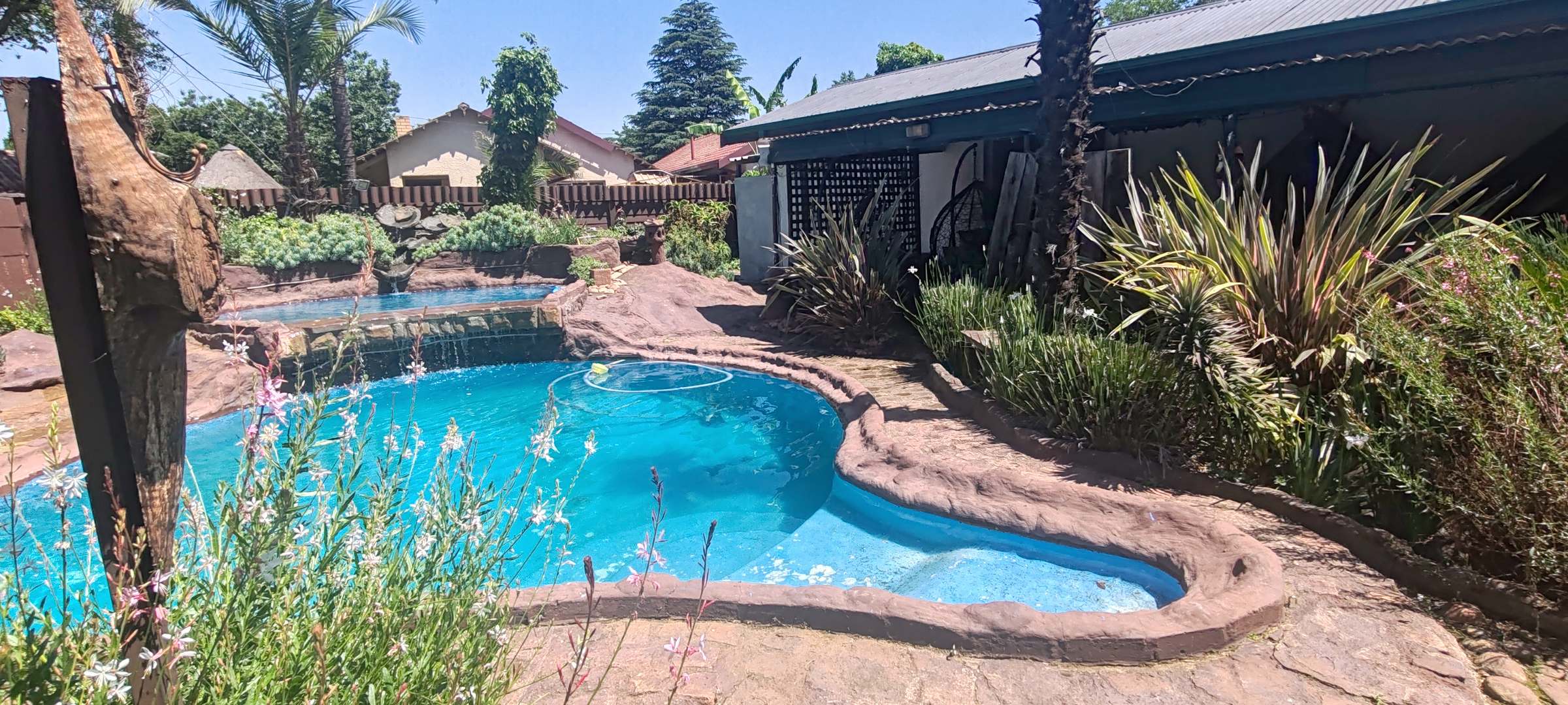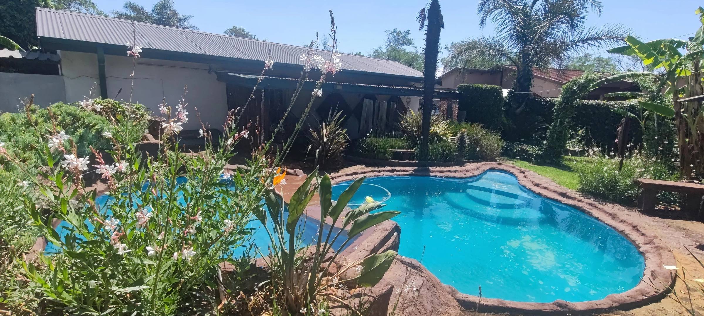 Step outside to your own private oasis — a beautifully landscaped garden blending seamlessly with a boma firepit, outdoor braai, and a sparkling swimming pool ideal for entertaining or unwinding after a long day. The neat front garden adds great curb appeal.