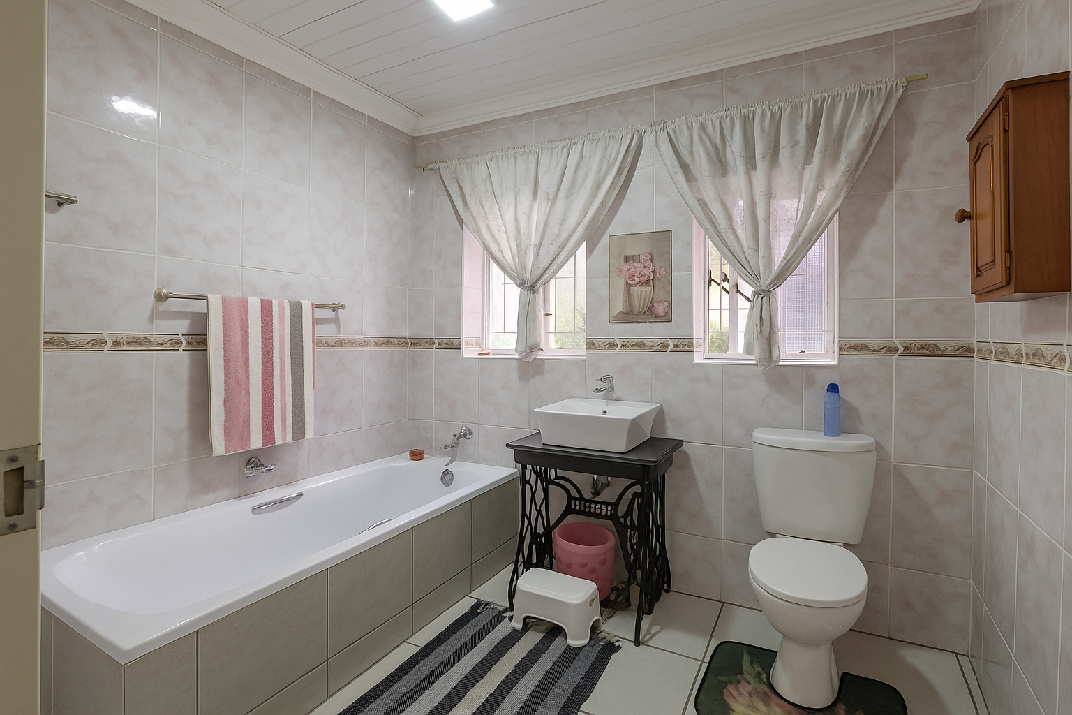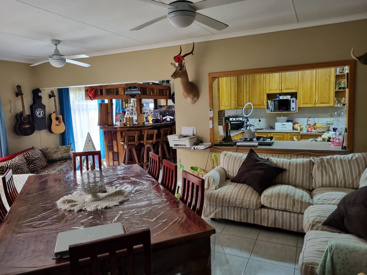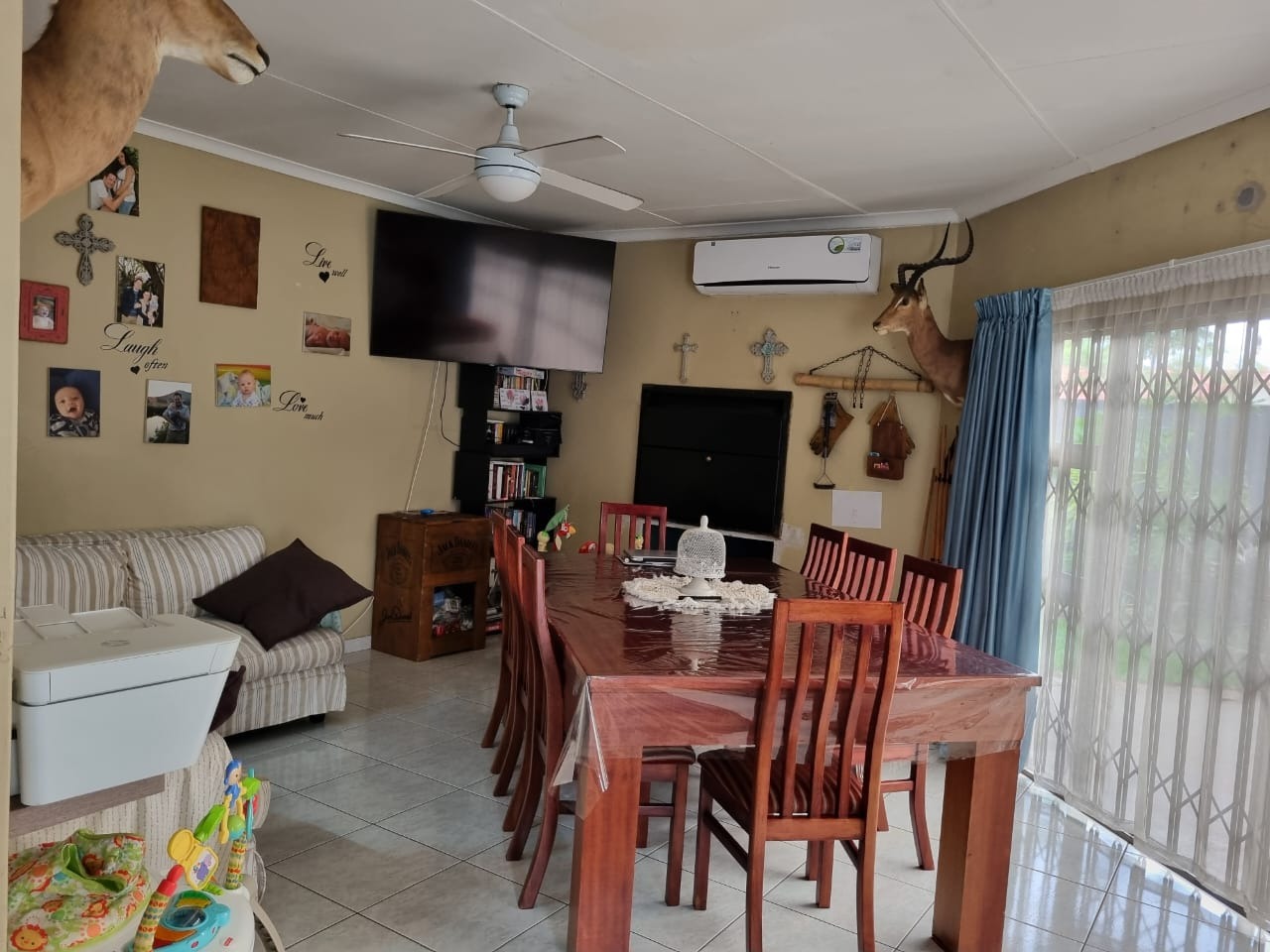 Discover this inviting family home situated in the established suburban area of Vanderbijlpark SE 1. Boasting a generous 928 sqm erf, this property offers a blend of comfortable living spaces and excellent outdoor amenities, perfect for modern family life. The contemporary dark-toned exterior and paved driveway provide appealing kerb appeal upon arrival. Inside, the residence features three well-proportioned bedrooms and two bathrooms, including a luxurious en-suite bathroom with a spa bath for ultimate relaxation. The layout includes a dedicated lounge, a dining room, and a functional kitchen, ensuring ample space for daily living and entertaining. A separate study provides a quiet area for work or hobbies, complemented by a convenient laundry room and additional storage. The outdoor area is a true highlight, centered around a sparkling private swimming pool. This outdoor oasis is enhanced by a large shade sail for sun protection and a charming brick-paved deck, ideal for alfresco dining and relaxation. The lush, irrigated garden, fed by a borehole and water tanks, creates a serene environment. Further enhancing the lifestyle is a built-in braai and a dedicated braai room, perfect for social gatherings. The property also offers extensive parking with four garages and additional parking space, and pets are welcome. Security is well-addressed with an alarm system, electric fencing, and an access gate, all within a totally walled perimeter for peace of mind. Connectivity is ensured with fibre internet availability. This home provides a secure and comfortable lifestyle in a sought-after South African suburb. Key Features: * 3 Bedrooms, 2 Bathrooms (1 En-suite) * Private Swimming Pool with Shade Sail * 4 Garages and Ample Parking * Built-in Braai and Braai Room * Study, Laundry, and Storage * Borehole, Irrigation System, Water Tanks * Alarm System, Electric Fencing, Access Gate * Fibre Ready * Pets Allowed