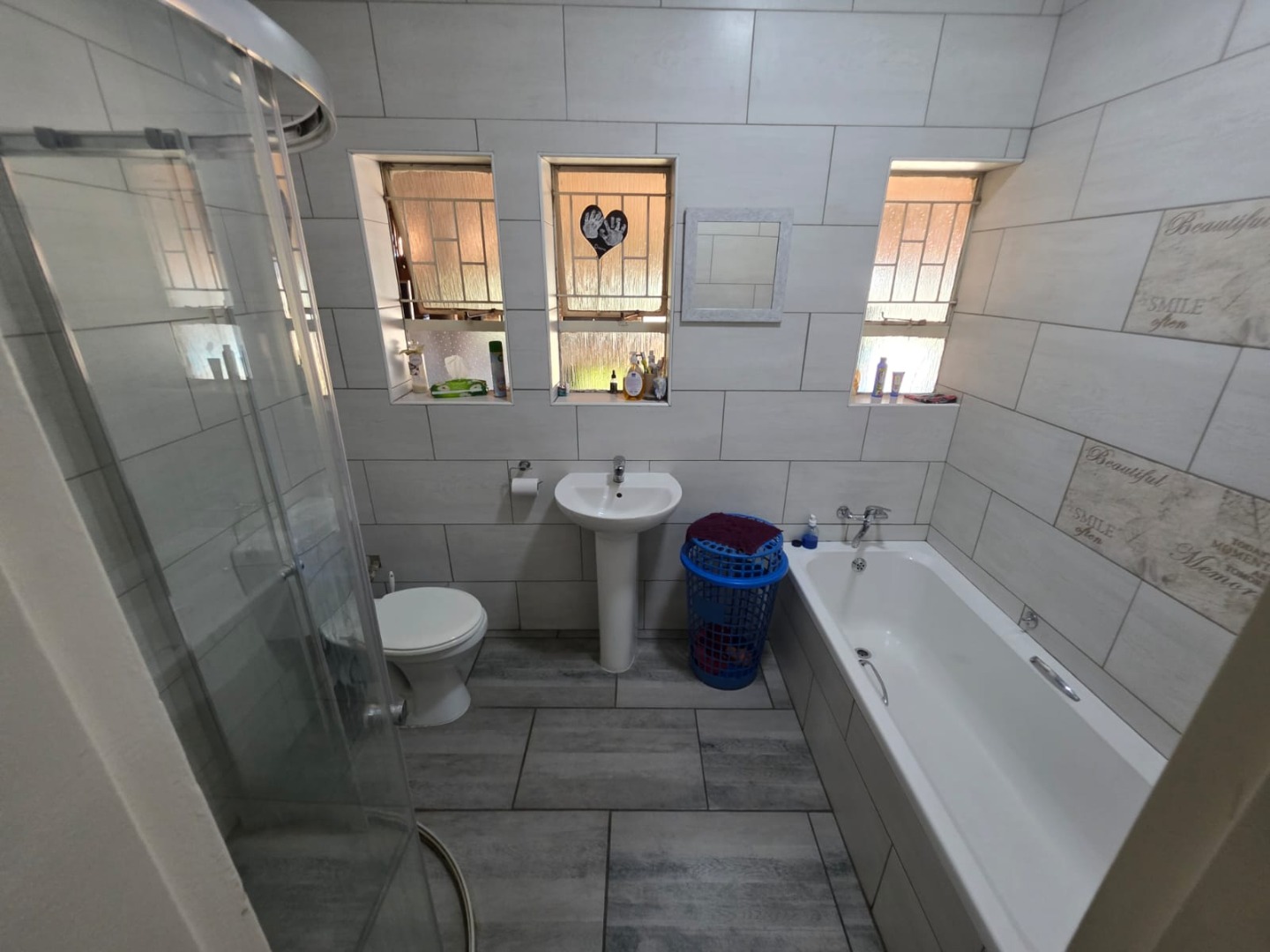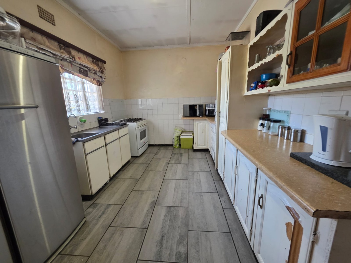 Inside, the home offers a comfortable lounge and a dedicated dining room, both featuring tiled flooring and benefiting from natural light. The kitchen, functional with modern tiled flooring presents an opportunity for renovation to update its dated cabinetry and finishes, allowing new owners to personalize the space to their taste. Accommodation includes three well-proportioned bedrooms with tiled or wood-look tiled flooring, and a single bathroom appointed. Additionally, the property includes a flatlet, offering potential for extended family living or rental income.