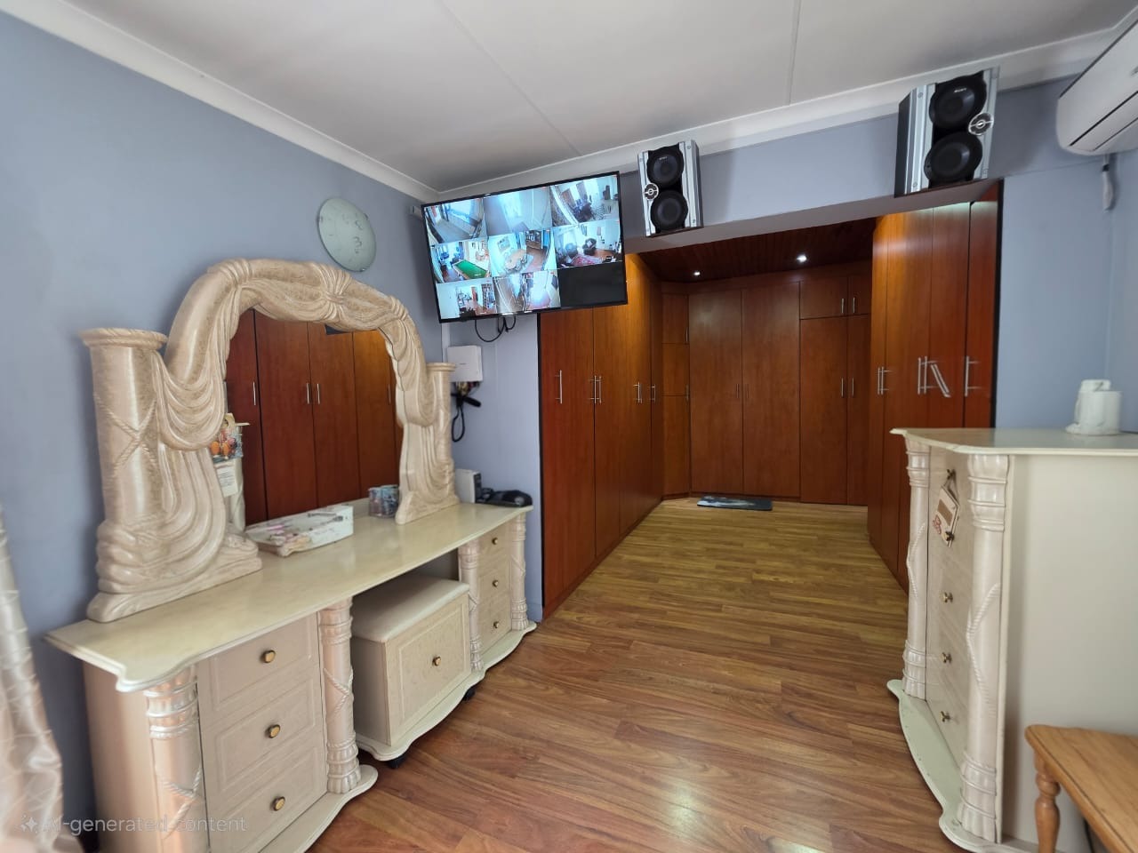 Further enhancing this home's appeal are practical features such as a dedicated laundry area and parking for up to six vehicles. The property includes a built-in braai area, ideal for outdoor entertaining. Security is a consideration, with visible security bars on windows and CCTV cameras in key areas providing peace of mind. Pets are permitted, making this a welcoming environment for the entire family.