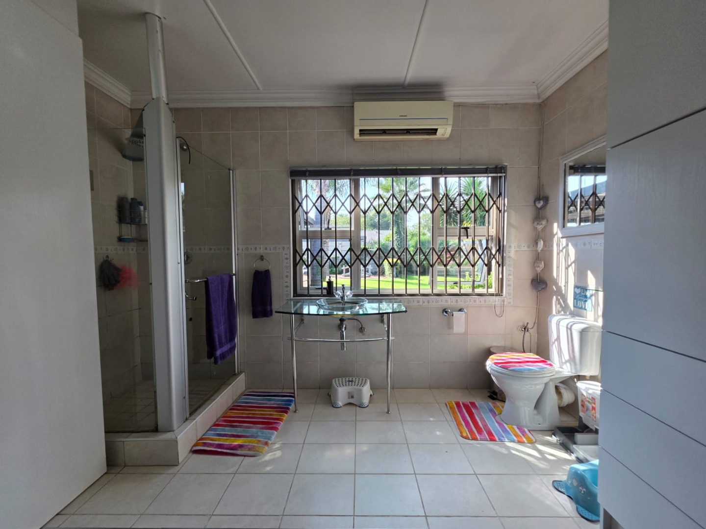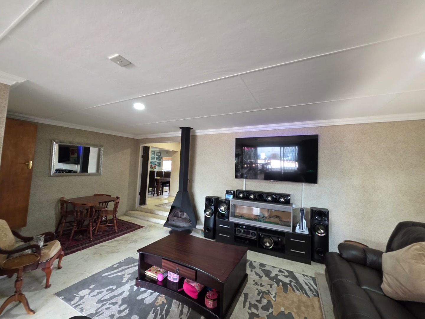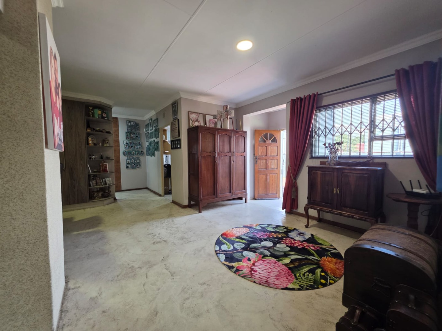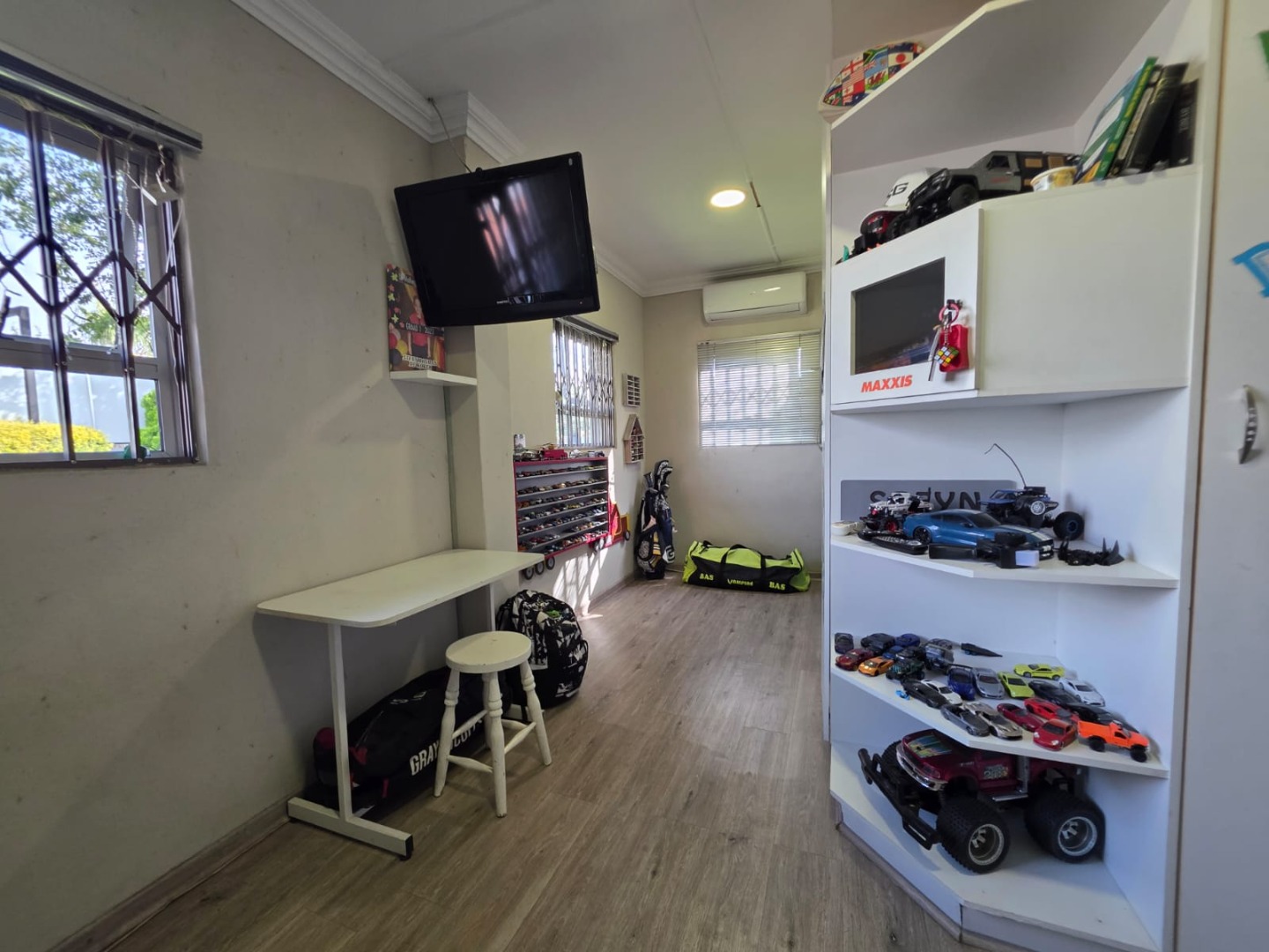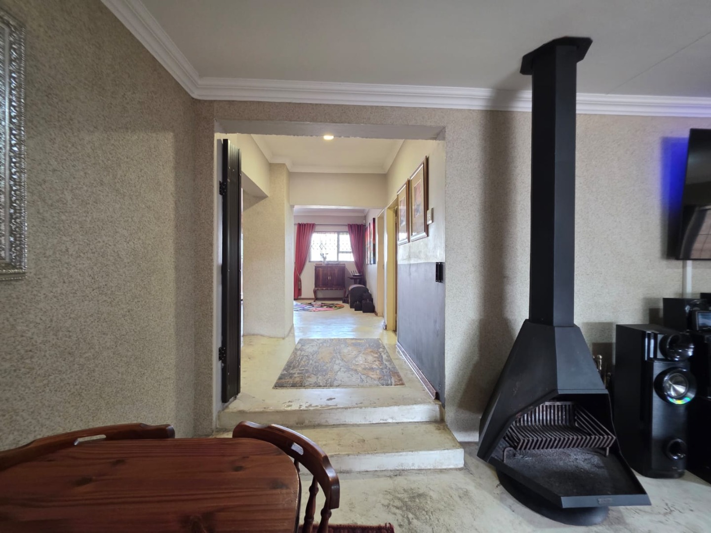 Outdoor living is well catered for with a private garden, a refreshing heated swimming pool, and a dedicated braai area, perfect for hosting gatherings. Additional amenities include a built-in braai and a fireplace, enhancing both indoor and outdoor comfort. Practical features such as a laundry room, 5 air conditioning units, and solar panels contribute to the home's functionality and efficiency. The property also benefits from three garages and two additional parking spaces, ensuring ample secure parking for residents and guests.