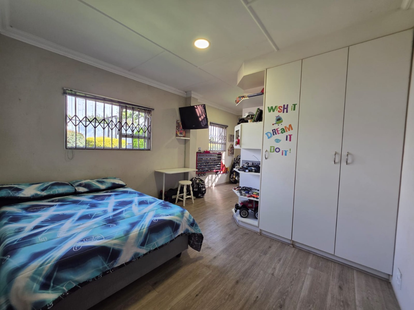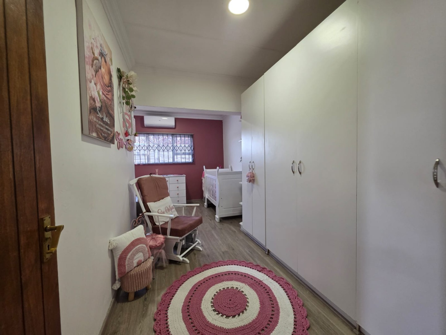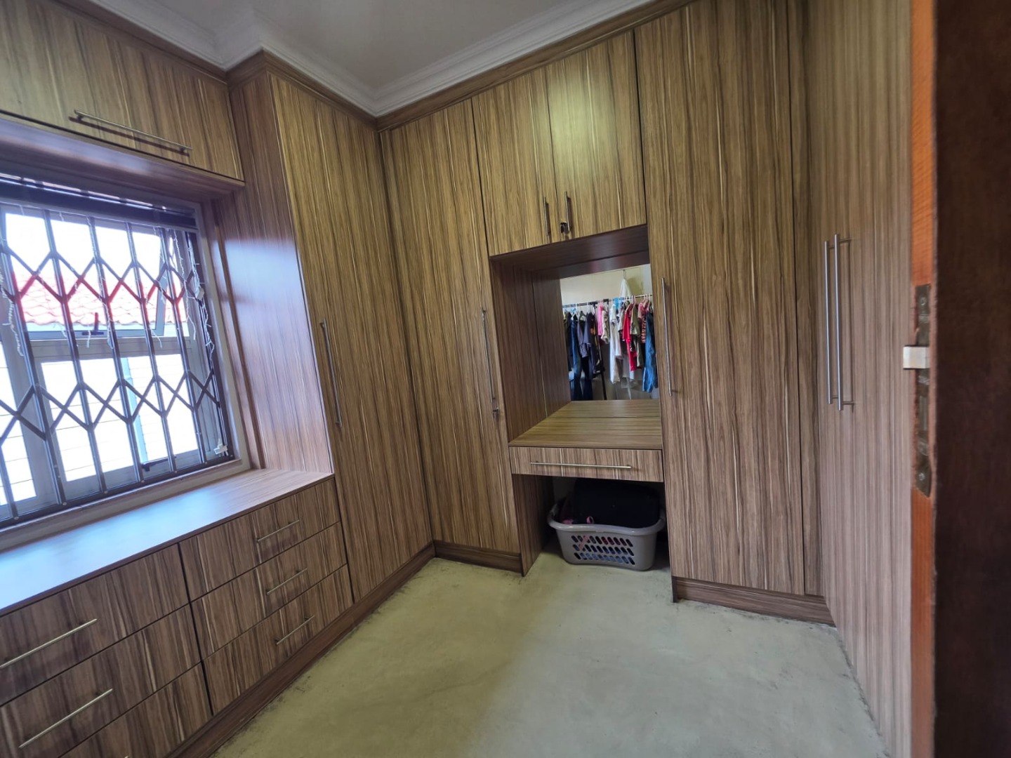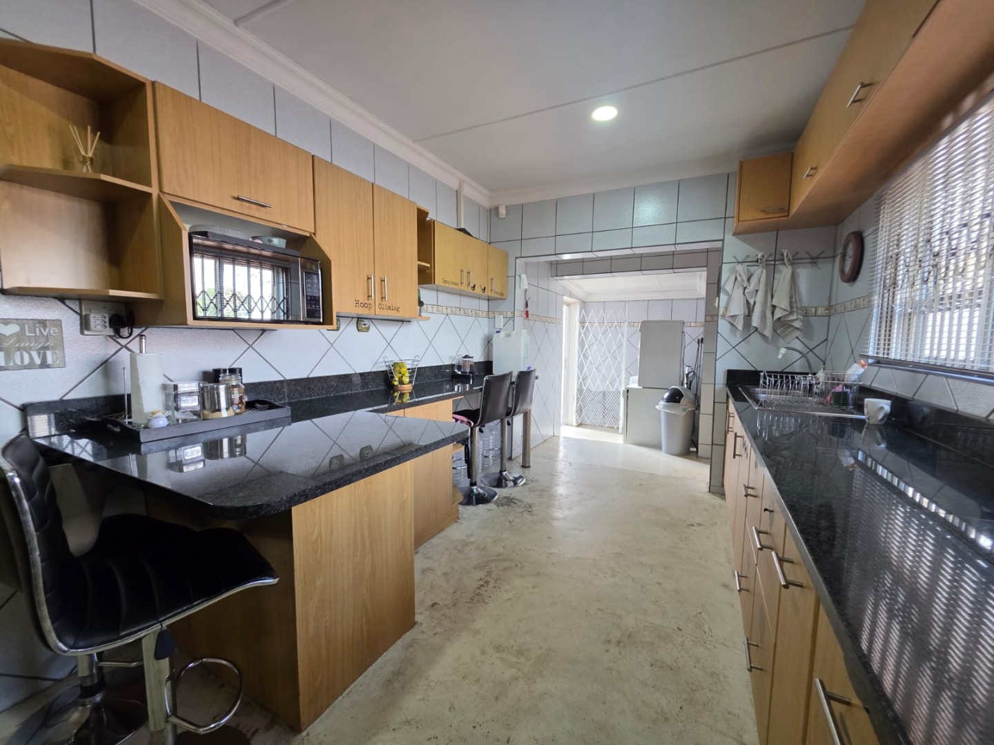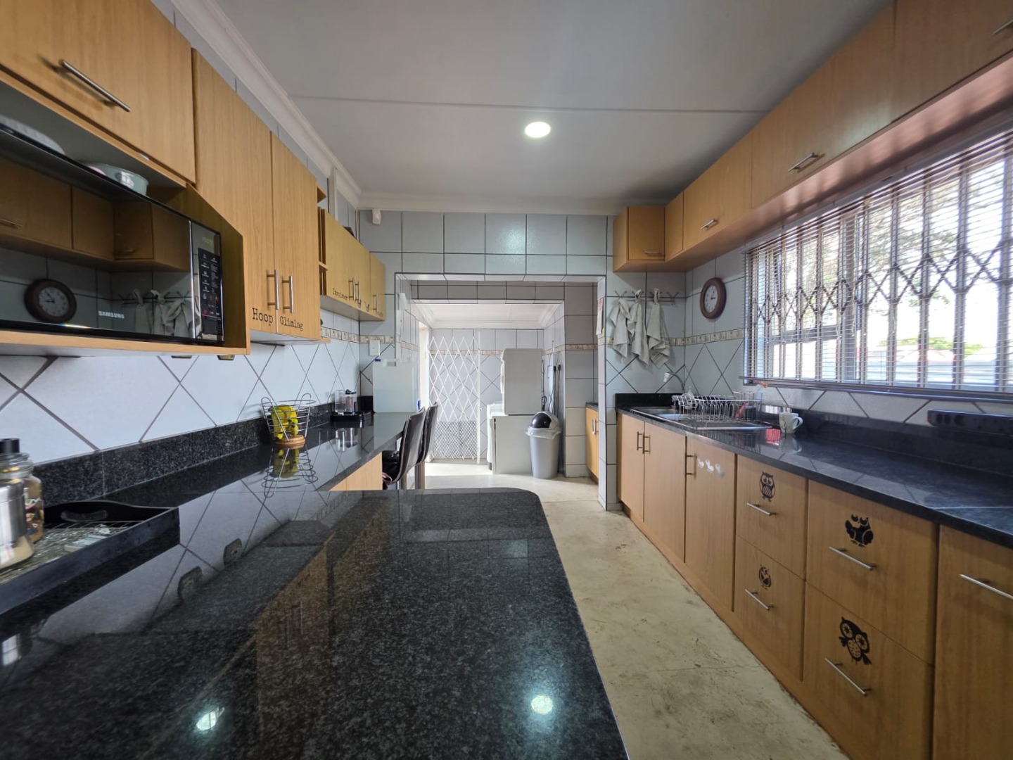 Outdoor living is well catered for with a private garden, a refreshing heated swimming pool, and a dedicated braai area, perfect for hosting gatherings. Additional amenities include a built-in braai and a fireplace, enhancing both indoor and outdoor comfort. Practical features such as a laundry room, 5 air conditioning units, and solar panels contribute to the home's functionality and efficiency. The property also benefits from three garages and two additional parking spaces, ensuring ample secure parking for residents and guests.