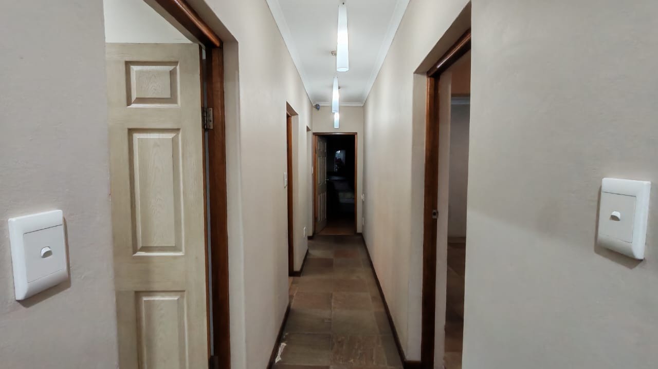 Security is enhanced with an electric gate, full alarm system and electric fencing. The home also features a robust solar system, 8.8 KW system with 16 panels.