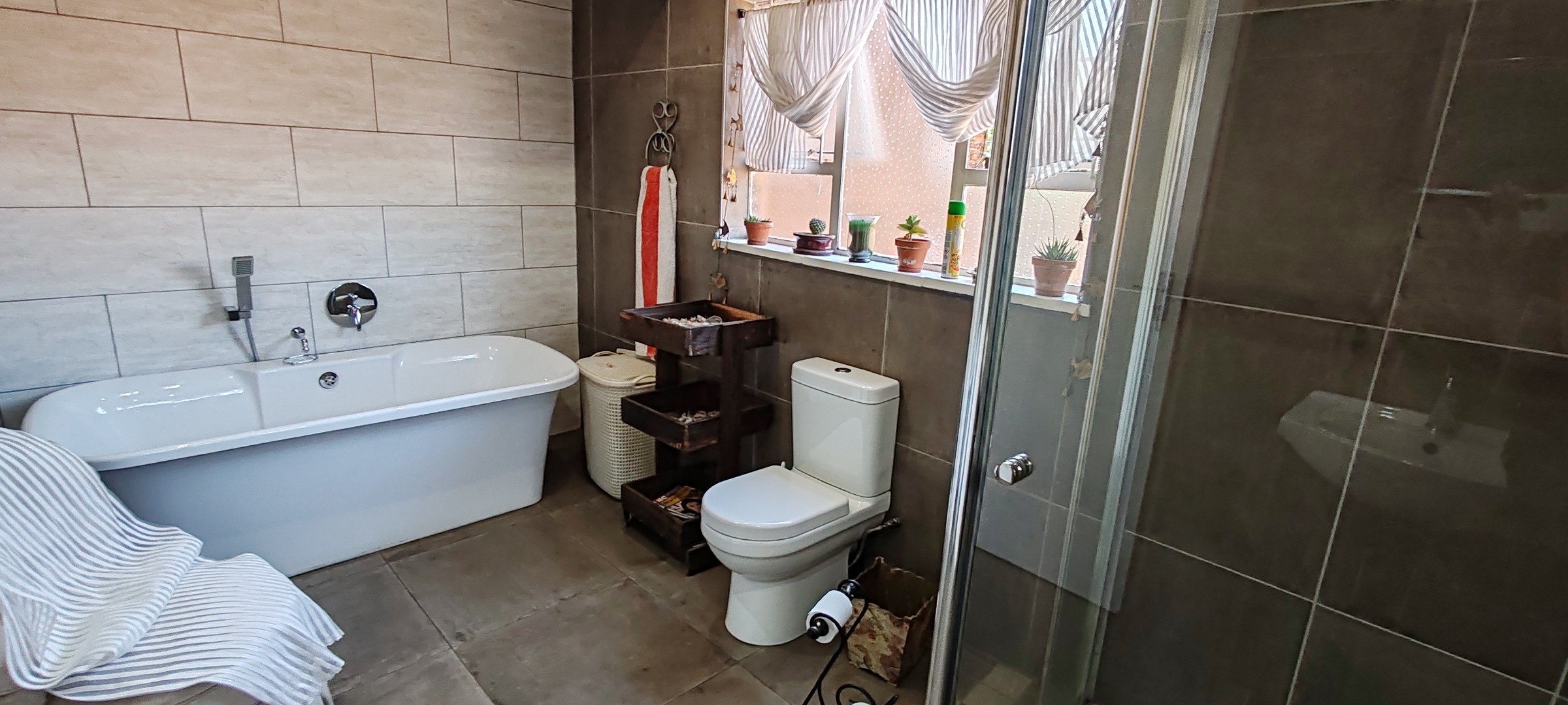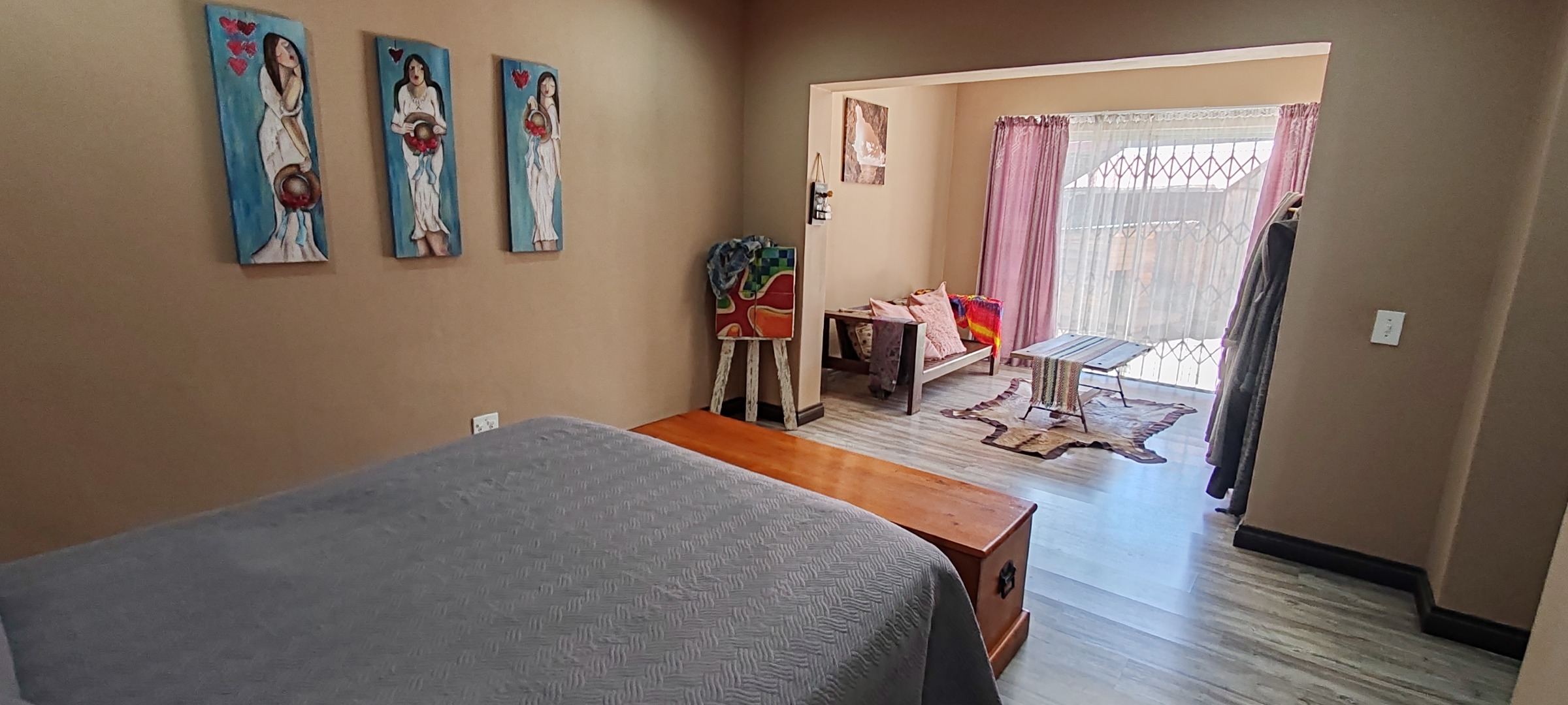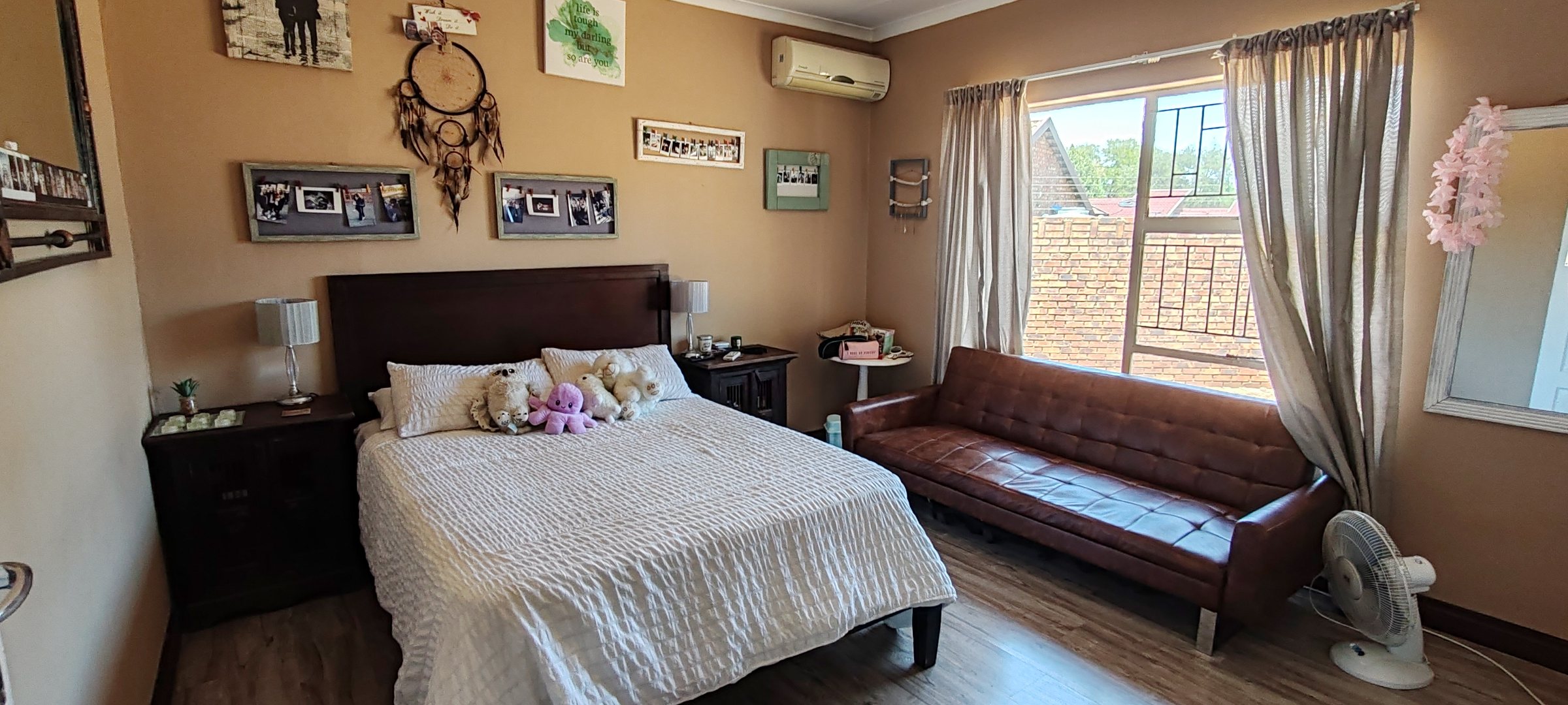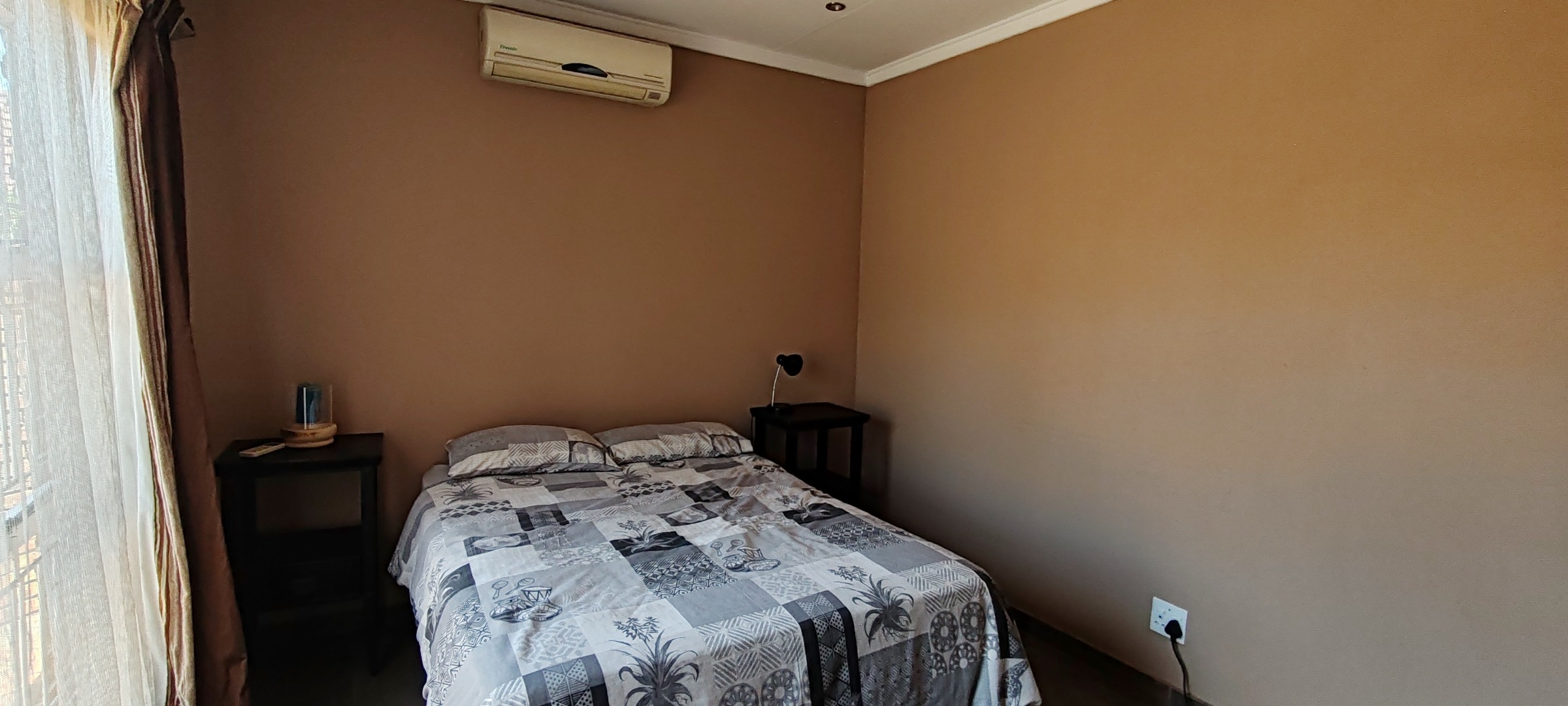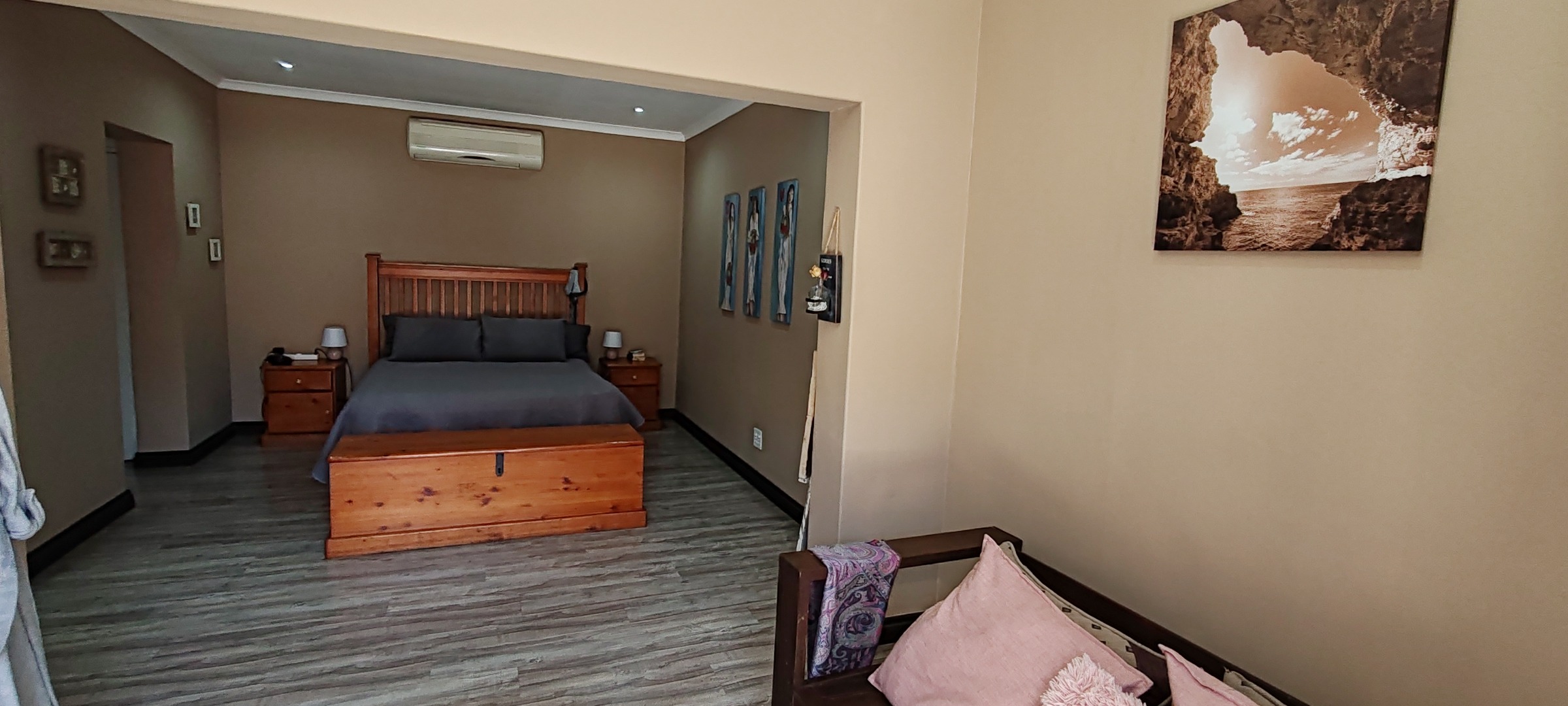 The home features a fully self-contained one-bedroom flatlet, which can seamlessly integrate with the main residence or remain a private, income-generating unit. When combined, the property offers five generously sized bedrooms, all fitted with laminate flooring and individual air-conditioning units to ensure comfort throughout the year.