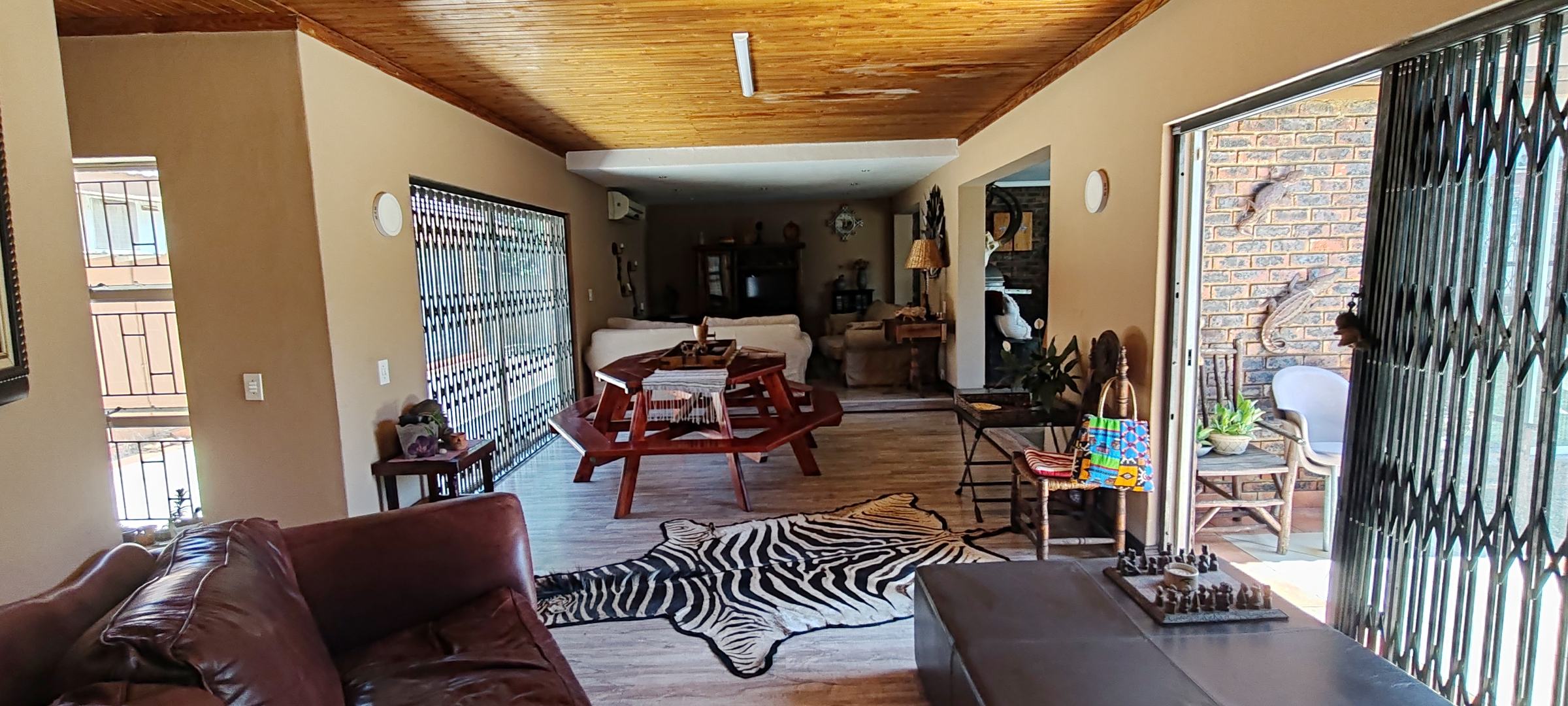 Additional features include a double garage, extra carport, and electric gate. Security is well catered for with electric fencing, security doors, and burglar bars, ensuring peace of mind.