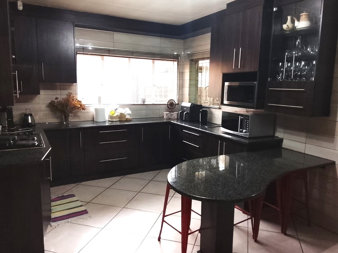 The kitchen is suitably sized and thoughtfully laid out, featuring a stove (hob), granite countertops, a breakfast nook, ample built-in cupboards, a separate scullery with additional built-in cupboards, and a pantry for extra storage. Adjacent living areas flow seamlessly, creating a welcoming atmosphere throughout the home.