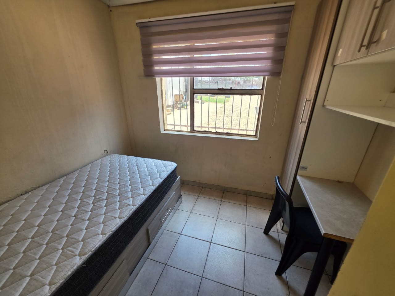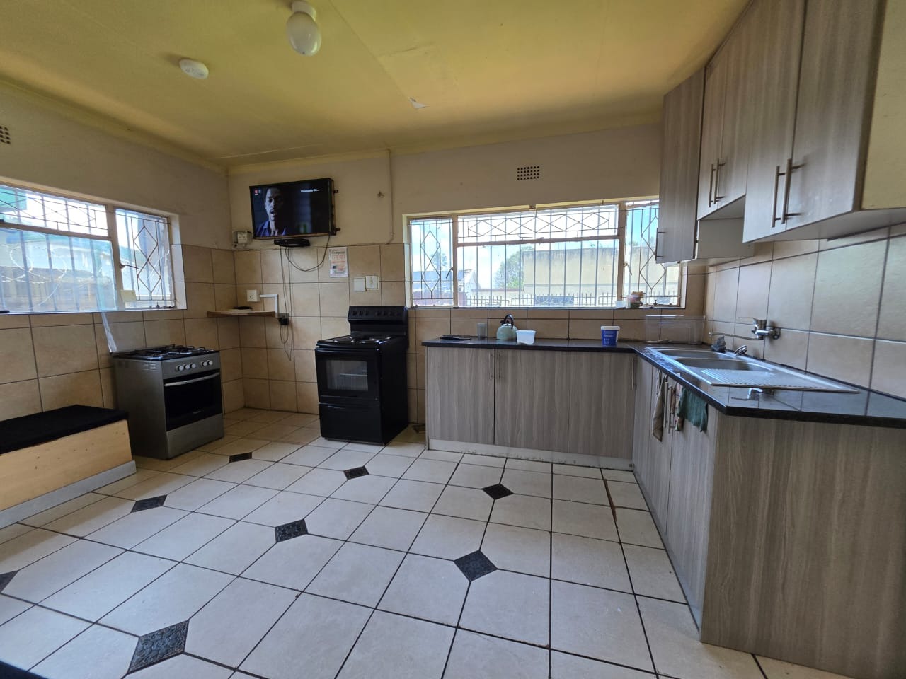 This expansive property features 15 well-appointed bedrooms and 11 bathrooms, designed to comfortably house multiple students. Each room is thoughtfully furnished, including beds with integrated storage, desks, chairs, and built-in cabinetry, ensuring a functional and private living space. Natural light floods through windows, each secured with burglar bars for peace of mind. The property boasts a large, communal kitchen, a central hub for residents. This bright space is equipped with two cooking ranges, a double sink, extensive cabinetry, and L-shaped bench seating, all set on durable tiled floors and walls for easy maintenance. A mounted TV adds to the communal appeal, while security bars on the windows enhance safety.