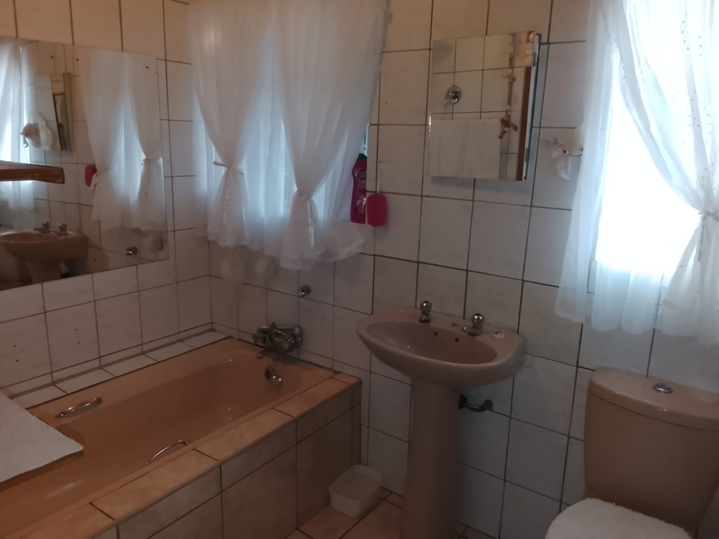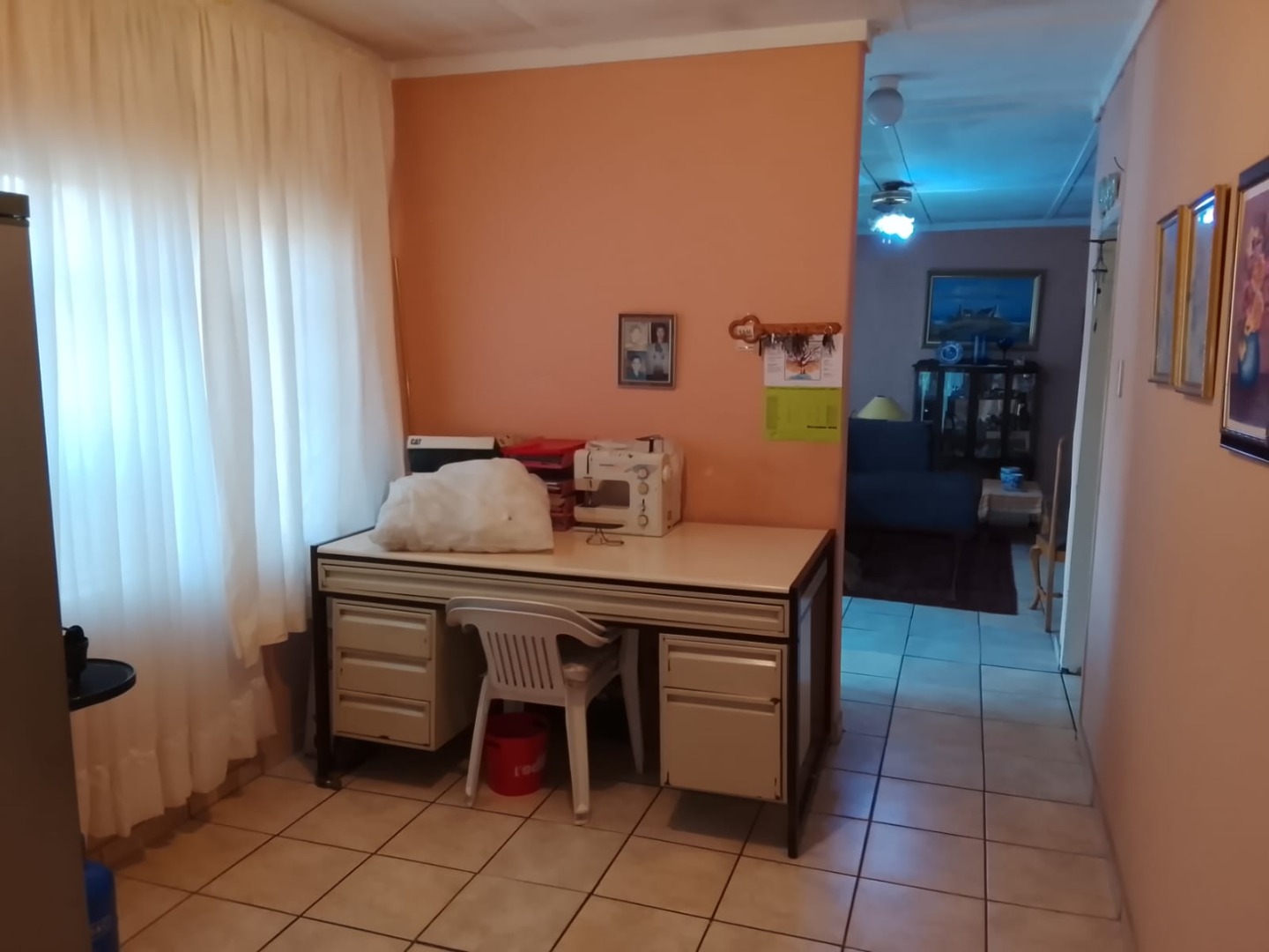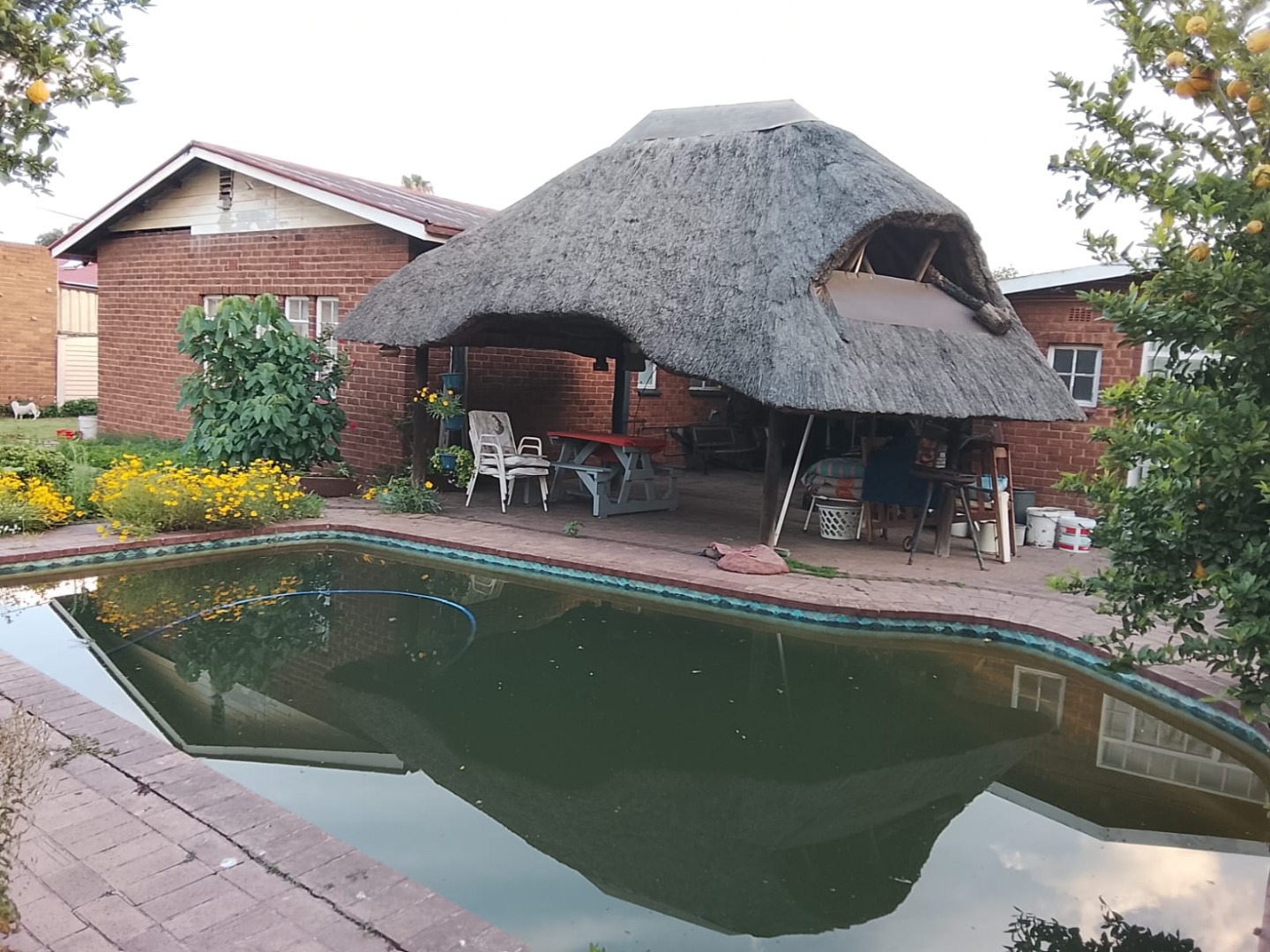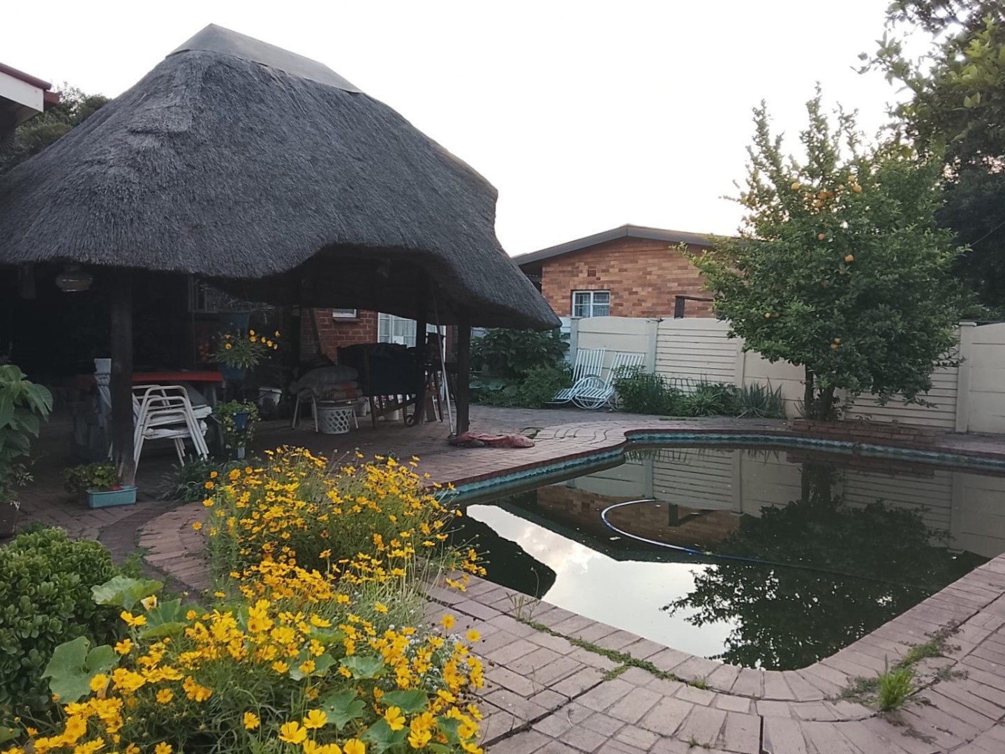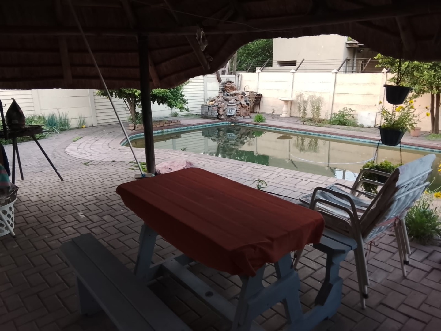 Outdoor living is a highlight, with a swimming pool and a spacious thatch-roofed lapa, perfect for entertaining or relaxing. The the patio area can also be used as an entertainment area, security features like burglar bars and a security gate, and fibre connectivity, ensuring both comfort and peace of mind.