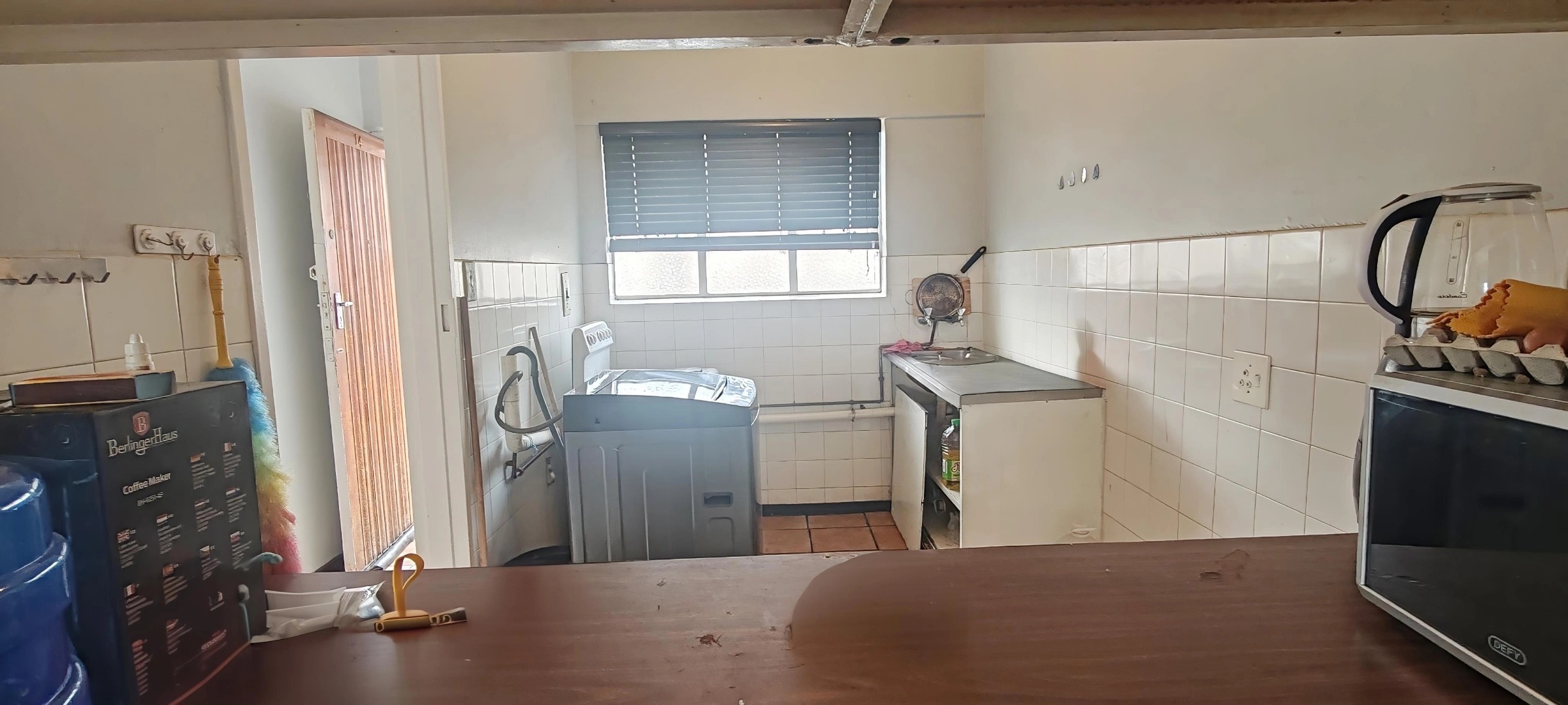 The unit offers a spacious open-plan living and dining area, perfect for comfortable everyday living. The kitchen is fitted with ample cupboard space, an electric oven, and designated washing machine space.