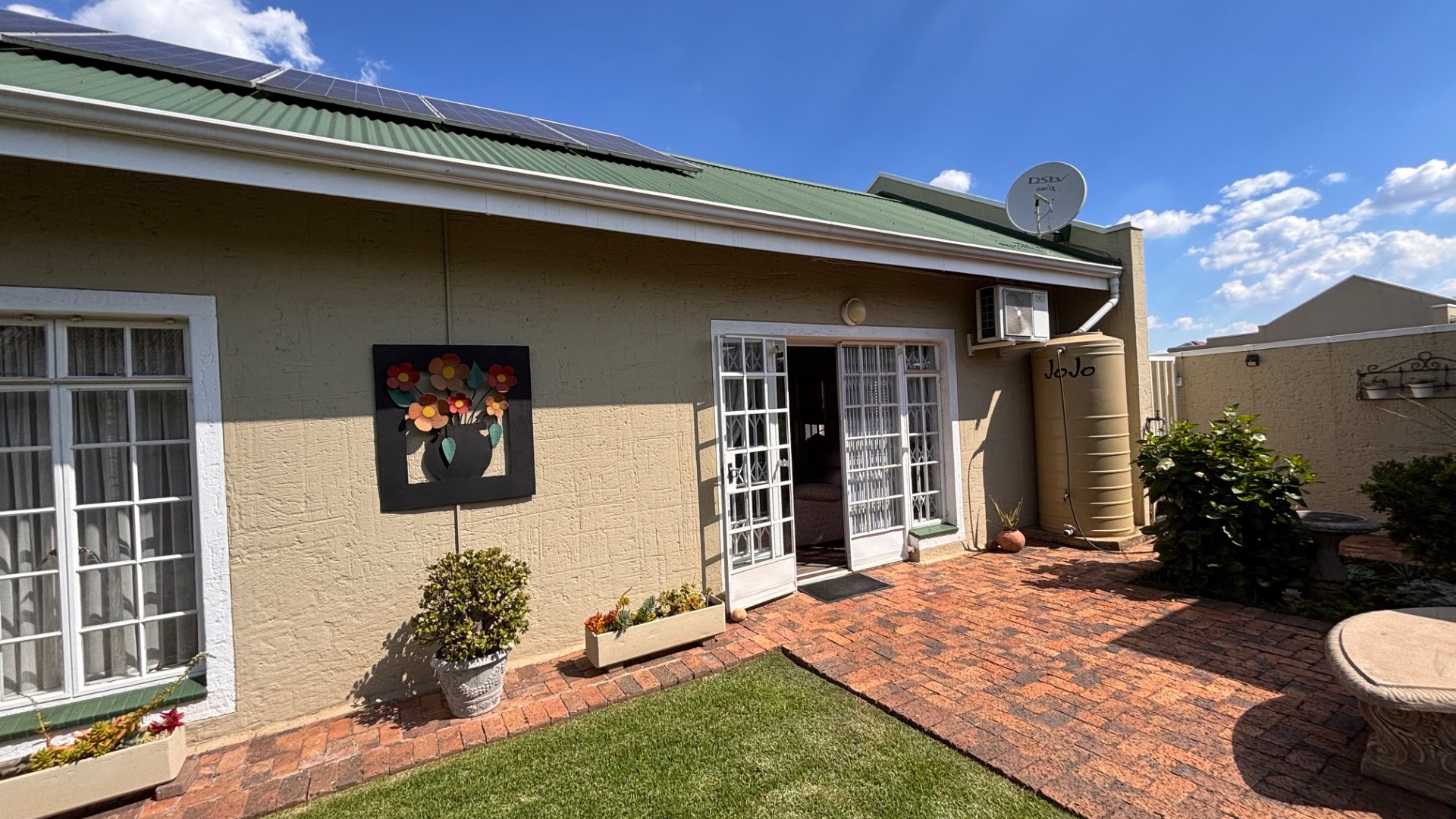 Step outside to a private garden area, complete with a patio and a built-in braai, ideal for outdoor gatherings and enjoying the South African climate. The property also includes a single garage and two additional parking spaces, ensuring convenience for residents and guests. A valuable borehole is also present, contributing to water efficiency. Pets are welcome, making this a true family home.