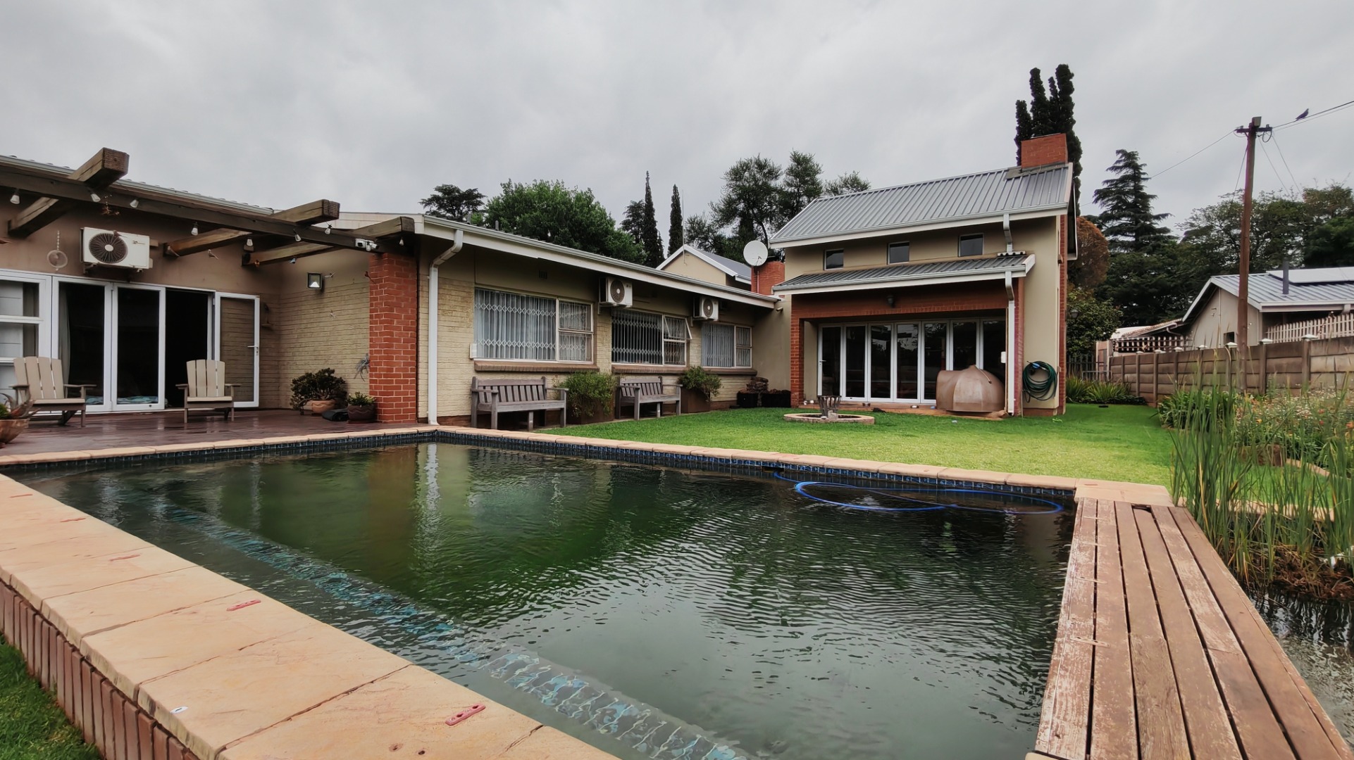 - The main bedroom has a wooden deck overlooking the gorgeous garden and swimmimg pool