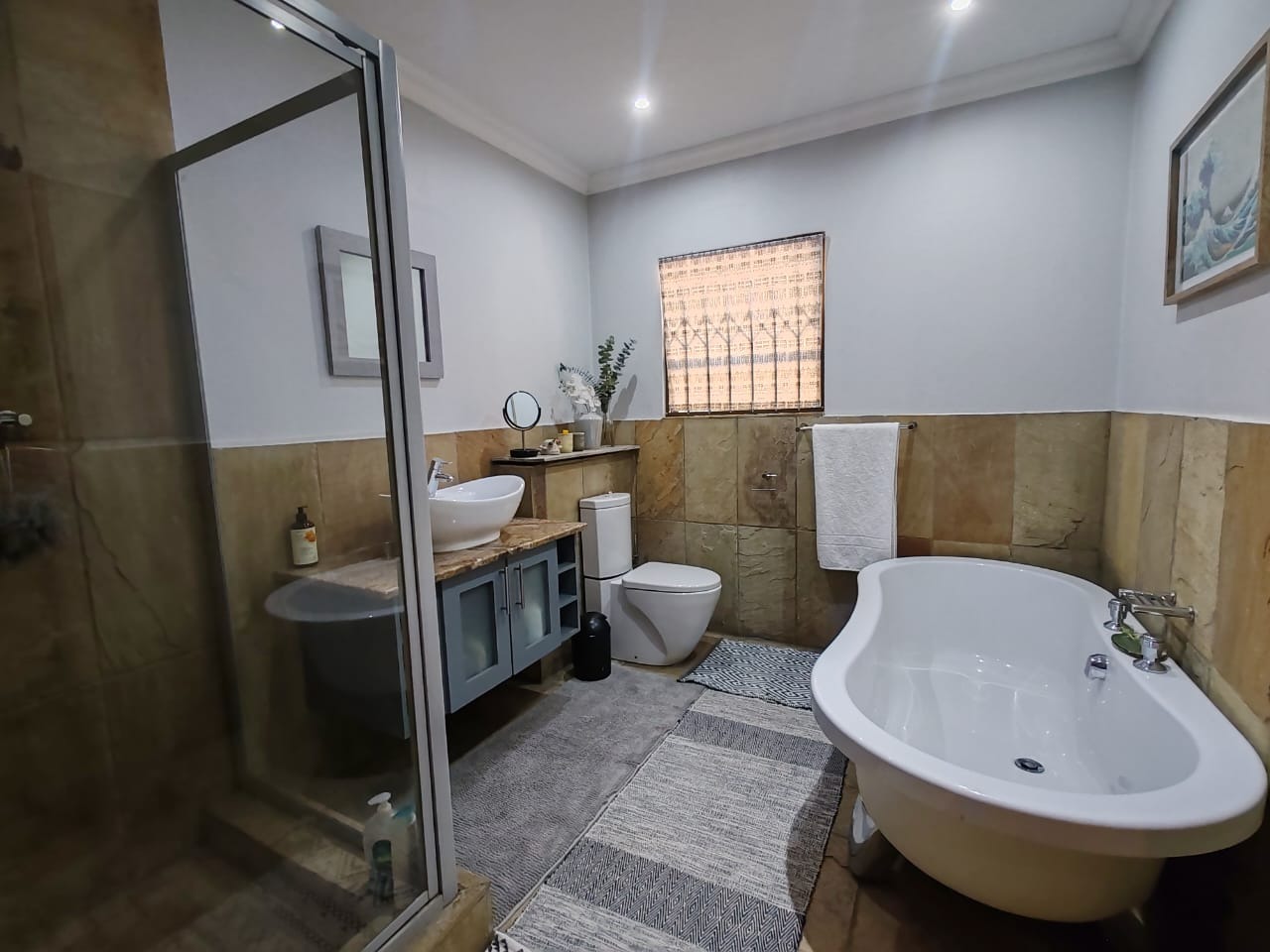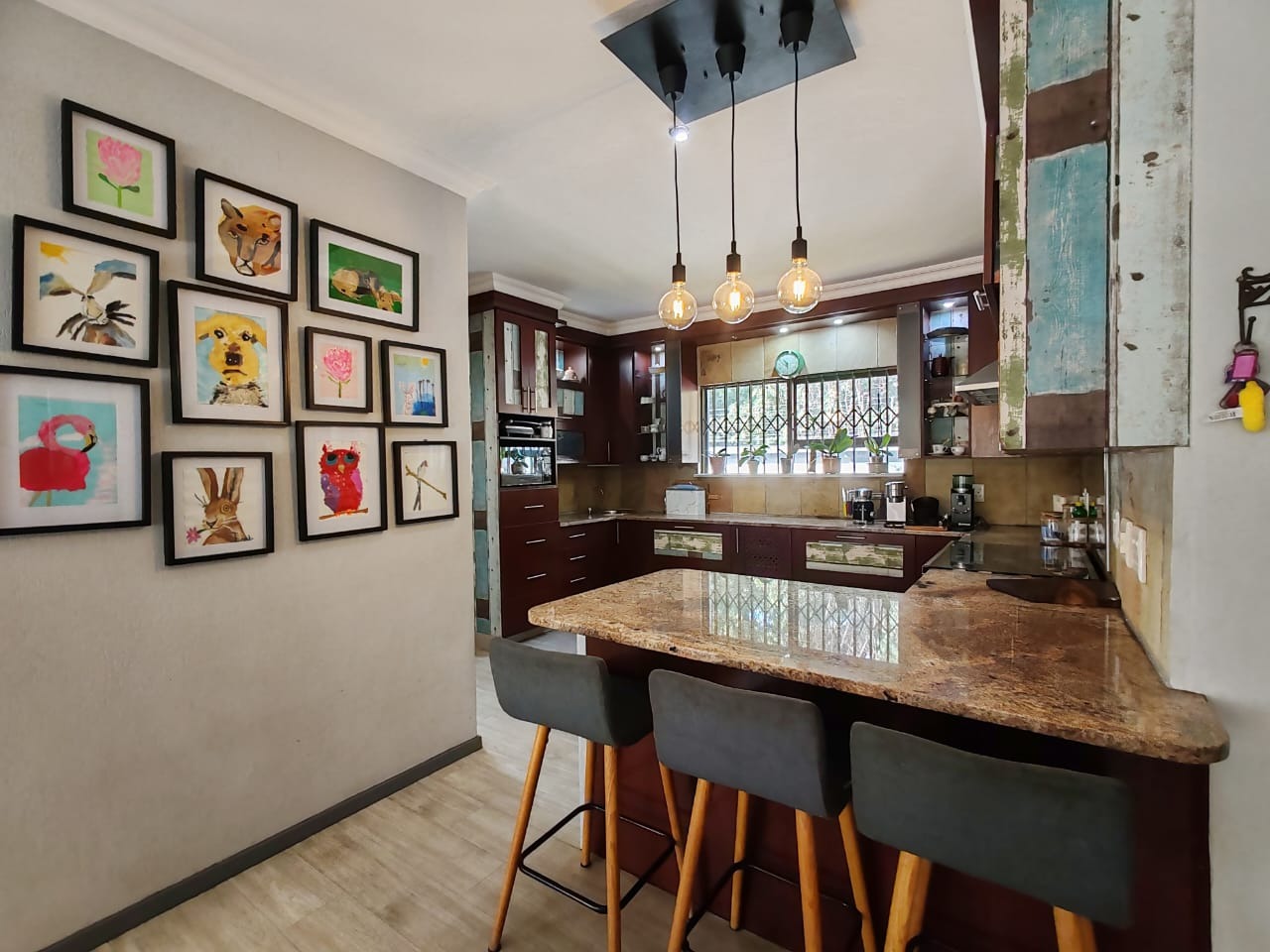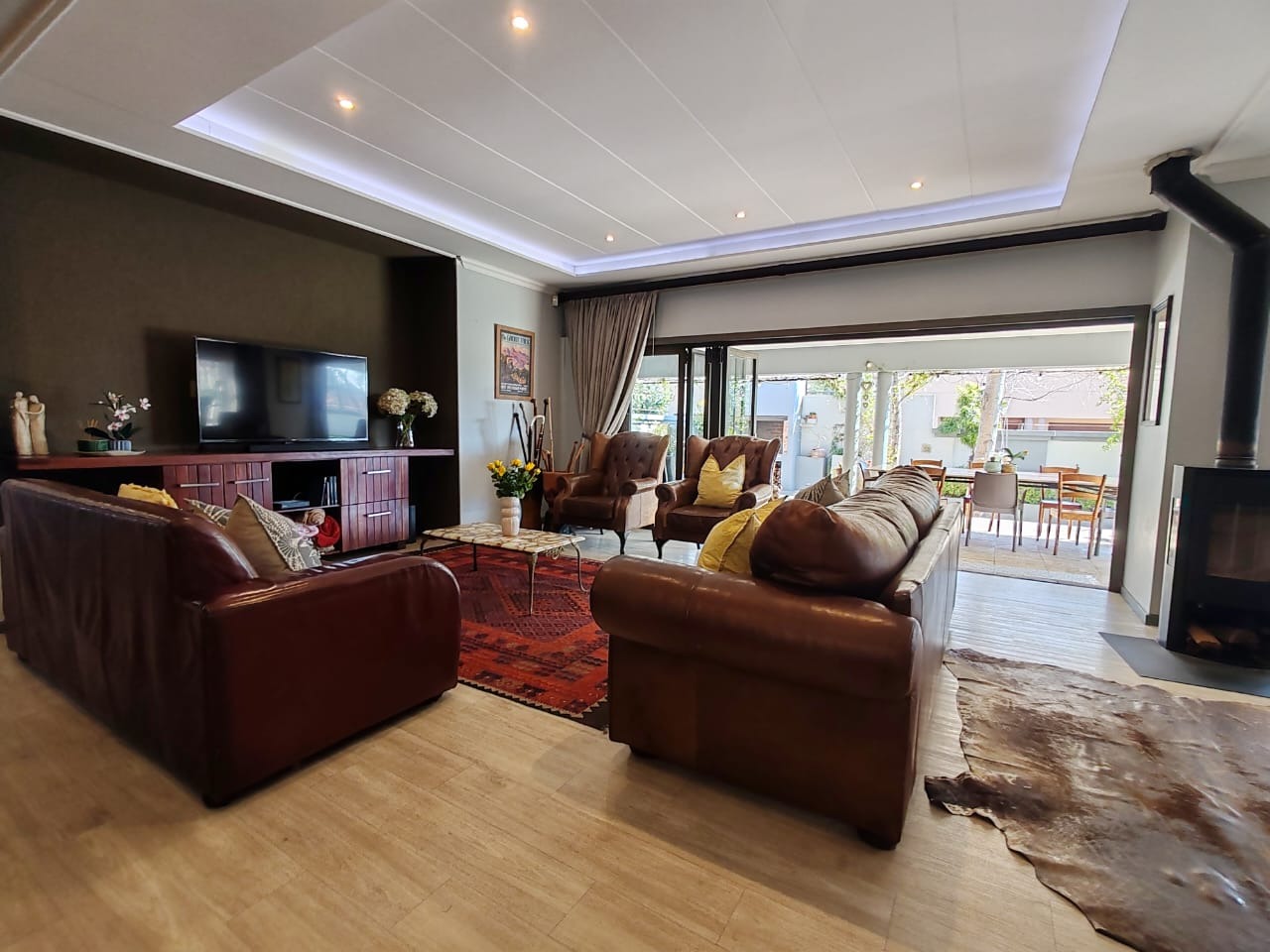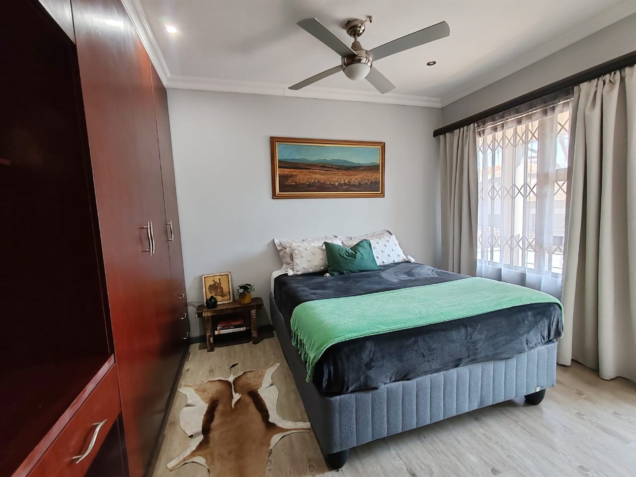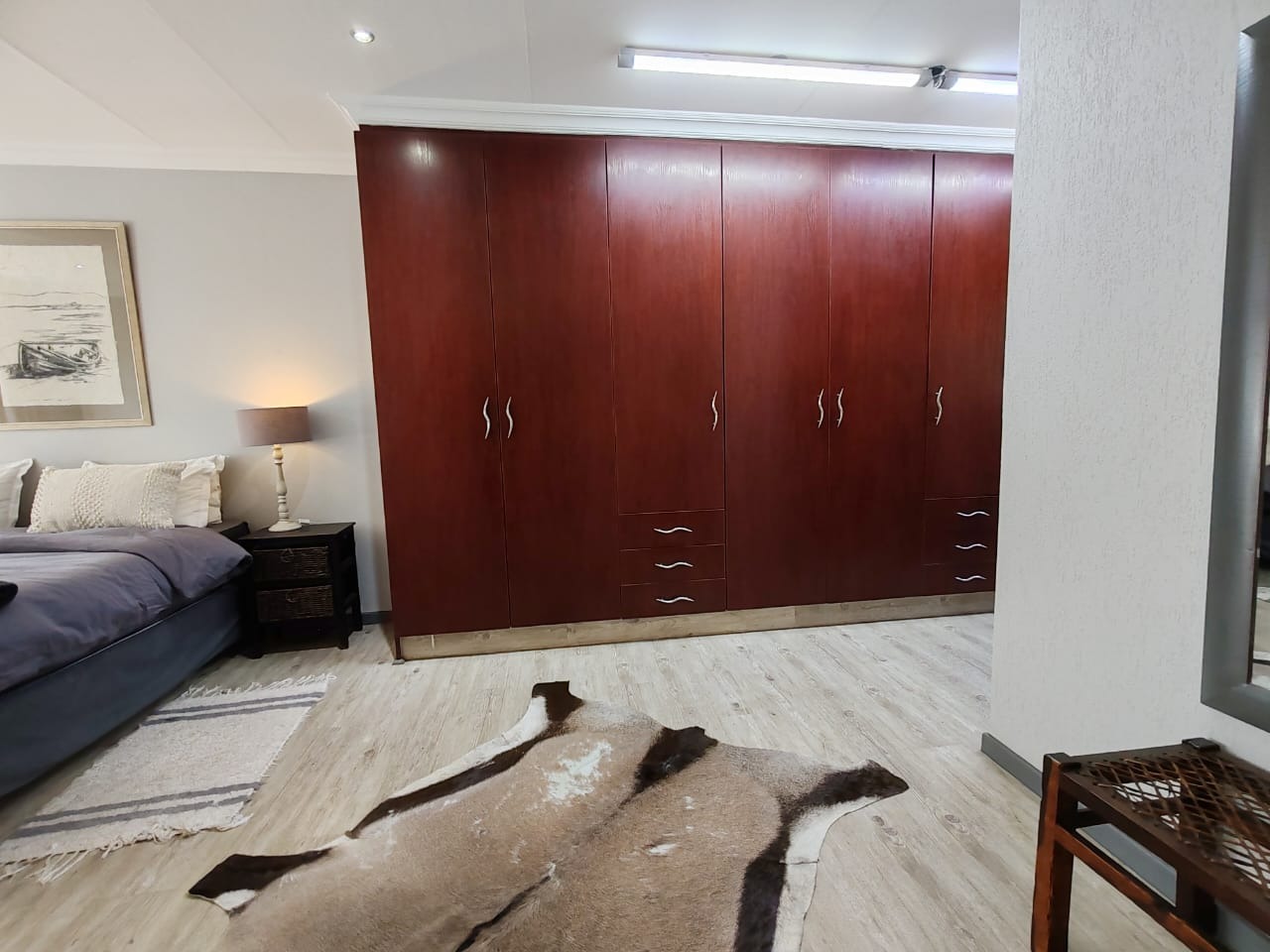 Enjoy year-round entertainment with a heated swimming pool and a spacious built-in braai area. The home is fitted with a 24-panel solar system, 8.8kVA inverter, and three 5kW batteries, ensuring energy efficiency and backup power when needed. A gas geyser offers additional energy-saving benefits.