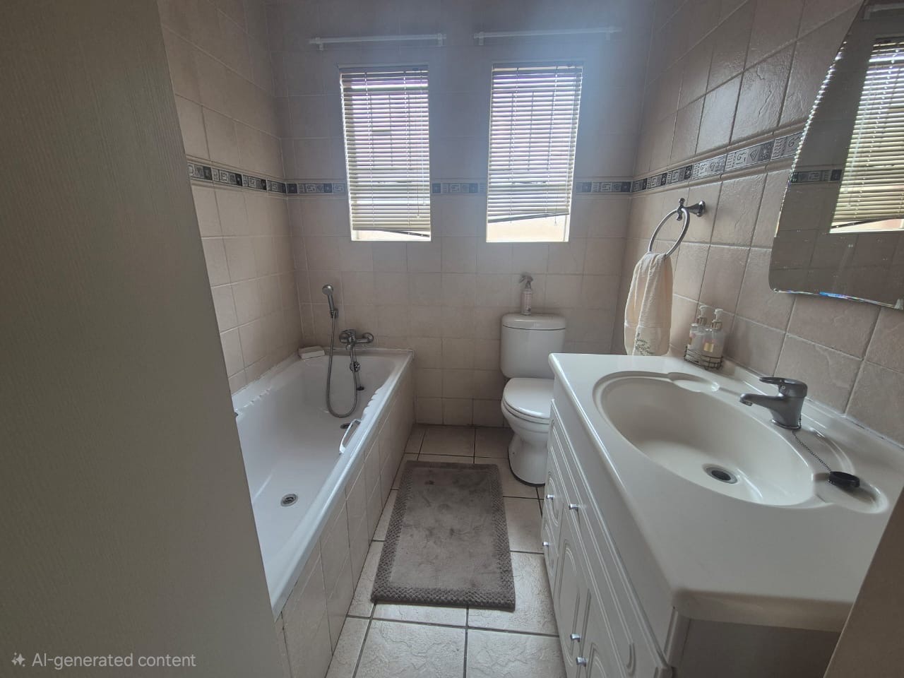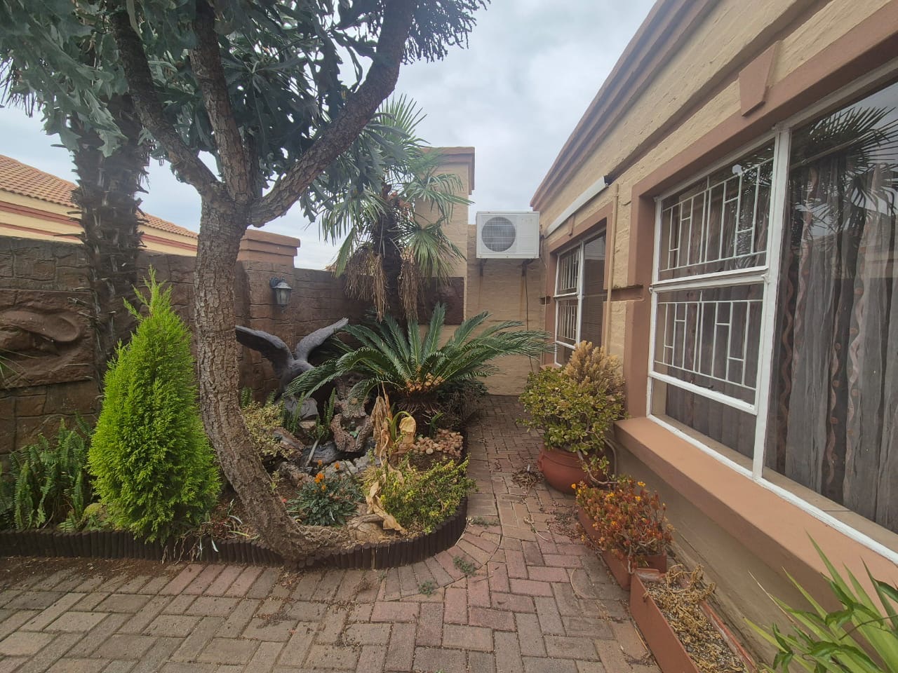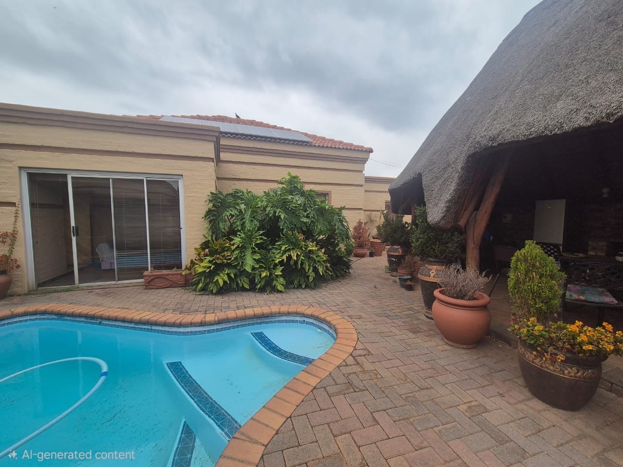 Discover this inviting 3-bedroom, 2-bathroom home situated within a secure complex in Arcon Park, Vereeniging. The property immediately presents a neat exterior with a large double garage and a paved driveway, offering ample parking and a clean frontage. Arcon Park provides a well-established residential setting within the vibrant city of Vereeniging, known for its community feel and accessibility. Step inside to an open-plan living area, designed for comfortable family life and entertaining. The lounge flows seamlessly into the kitchen, creating a cohesive space. Tiled flooring throughout ensures easy maintenance and a consistent aesthetic. The kitchen is functional, catering to daily needs. This residence features three well-proportioned bedrooms, providing private retreats for all occupants. The two bathrooms include a main bathroom with a corner bathtub, offering a space for relaxation, and an ensuite bathroom for added convenience and privacy in the master bedroom. The outdoor area is a true highlight, perfect for leisure and entertainment. A private swimming pool invites refreshing dips on warm days, complemented by a spacious thatched lapa, ideal for outdoor dining and gatherings. The paved surrounds ensure a low-maintenance outdoor lifestyle, all set within a private garden space. Security is a priority, with the property benefiting from its location within a security complex. Additional features include burglar bars on windows and a security gate, providing peace of mind for residents. This home offers a balanced lifestyle with its practical layout and appealing outdoor amenities. Key Features: * 3 Bedrooms * 2 Bathrooms (1 Ensuite) * 1 Lounge * 1 Kitchen * Double Garage * Private Swimming Pool * Thatched Lapa * Garden * Burglar Bars & Security Gate