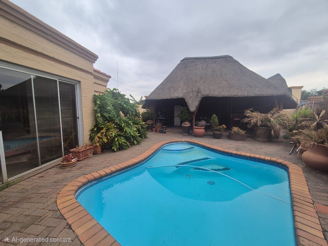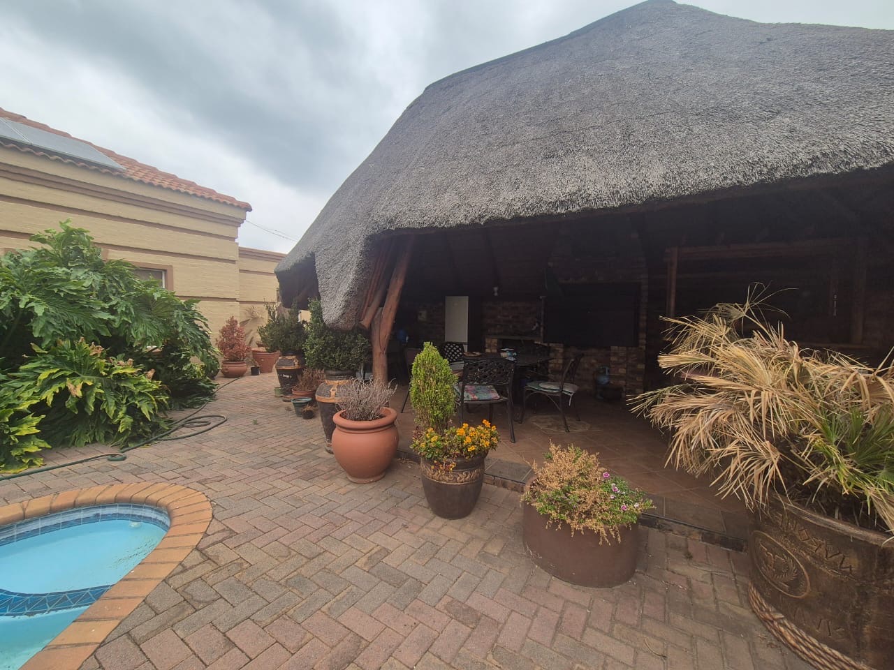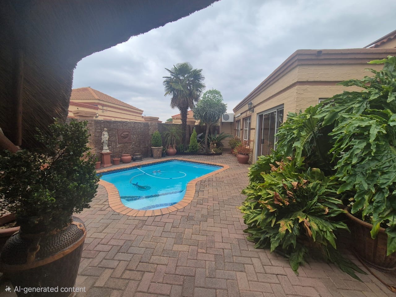 Discover this inviting 3-bedroom, 2-bathroom home situated within a secure complex in Arcon Park, Vereeniging. The property immediately presents a neat exterior with a large double garage and a paved driveway, offering ample parking and a clean frontage. Arcon Park provides a well-established residential setting within the vibrant city of Vereeniging, known for its community feel and accessibility. Step inside to an open-plan living area, designed for comfortable family life and entertaining. The lounge flows seamlessly into the kitchen, creating a cohesive space. Tiled flooring throughout ensures easy maintenance and a consistent aesthetic. The kitchen is functional, catering to daily needs. This residence features three well-proportioned bedrooms, providing private retreats for all occupants. The two bathrooms include a main bathroom with a corner bathtub, offering a space for relaxation, and an ensuite bathroom for added convenience and privacy in the master bedroom. The outdoor area is a true highlight, perfect for leisure and entertainment. A private swimming pool invites refreshing dips on warm days, complemented by a spacious thatched lapa, ideal for outdoor dining and gatherings. The paved surrounds ensure a low-maintenance outdoor lifestyle, all set within a private garden space. Security is a priority, with the property benefiting from its location within a security complex. Additional features include burglar bars on windows and a security gate, providing peace of mind for residents. This home offers a balanced lifestyle with its practical layout and appealing outdoor amenities. Key Features: * 3 Bedrooms * 2 Bathrooms (1 Ensuite) * 1 Lounge * 1 Kitchen * Double Garage * Private Swimming Pool * Thatched Lapa * Garden * Burglar Bars & Security Gate