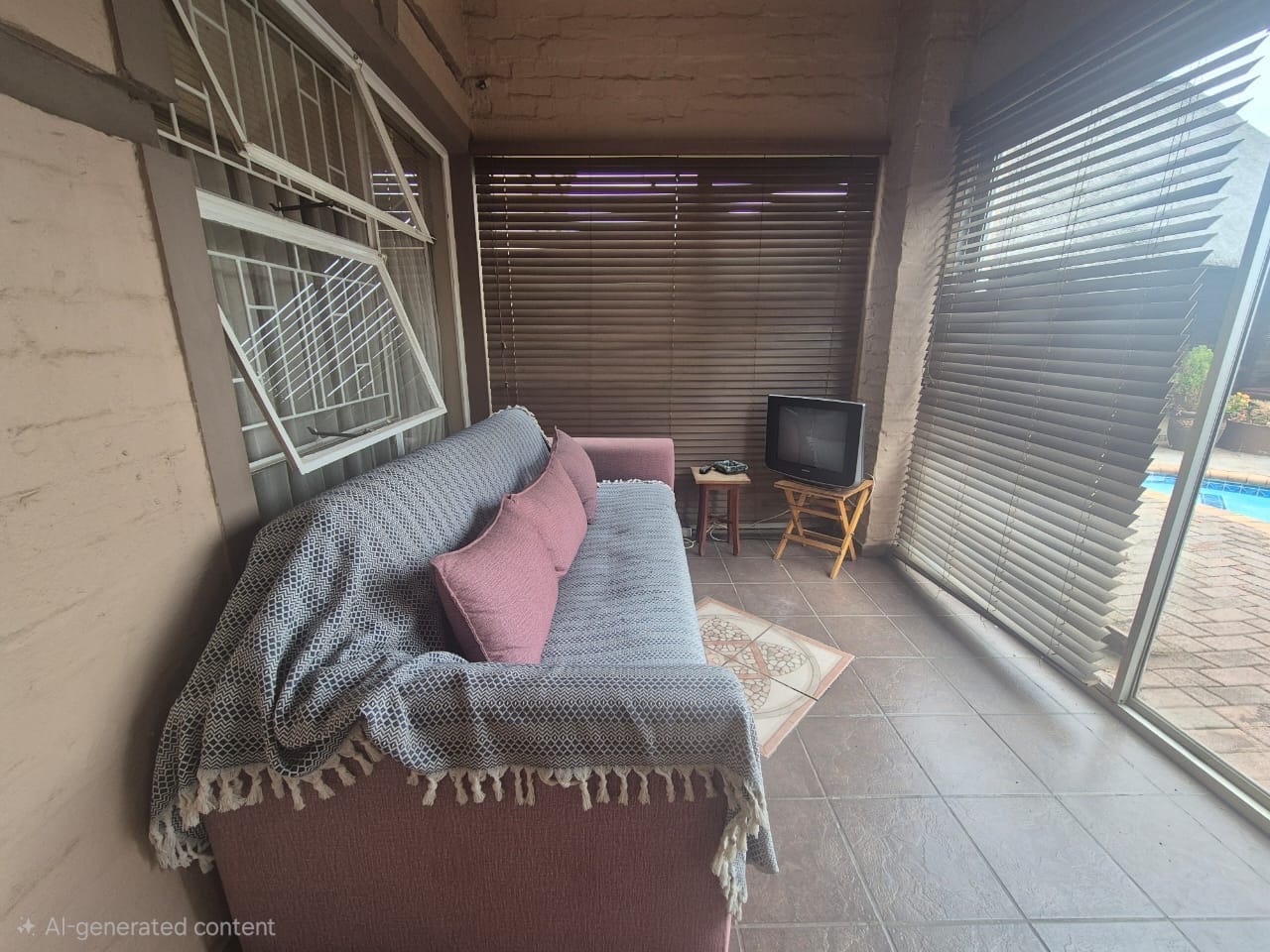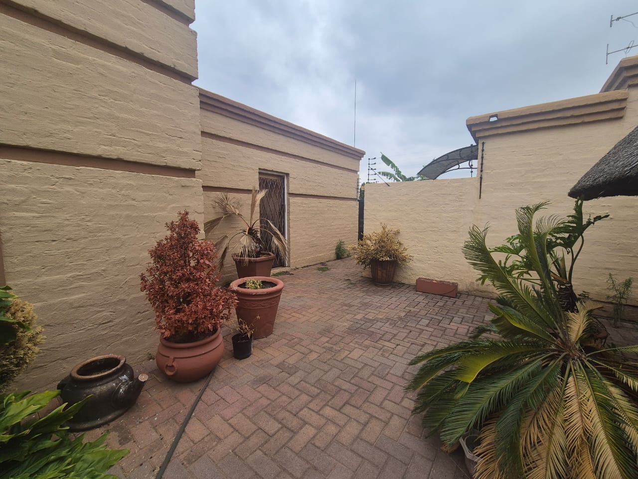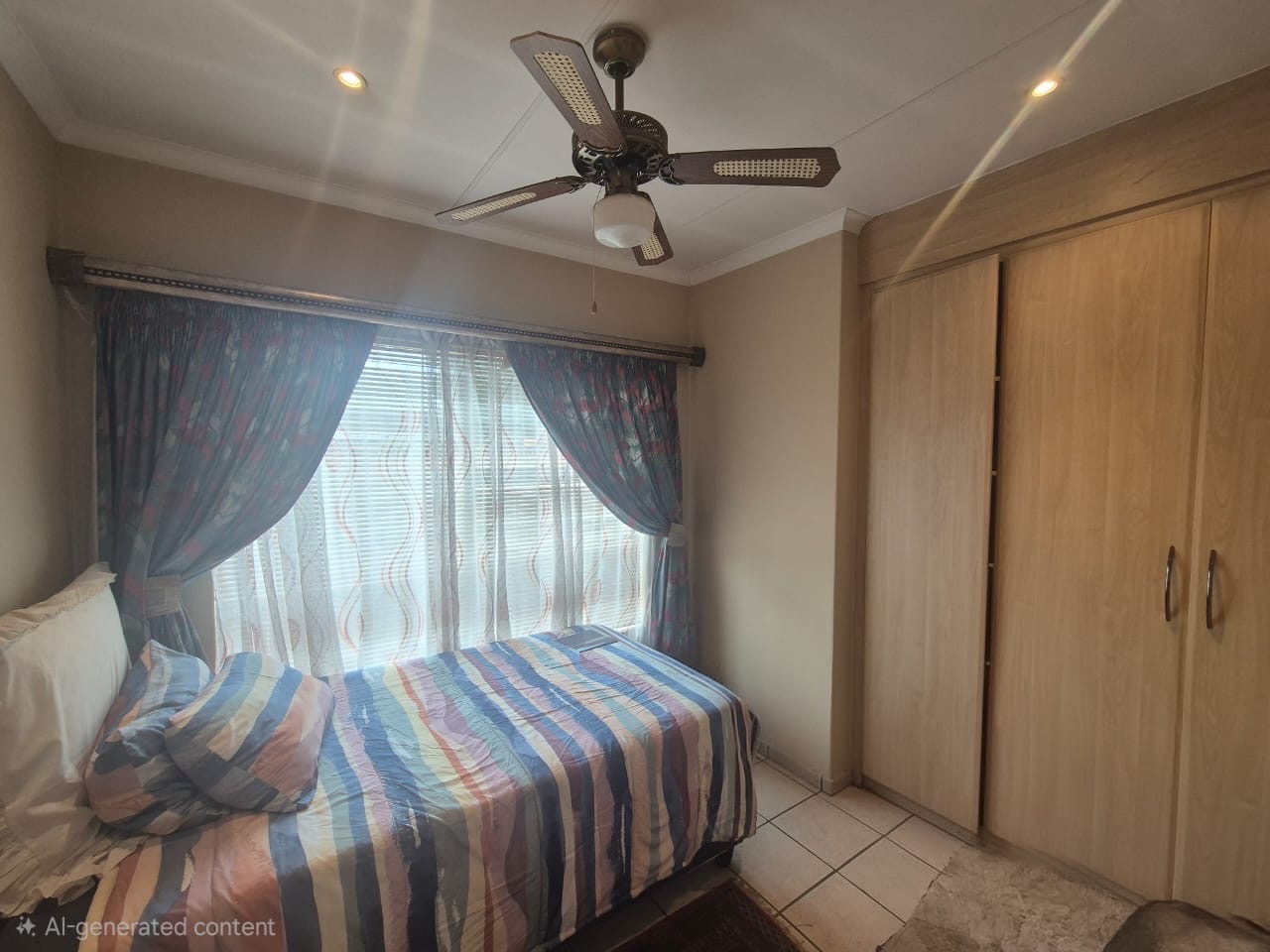 Discover this inviting 3-bedroom, 2-bathroom home situated within a secure complex in Arcon Park, Vereeniging. The property immediately presents a neat exterior with a large double garage and a paved driveway, offering ample parking and a clean frontage. Arcon Park provides a well-established residential setting within the vibrant city of Vereeniging, known for its community feel and accessibility. Step inside to an open-plan living area, designed for comfortable family life and entertaining. The lounge flows seamlessly into the kitchen, creating a cohesive space. Tiled flooring throughout ensures easy maintenance and a consistent aesthetic. The kitchen is functional, catering to daily needs. This residence features three well-proportioned bedrooms, providing private retreats for all occupants. The two bathrooms include a main bathroom with a corner bathtub, offering a space for relaxation, and an ensuite bathroom for added convenience and privacy in the master bedroom. The outdoor area is a true highlight, perfect for leisure and entertainment. A private swimming pool invites refreshing dips on warm days, complemented by a spacious thatched lapa, ideal for outdoor dining and gatherings. The paved surrounds ensure a low-maintenance outdoor lifestyle, all set within a private garden space. Security is a priority, with the property benefiting from its location within a security complex. Additional features include burglar bars on windows and a security gate, providing peace of mind for residents. This home offers a balanced lifestyle with its practical layout and appealing outdoor amenities. Key Features: * 3 Bedrooms * 2 Bathrooms (1 Ensuite) * 1 Lounge * 1 Kitchen * Double Garage * Private Swimming Pool * Thatched Lapa * Garden * Burglar Bars & Security Gate