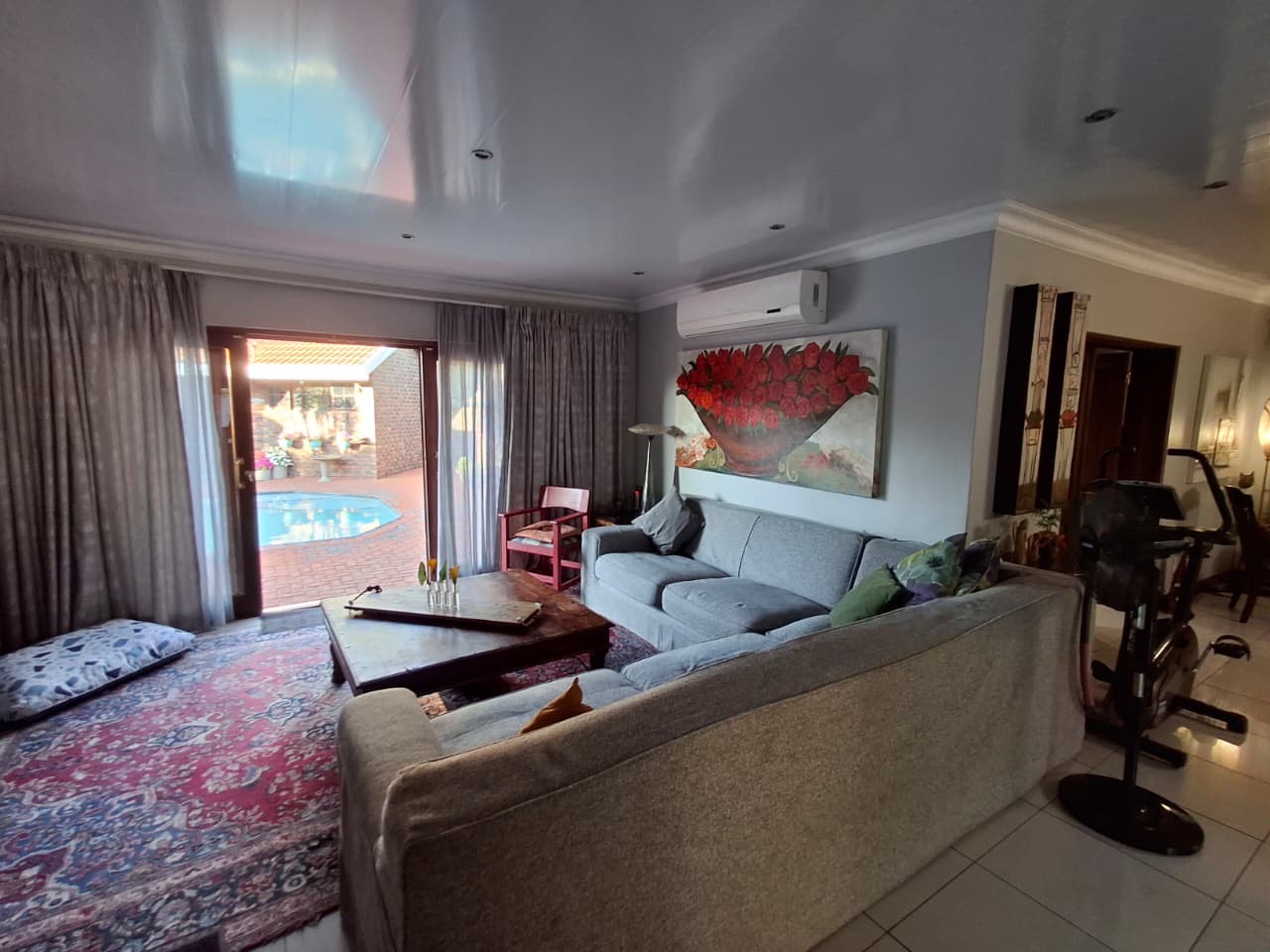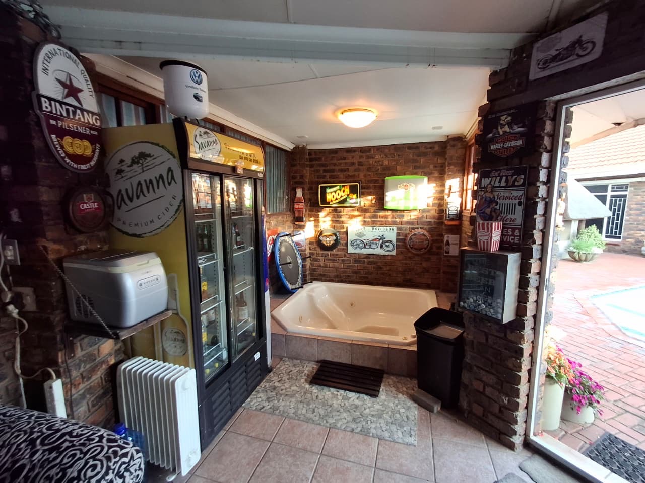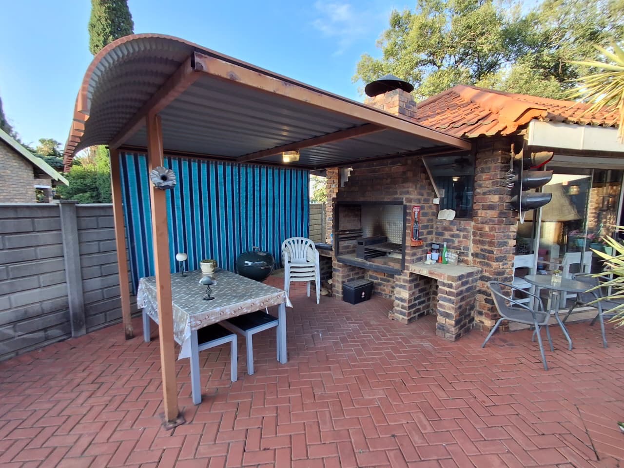 Nestled in the established suburb of Falcon Ridge, Vereeniging, this charming brick residence offers comfortable living and excellent entertainment possibilities. The property presents a welcoming facade with a paved driveway leading to a covered carport, complemented by security features. Falcon Ridge is a well-regarded residential area, known for its community feel and convenient access to local amenities. Step inside to discover a well-appointed interior featuring a spacious lounge and a dedicated dining room, both equipped with air conditioning. The functional kitchen provides essential amenities. A dedicated home office, complete with built-in dark wooden cabinetry and two distinct desk areas, offers an ideal environment for remote work or study. The home comprises three comfortable bedrooms and two bathrooms, including one en-suite, providing convenience and privacy. Bathrooms feature a mix of styles, from a modern glass-enclosed shower to a functional enclosed shower. Outdoor living is a highlight, centered around a large, inviting swimming pool surrounded by extensive red brick paving. A charming thatched lapa with seating provides an ideal spot for outdoor entertaining. Further enhancing the entertainment is an enclosed, brick-walled area featuring a built-in jacuzzi and a large beverage fridge. The property also boasts a separate brick structure, offering potential as a guesthouse or utility space, alongside a Wendy house for extra storage. Security is well-addressed with an alarm system, CCTV, security gates, and burglar bars. Parking is abundant with two garages and additional space for five vehicles. Practical amenities include a laundry area and outside toilets, adding to the home's functionality. Key Features: * 3 Bedrooms, 2 Bathrooms (1 En-suite) * Spacious Lounge & Dining Room with Air Conditioning * Dedicated Home Office/Study * Large Swimming Pool & Thatched Lapa * Enclosed Entertainment Area with Jacuzzi * 2 Garages & Ample Parking for 5 Vehicles * Separate Brick Structure (Potential Flatlet) & Wendy House * Enhanced Security: Alarm, CCTV, Burglar Bars, Security Gates * Established Garden & Paved Driveway