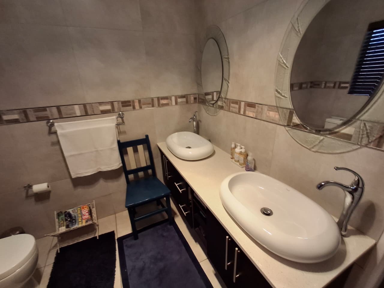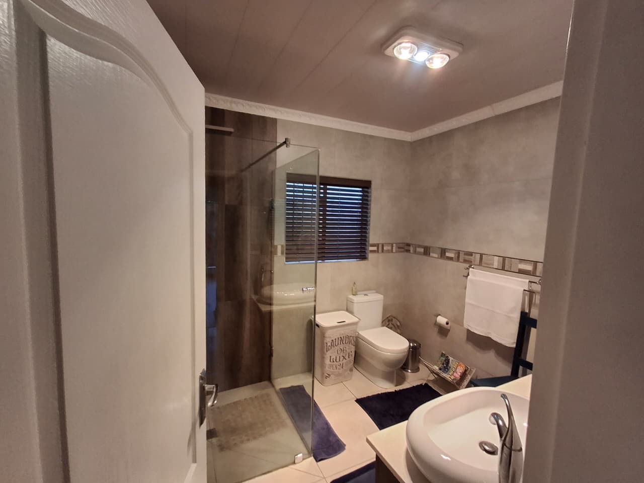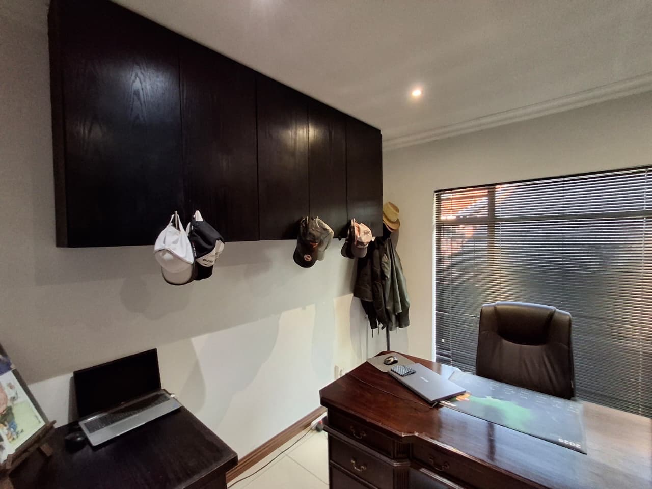 Nestled in the established suburb of Falcon Ridge, Vereeniging, this charming brick residence offers comfortable living and excellent entertainment possibilities. The property presents a welcoming facade with a paved driveway leading to a covered carport, complemented by security features. Falcon Ridge is a well-regarded residential area, known for its community feel and convenient access to local amenities. Step inside to discover a well-appointed interior featuring a spacious lounge and a dedicated dining room, both equipped with air conditioning. The functional kitchen provides essential amenities. A dedicated home office, complete with built-in dark wooden cabinetry and two distinct desk areas, offers an ideal environment for remote work or study. The home comprises three comfortable bedrooms and two bathrooms, including one en-suite, providing convenience and privacy. Bathrooms feature a mix of styles, from a modern glass-enclosed shower to a functional enclosed shower. Outdoor living is a highlight, centered around a large, inviting swimming pool surrounded by extensive red brick paving. A charming thatched lapa with seating provides an ideal spot for outdoor entertaining. Further enhancing the entertainment is an enclosed, brick-walled area featuring a built-in jacuzzi and a large beverage fridge. The property also boasts a separate brick structure, offering potential as a guesthouse or utility space, alongside a Wendy house for extra storage. Security is well-addressed with an alarm system, CCTV, security gates, and burglar bars. Parking is abundant with two garages and additional space for five vehicles. Practical amenities include a laundry area and outside toilets, adding to the home's functionality. Key Features: * 3 Bedrooms, 2 Bathrooms (1 En-suite) * Spacious Lounge & Dining Room with Air Conditioning * Dedicated Home Office/Study * Large Swimming Pool & Thatched Lapa * Enclosed Entertainment Area with Jacuzzi * 2 Garages & Ample Parking for 5 Vehicles * Separate Brick Structure (Potential Flatlet) & Wendy House * Enhanced Security: Alarm, CCTV, Burglar Bars, Security Gates * Established Garden & Paved Driveway