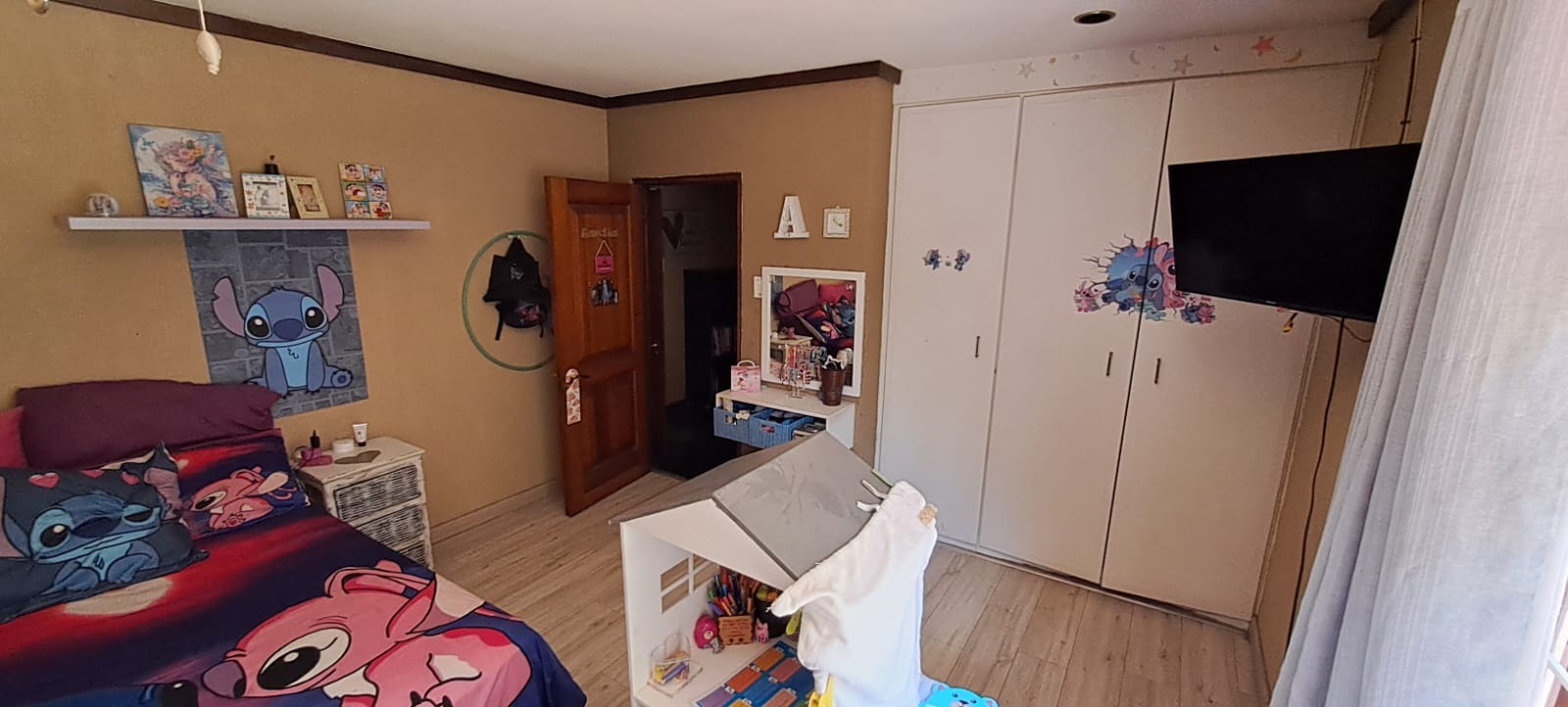 Main bedroom with walk-in cupboards and a full en-suite bathroom (shower, bath, toilet) with a skylight