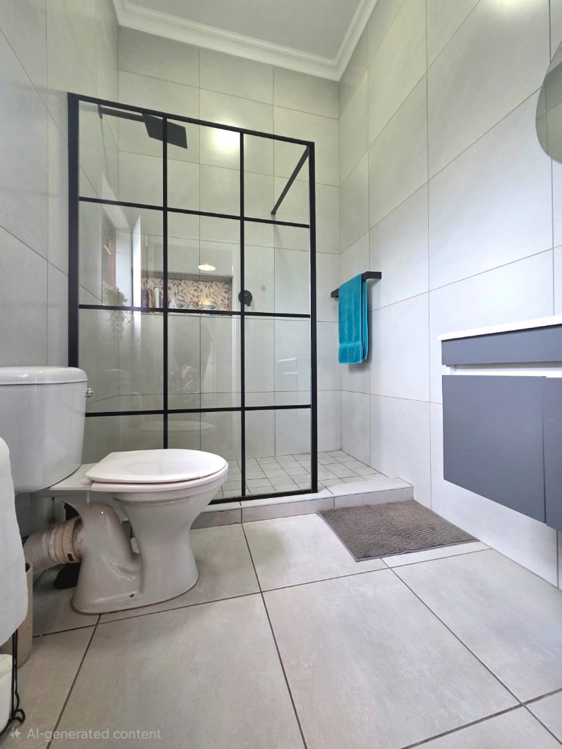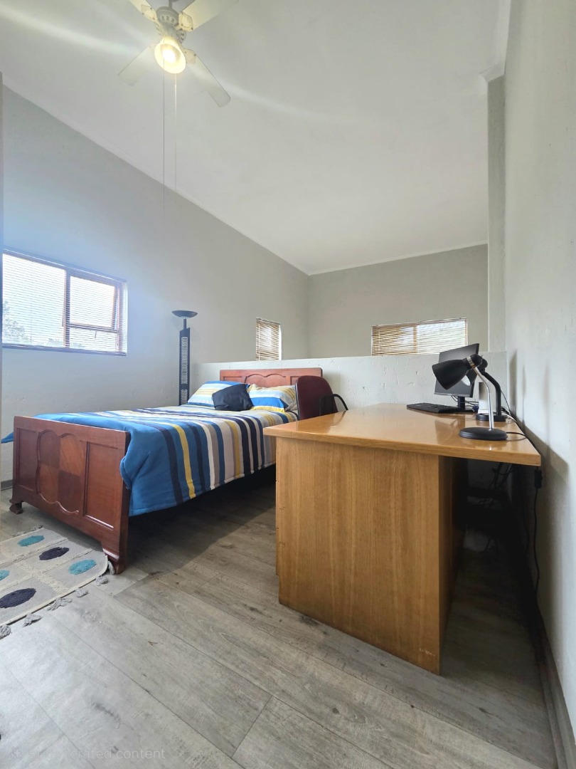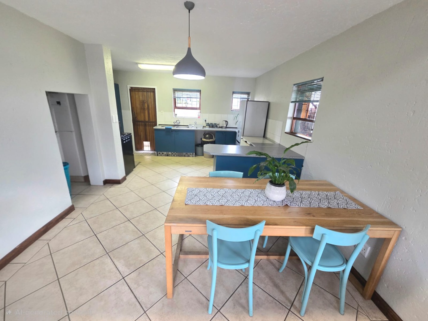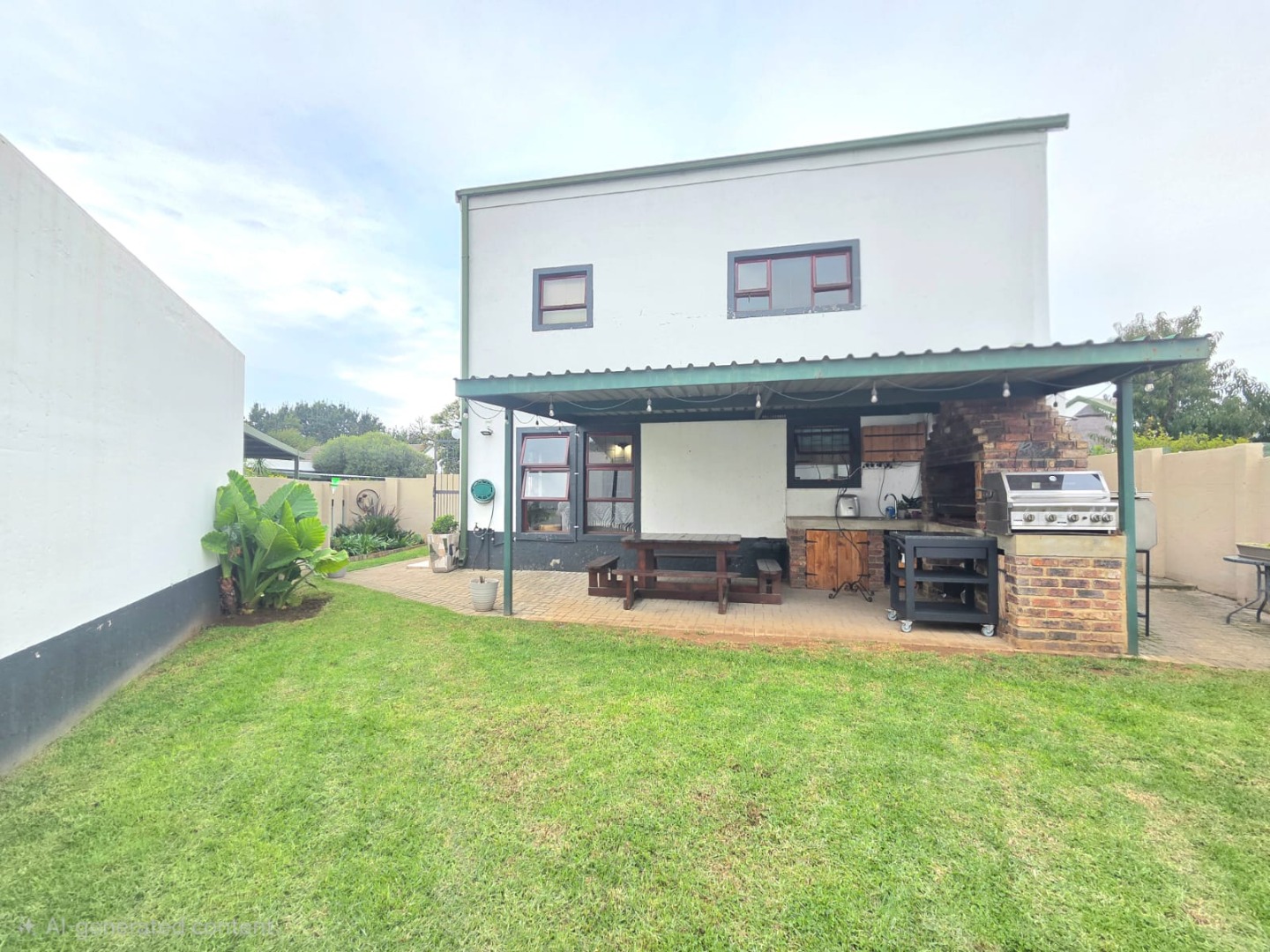 Step outside to a private patio area, complete with a built-in braai, perfect for outdoor dining and social gatherings. The garden benefits from an irrigation system and paving, ensuring easy maintenance. This pet-friendly property also comes equipped with a water tank and is fibre-ready, offering modern conveniences.