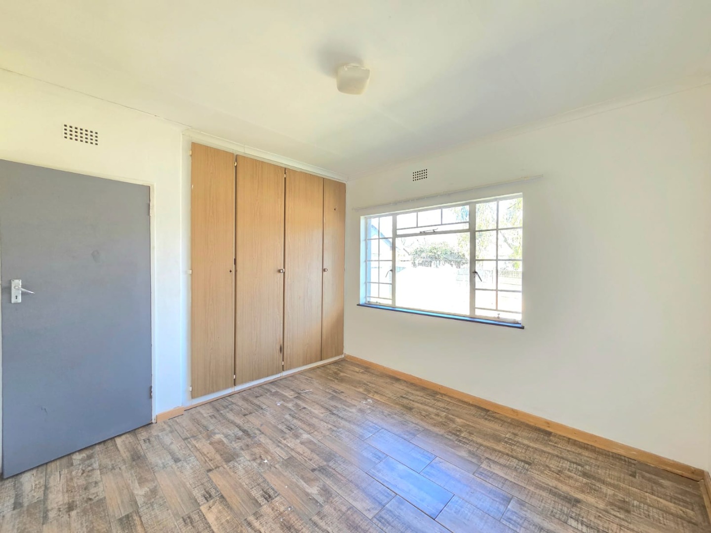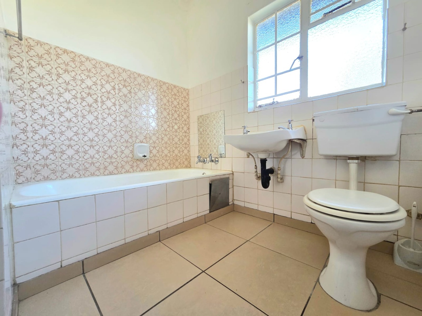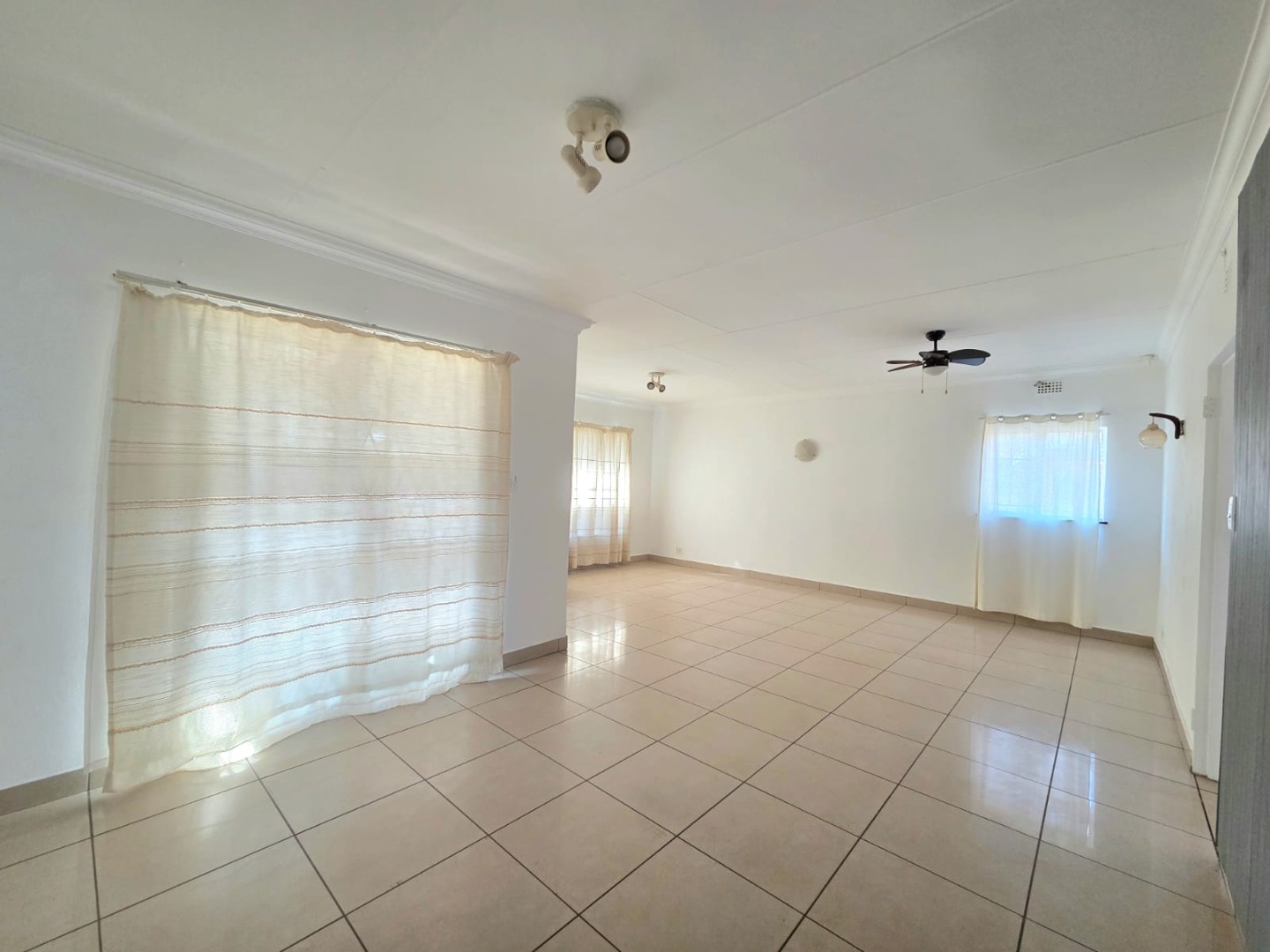 This inviting 3-bedroom, 2-bathroom home in Vaalpark offers a comfortable living experience. The interior features a spacious lounge and a dedicated dining room, both benefiting from an open-plan design that enhances the sense of space and natural light. Throughout the home, you'll find clean, light-colored tiled flooring and freshly painted white walls, providing a versatile canvas for your personal style. The functional kitchen, though featuring a dated aesthetic, provides ample counter and cabinet storage, a double sink, and space for a freestanding stove.