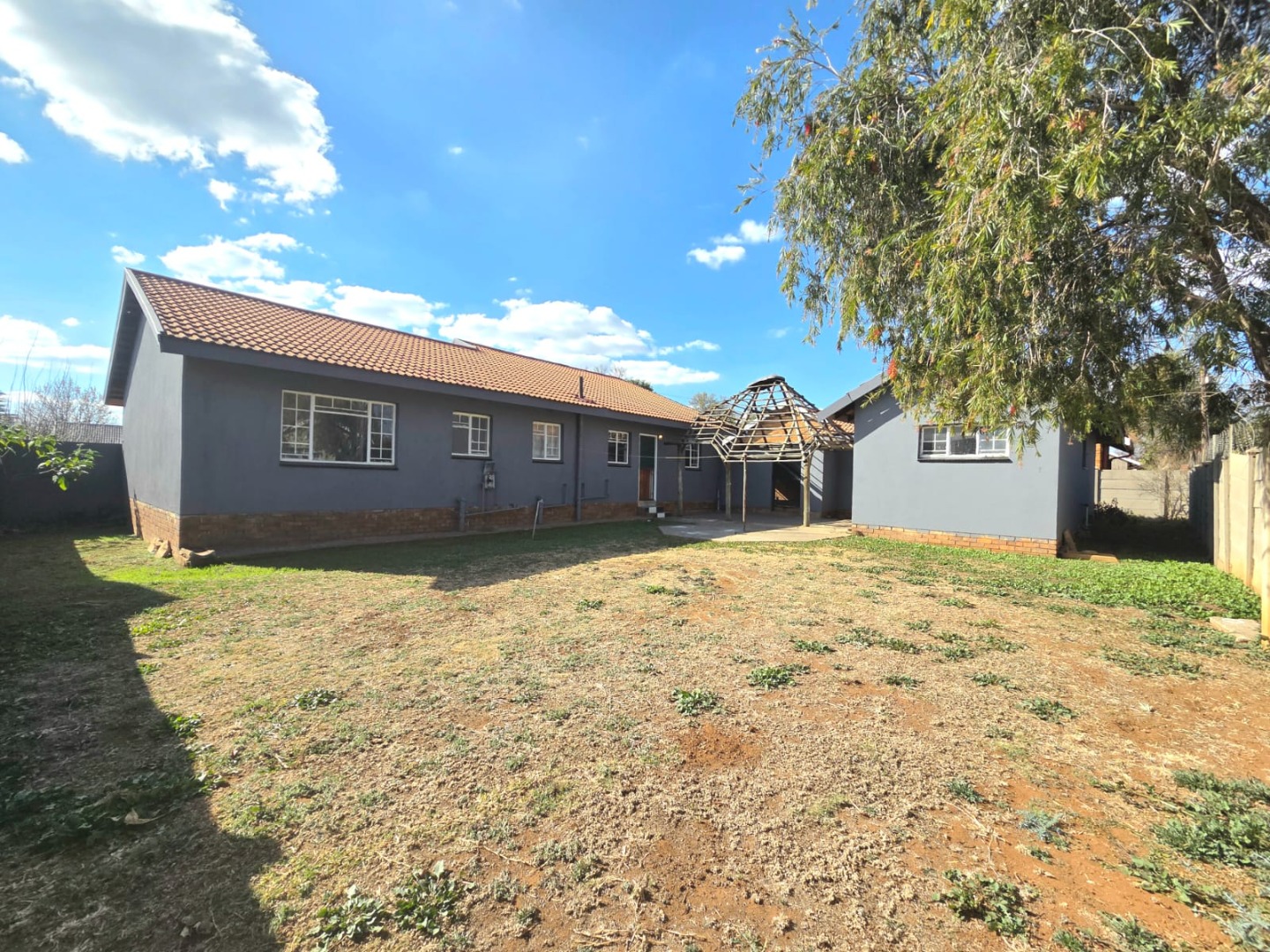 Ideal for families or individuals seeking a well-located rental, this property welcomes pets, making it a true home for all. The large 792 sqm erf includes a generous front yard and a spacious backyard, offering significant potential for gardening and outdoor activities. Practical amenities include a single garage and additional covered parking for two vehicles, ensuring convenience and protection from the elements. Domestic rooms and outside toilets add to the property's functionality.