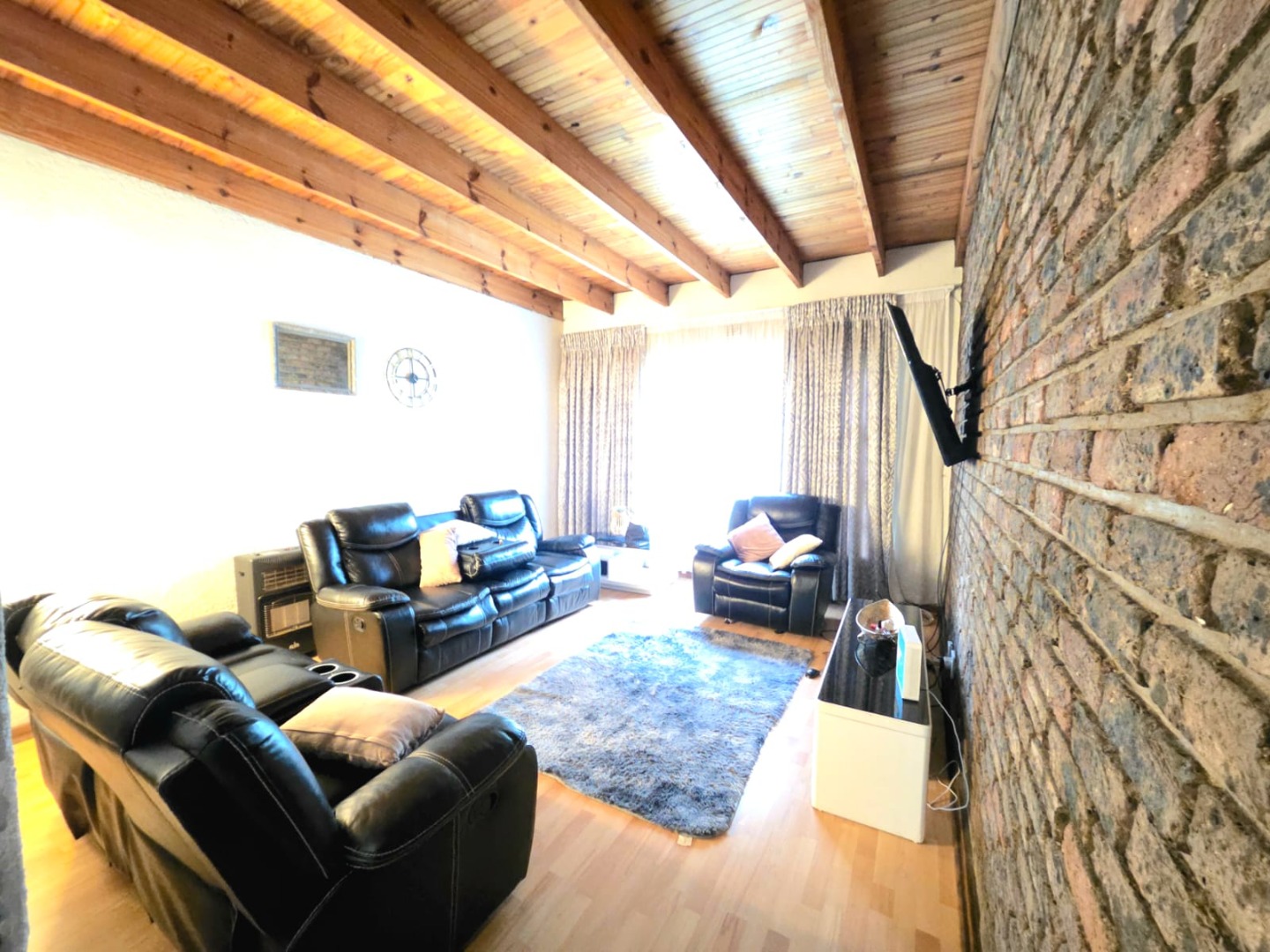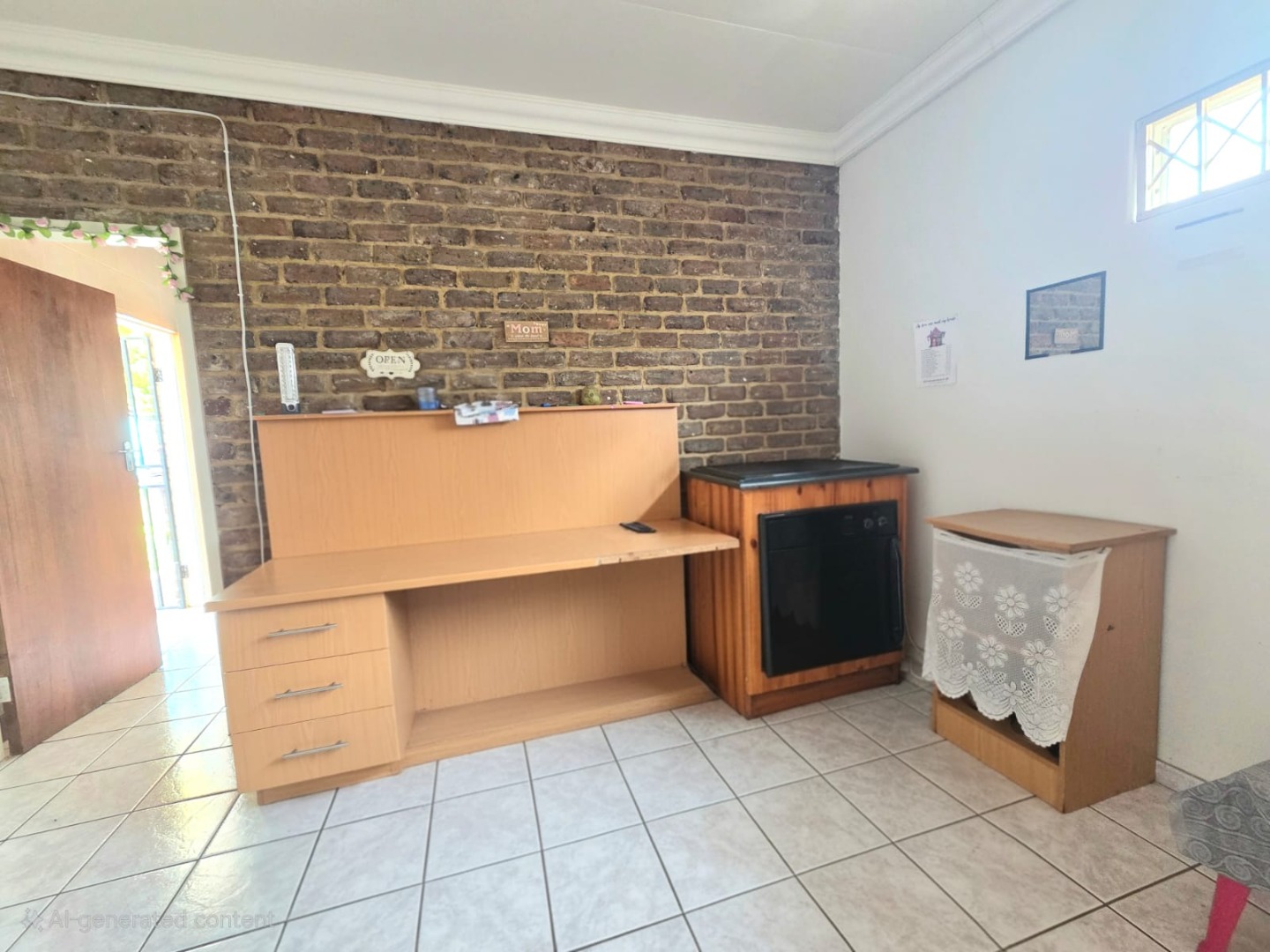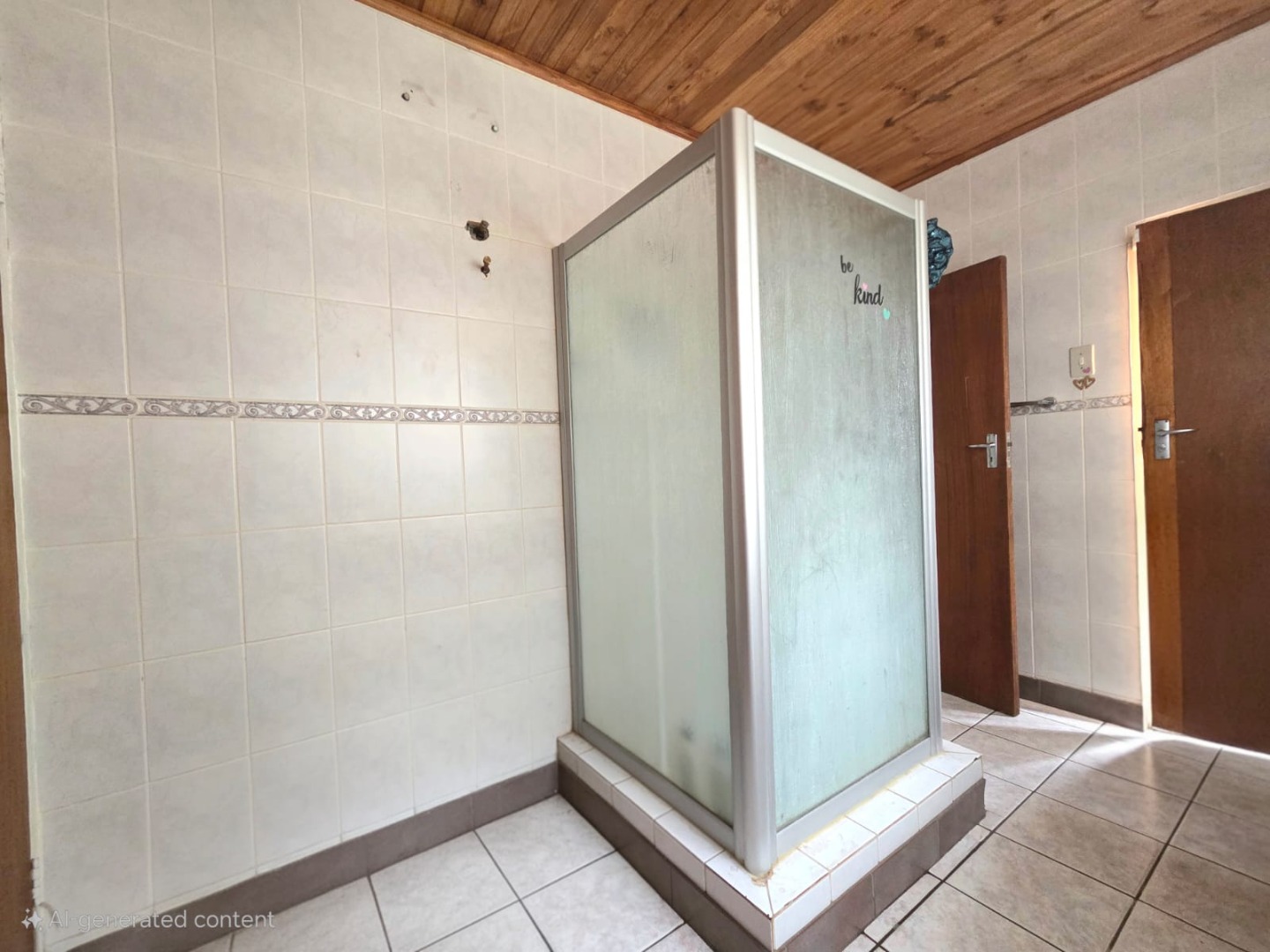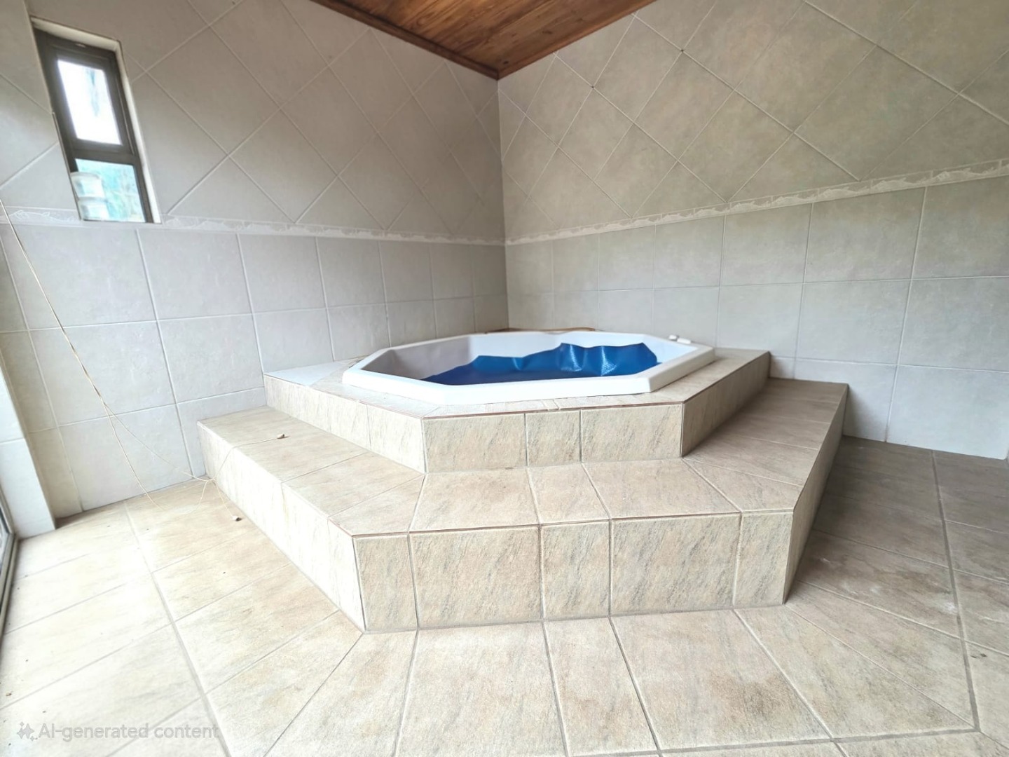 The main house features four spacious bedrooms, each fitted with built-in cupboards for ample storage. Two bathrooms, including a main en-suite, provide privacy and comfort. The large, well-appointed kitchen boasts a separate scullery, ideal for meal prep and organization. Entertain guests in the generous TV room and elegant dining area. Spacious entertainment area, complete with a built-in braai and bar, perfect for hosting gatherings. Relax and unwind in the Jacuzzi, which includes its own toilet and basin for added convenience. The property also offers two garages and ample storage space, with extra room that can be utilized as additional garages or storage solutions. A borehole supplies water solely for the garden, ensuring lush outdoor spaces, while a separate laundry room with a toilet and shower adds practicality.