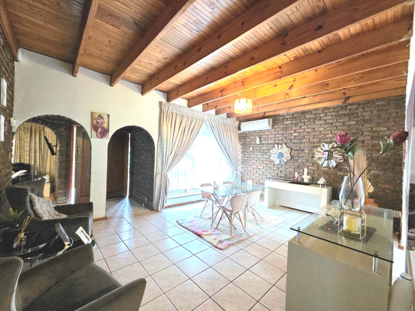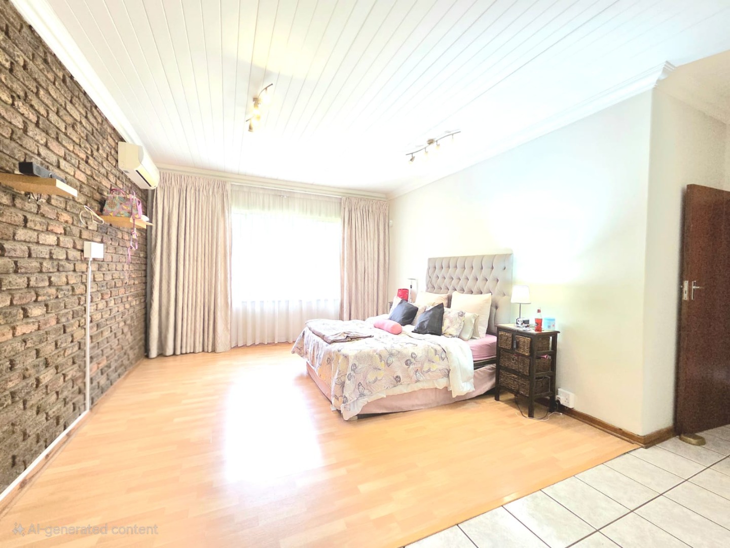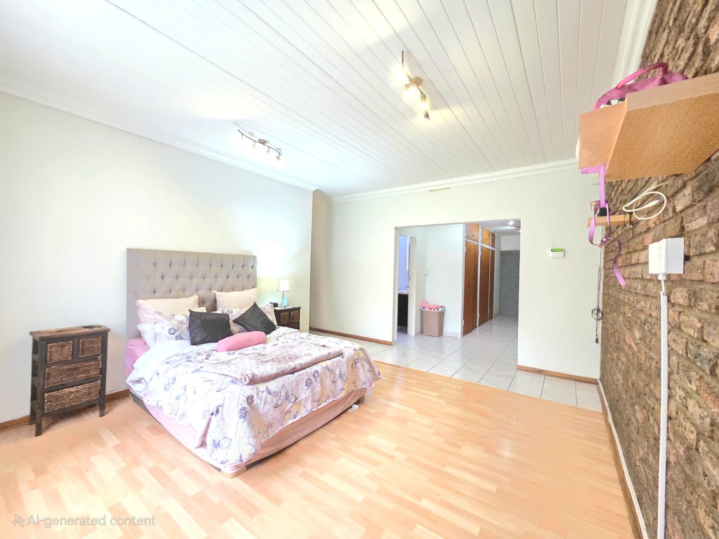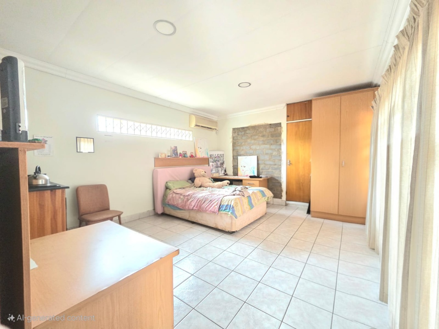 The main house features four spacious bedrooms, each fitted with built-in cupboards for ample storage. Two bathrooms, including a main en-suite, provide privacy and comfort. The large, well-appointed kitchen boasts a separate scullery, ideal for meal prep and organization. Entertain guests in the generous TV room and elegant dining area. Spacious entertainment area, complete with a built-in braai and bar, perfect for hosting gatherings. Relax and unwind in the Jacuzzi, which includes its own toilet and basin for added convenience. The property also offers two garages and ample storage space, with extra room that can be utilized as additional garages or storage solutions. A borehole supplies water solely for the garden, ensuring lush outdoor spaces, while a separate laundry room with a toilet and shower adds practicality.