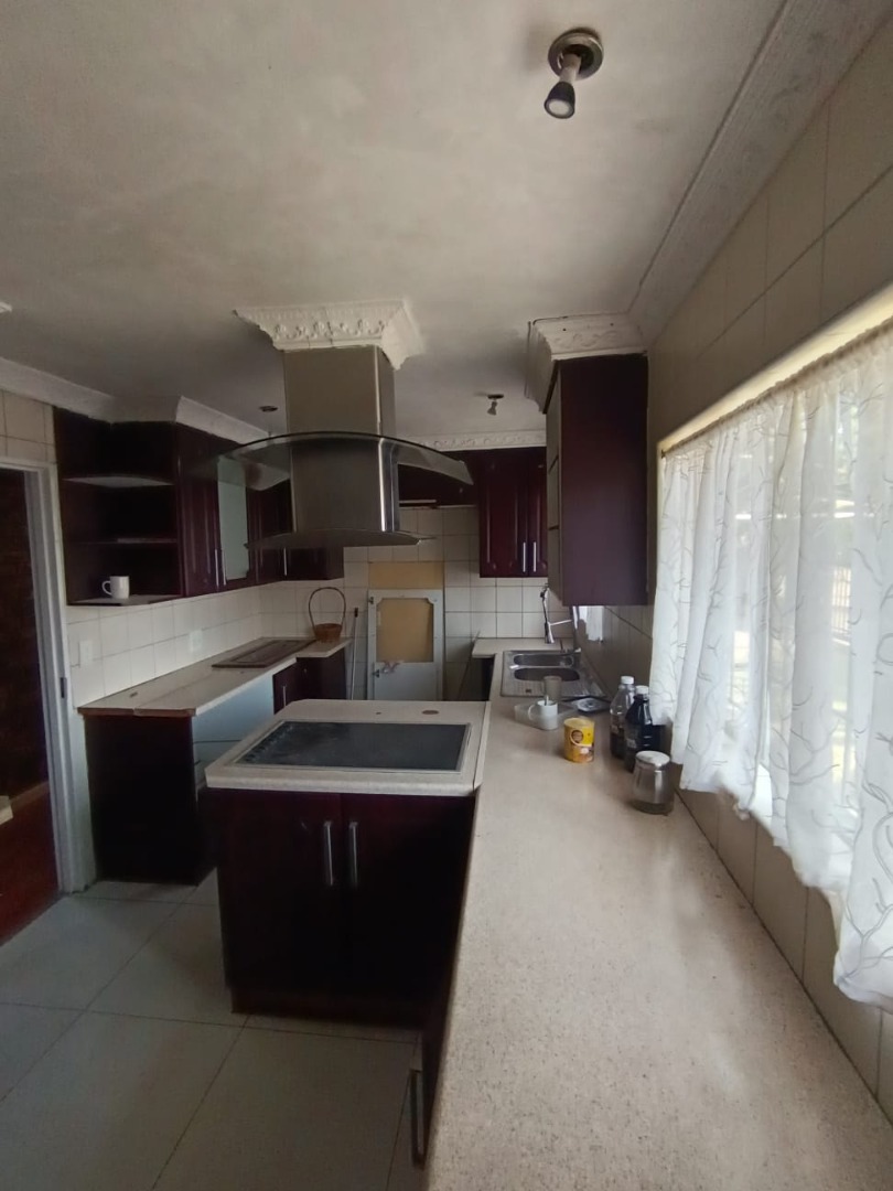 Discover this spacious 3-bedroom, 1-bathroom house available for rent in the suburban area of Waldrift, Vereeniging. This property offers a practical layout featuring a comfortable lounge, a dedicated dining room, and a kitchen equipped with dark wood-look cabinetry and a built-in hob. A double garage provides secure parking for residents, complementing the paved driveway and established green lawn.