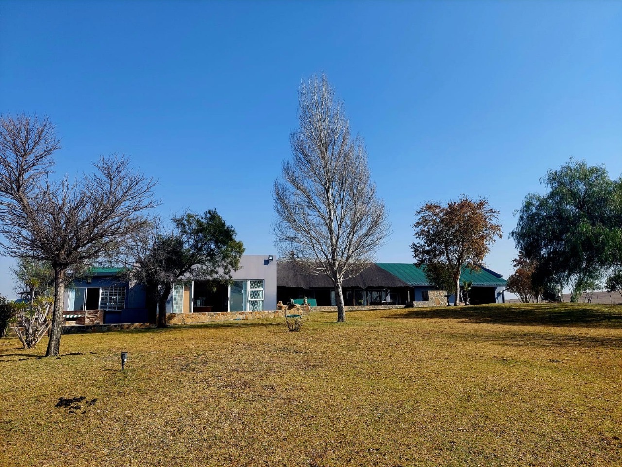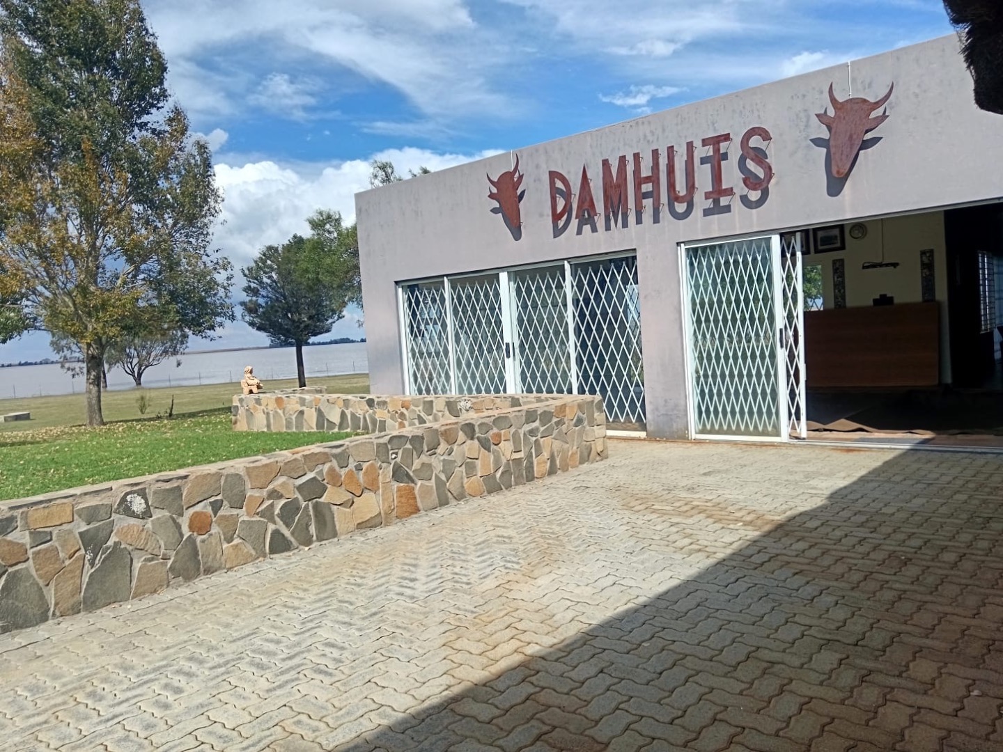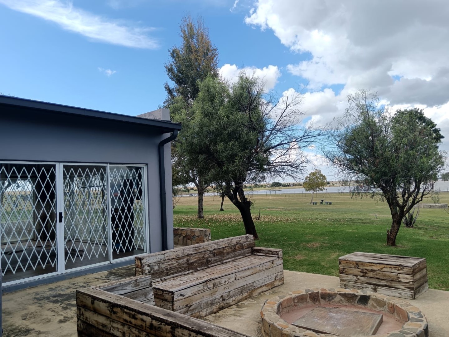 Discover an exceptional residential sale opportunity of Vaaldam SH, Deneysville, South Africa. This unique lifestyle farm and holiday home offers a tranquil escape with direct access to aquatic activities, set on a vast 1557-hectare property that promises unparalleled privacy and connection to nature. The property boasts a distinctive kerb appeal, featuring a main building with large sliding doors that invite natural light and offer seamless indoor-outdoor living, complemented by a charming separate building with a thatched roof and an outdoor braai area. And a one bedroom flat