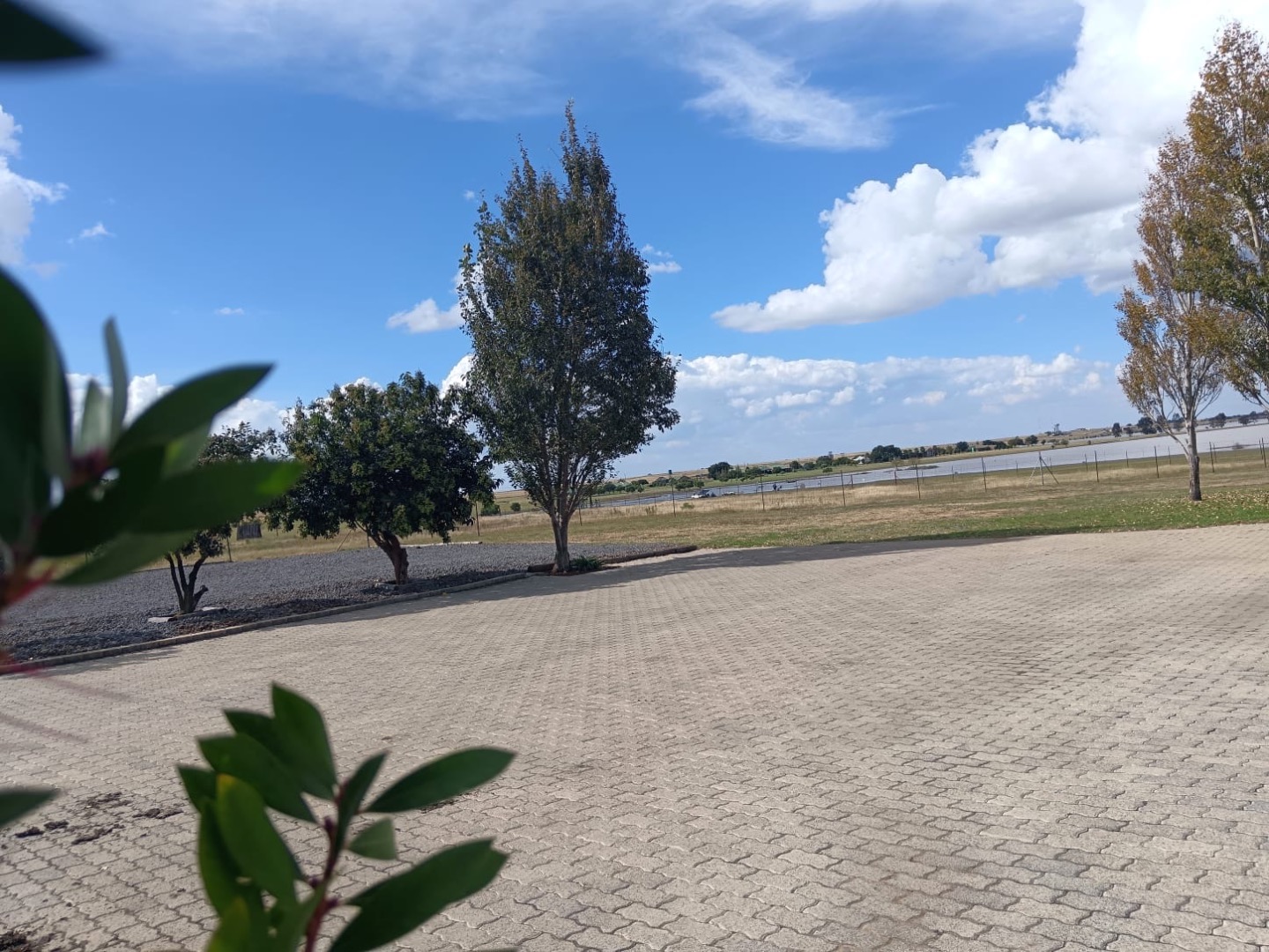 Discover an exceptional residential sale opportunity of Vaaldam SH, Deneysville, South Africa. This unique lifestyle farm and holiday home offers a tranquil escape with direct access to aquatic activities, set on a vast 1557-hectare property that promises unparalleled privacy and connection to nature. The property boasts a distinctive kerb appeal, featuring a main building with large sliding doors that invite natural light and offer seamless indoor-outdoor living, complemented by a charming separate building with a thatched roof and an outdoor braai area. And a one bedroom flat