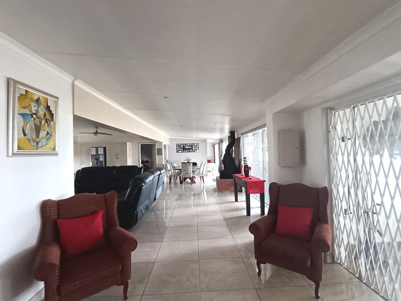 The interior of this five-bedroom, three-bathroom residence is designed for comfortable living. The modern kitchen is well-appointed with sleek white cabinetry, light-coloured countertops, and integrated appliances, ensuring functionality and style. The living areas feature durable tiled flooring and benefit from abundant natural light, with large glass sliding doors opening to a balcony, perfect for enjoying the scenic surroundings. One of the bedrooms includes a space-saving bunk bed, ideal for families or guests.