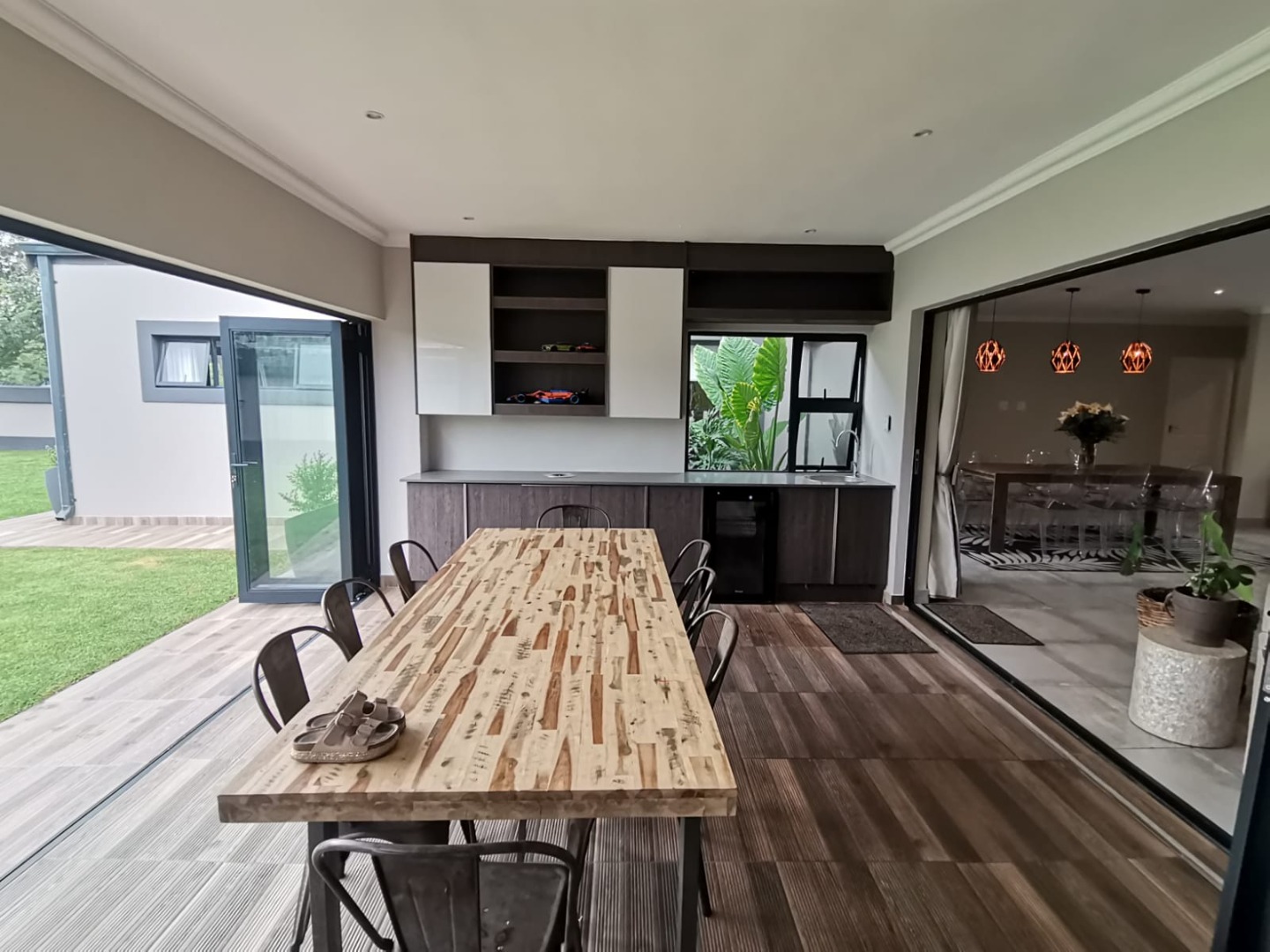 Step outside to an enclosed entertainment area featuring a built-in braai and stackable doors that open fully to the inviting pool area, creating the perfect indoor-outdoor flow for entertaining or relaxing.