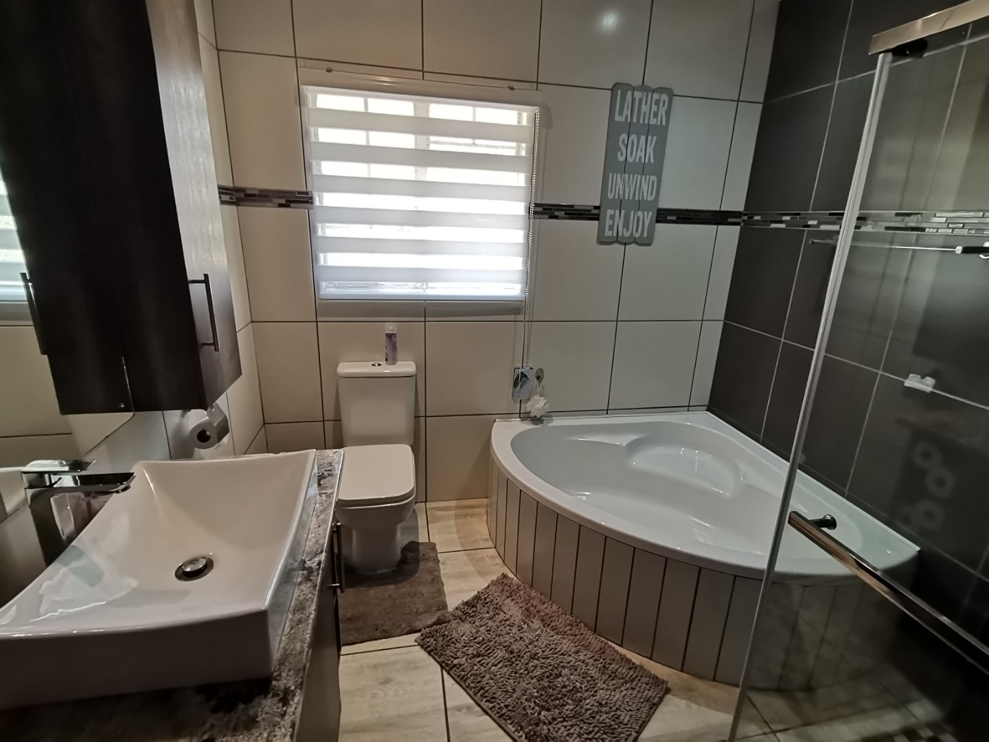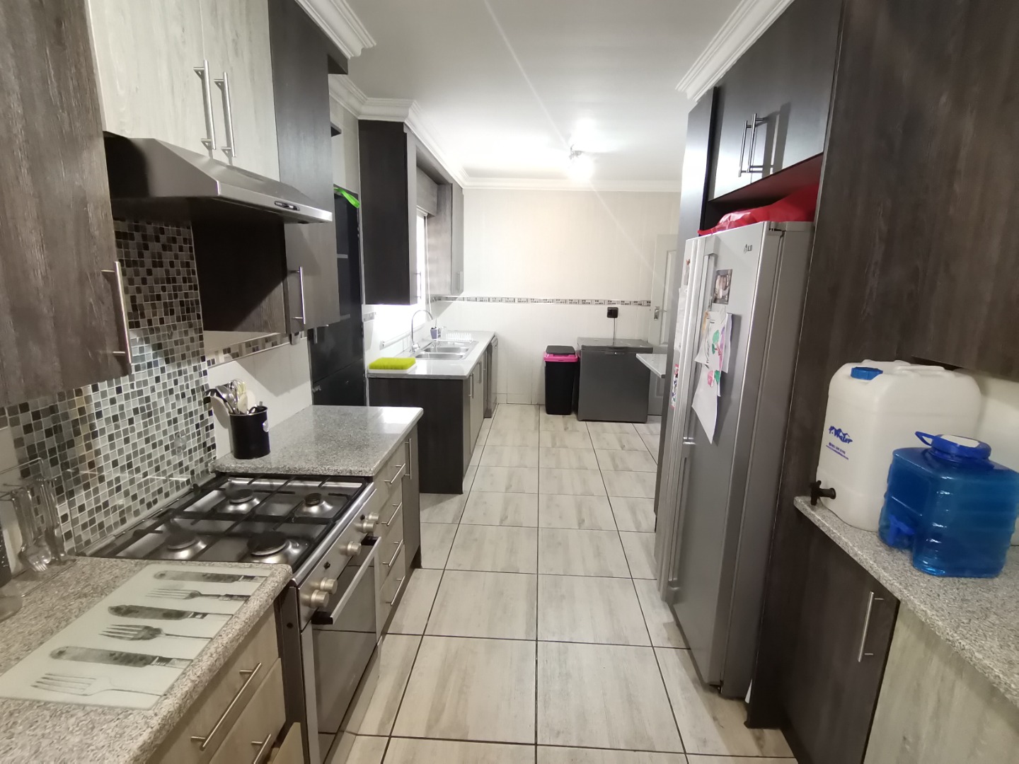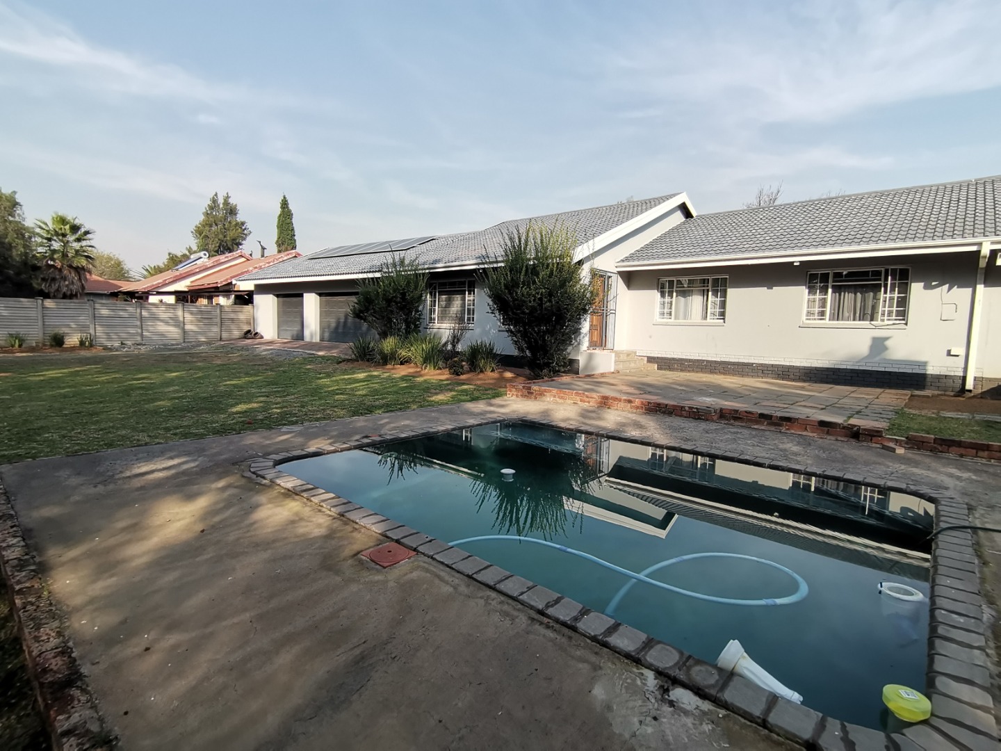 Gorgeous, ready-to-move-in family residence with a pool and four garages available in Vaalpark. This modern home features airy, open-plan living spaces that flow effortlessly to a pristine swimming pool and braai area. The large garden, complete with an irrigation system, provides plenty of space for future expansions. The sleek kitchen is a culinary delight, offering abundant storage, granite surfaces, a charming breakfast corner, and a gas stove. The home boasts three spacious bedrooms with built-in closets. The primary bedroom includes a study, with approved plans for conversion into an en-suite bathroom. The property features a stylish bathroom with a bathtub and shower, plus a separate guest restroom. Security is ensured with an alarm system and outdoor beams. Parking is plentiful with four garages and a double carport. Eco-friendly with six solar panels, a 5kW inverter, and a 5.12kWh lithium battery. Additional highlights include an outdoor bathroom and approved plans for an entertainment space. Reach out today to arrange a viewing!