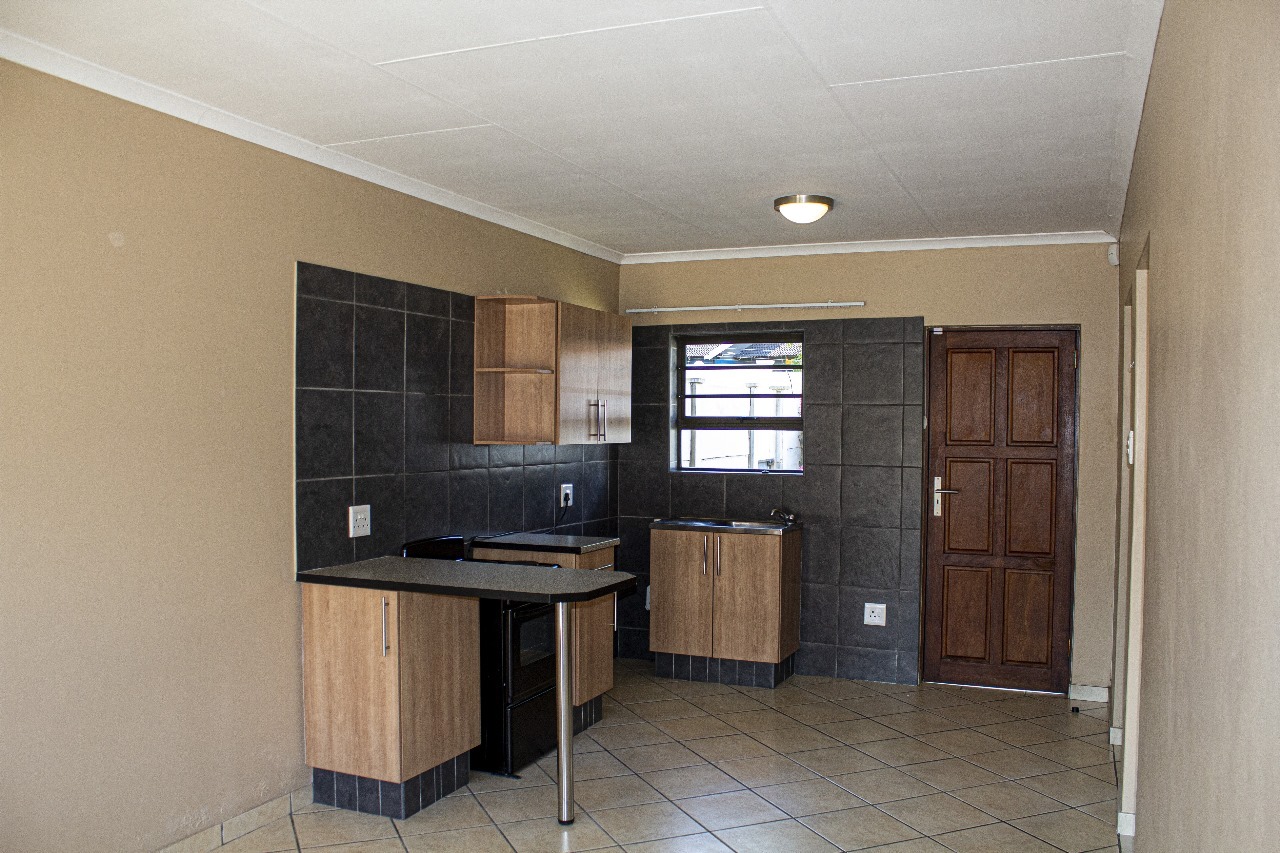 Discover this neat 1-bedroom unit situated within a well-maintained complex in Sasolburg Ext 10. The property presents a durable brick exterior and a classic red tiled roof, offering a welcoming first impression. A paved parking area is conveniently located directly in front, complemented by a covered carport, ensuring practical and protected parking for residents. This single-story unit provides a compact and efficient living solution. Step inside to find a functional interior designed for comfortable living. The lounge area features neutral beige walls and cream-colored tiled flooring, creating a versatile canvas for personal decor. A large window allows ample natural light to fill the space, overlooking the communal parking area. The compact kitchen is equipped with light wood-look cabinetry, dark tiled walls, an integrated stove, and tiled flooring, providing a clean and practical space for meal preparation. The single bedroom offers a private retreat, complete with light brown walls and durable tiled flooring. It includes a built-in wooden wardrobe, thoughtfully designed with an integrated small desk or shelf, maximizing storage and utility within the space. The bathroom is fully tiled, featuring a bathtub with an overhead shower, a toilet, and a window for natural light and ventilation, ensuring all essential amenities are met. Security is a key consideration, with security gates on doors and security bars on windows providing enhanced peace of mind. This unit is part of a well-managed complex, offering a sense of community and convenient living. Situated in the vibrant city of Sasolburg, South Africa, this property provides easy access to local amenities and services. Key Features: * 1 Bedroom, 1 Bathroom Unit * Functional Kitchen with Integrated Stove * Comfortable Lounge Area * Built-in Wardrobe with Desk * Tiled Flooring Throughout * Covered Carport Parking * Enhanced Security Features * Located in a Complex in Sasolburg Ext 10