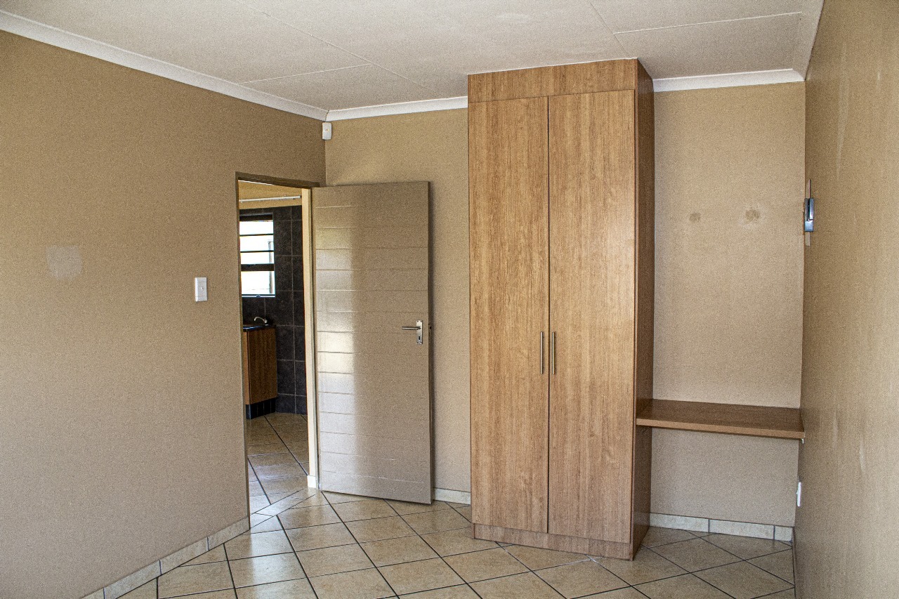 Discover this inviting 1-bedroom, 1-bathroom unit situated within a well-maintained complex in Sasolburg Ext 10. The property features durable brick construction with classic terracotta tile roofs, offering a timeless aesthetic. Ample shaded parking is provided by carports within a paved area, complemented by mature trees that enhance the green surroundings and offer natural shade. Step inside to a functional and comfortable living space. The lounge area boasts neutral beige walls and tiled flooring, creating a versatile canvas for personal decor, with natural light filtering in. The compact yet efficient kitchen is equipped with modern light wood-toned cabinetry, dark tiled walls, and a freestanding stove/oven, providing all essential amenities for daily living. The bedroom continues the theme of practicality and comfort, featuring neutral tan walls, tiled flooring, and a convenient built-in wooden wardrobe for storage. The adjacent bathroom is fully tiled, offering easy maintenance, and includes a bathtub with an overhead shower, ensuring a complete and functional space. A window in the bathroom provides natural light and ventilation. Security is a key consideration, with visible burglar bars on windows and security gates on doors, contributing to peace of mind within this complex environment. The property offers one dedicated parking space, adding to the convenience for residents. Sasolburg Ext 10 is a residential area known for its community feel and accessibility to local amenities, making it an ideal location for individuals or couples seeking a practical and secure home in Sasolburg. Key Features: * 1 Bedroom, 1 Bathroom * Functional Kitchen with Freestanding Stove * Comfortable Lounge Area * Tiled Flooring Throughout * Built-in Wardrobe * Shaded Carport Parking * Visible Security Features * Located in a Secure Complex * Durable Brick Construction * Mature Trees for Shade