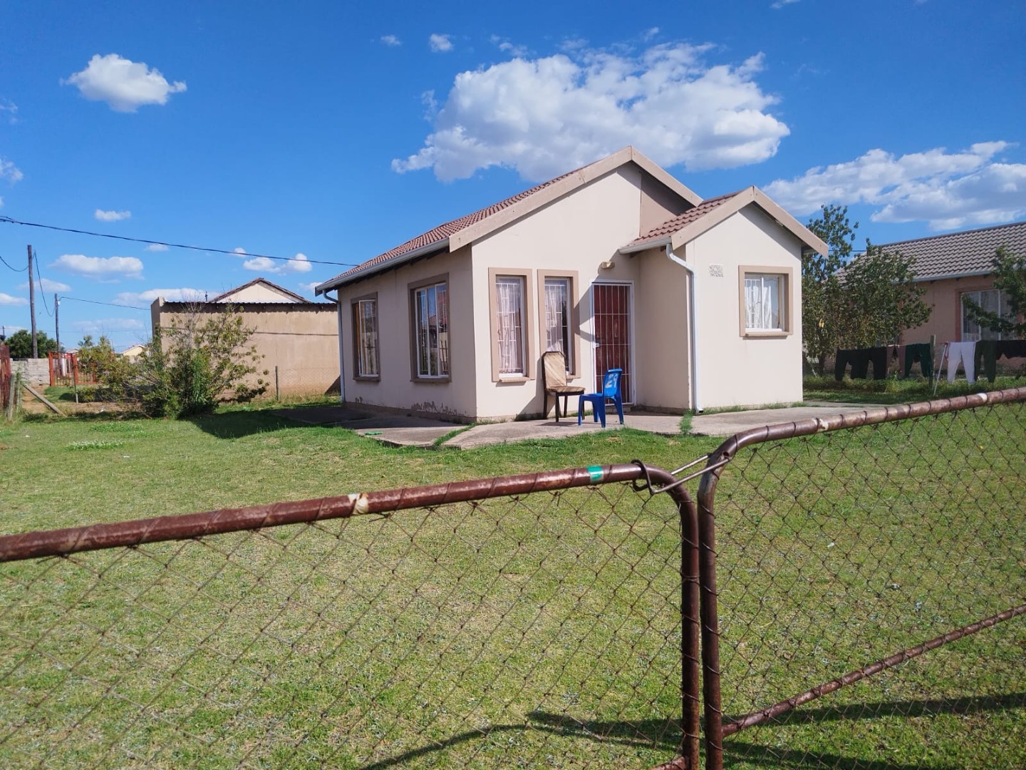 Discover this charming single-story home located in the residential area of Zamdela, Sasolburg. Presenting a clean, cream-colored exterior and a well-maintained grassy front yard, this property offers a welcoming first impression. Security bars on windows and the main door provide peace of mind, ensuring a secure living environment. Step inside to find a functional layout featuring a comfortable lounge and a practical kitchen, both designed for everyday living. The interior boasts light tiled flooring throughout, complemented by neutral wall colours that offer a versatile canvas for personal customisation. The kitchen is ready for your culinary touch, while the lounge provides a dedicated space for relaxation. This residence comprises two well-proportioned bedrooms, each fitted with convenient built-in wardrobes, ensuring ample storage space. The bedrooms maintain the consistent tiled flooring and neutral aesthetic found throughout the home, promoting a cohesive design. A single, neatly appointed bathroom serves both bedrooms, completing the interior amenities. The property benefits from a spacious grassy yard, offering potential for outdoor activities or future landscaping projects. The exterior is partially enclosed by fencing, providing a defined boundary. While currently featuring basic outdoor elements, the generous plot size allows for creative development to enhance your outdoor lifestyle. Situated in Zamdela, a residential suburb of Sasolburg, this home offers access to local amenities and community facilities. Sasolburg provides a blend of industrial and residential opportunities within the Free State province. Key Features: * Two bedrooms with built-in wardrobes * One bathroom * Comfortable lounge area * Functional kitchen * Light tiled flooring throughout * Neutral interior walls * Spacious grassy yard * Security bars on windows and door * Located in Zamdela, Sasolburg