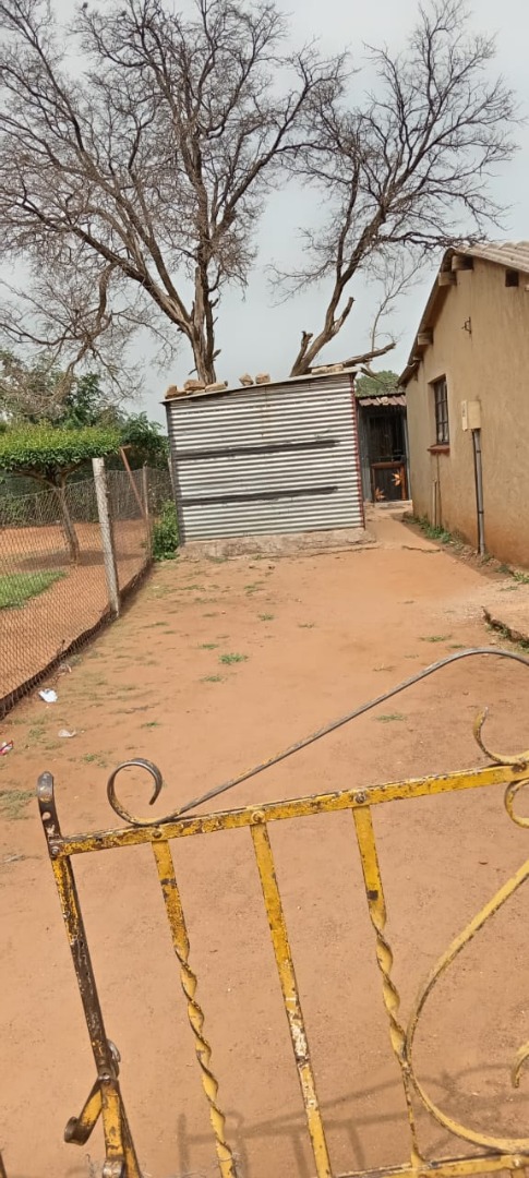 Outdoors, the 289 sqm erf provides generous space for development. The unlandscaped dirt yard, enclosed by basic fencing, offers a blank slate for creating a vibrant garden or an inviting outdoor entertainment area. A small shed provides additional storage, and a large, mature tree promises future shade. Security bars on windows and a decorated security door enhance safety.