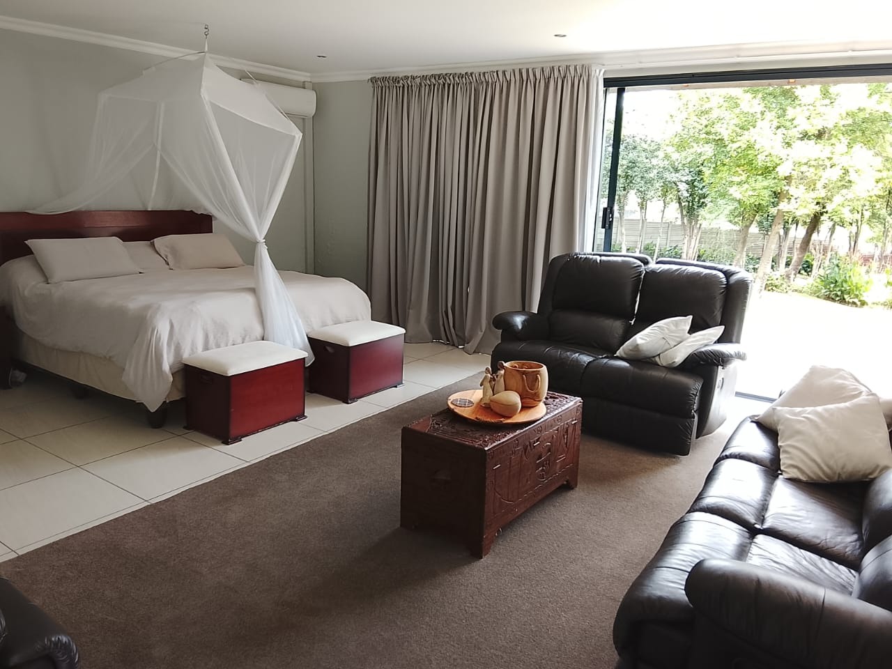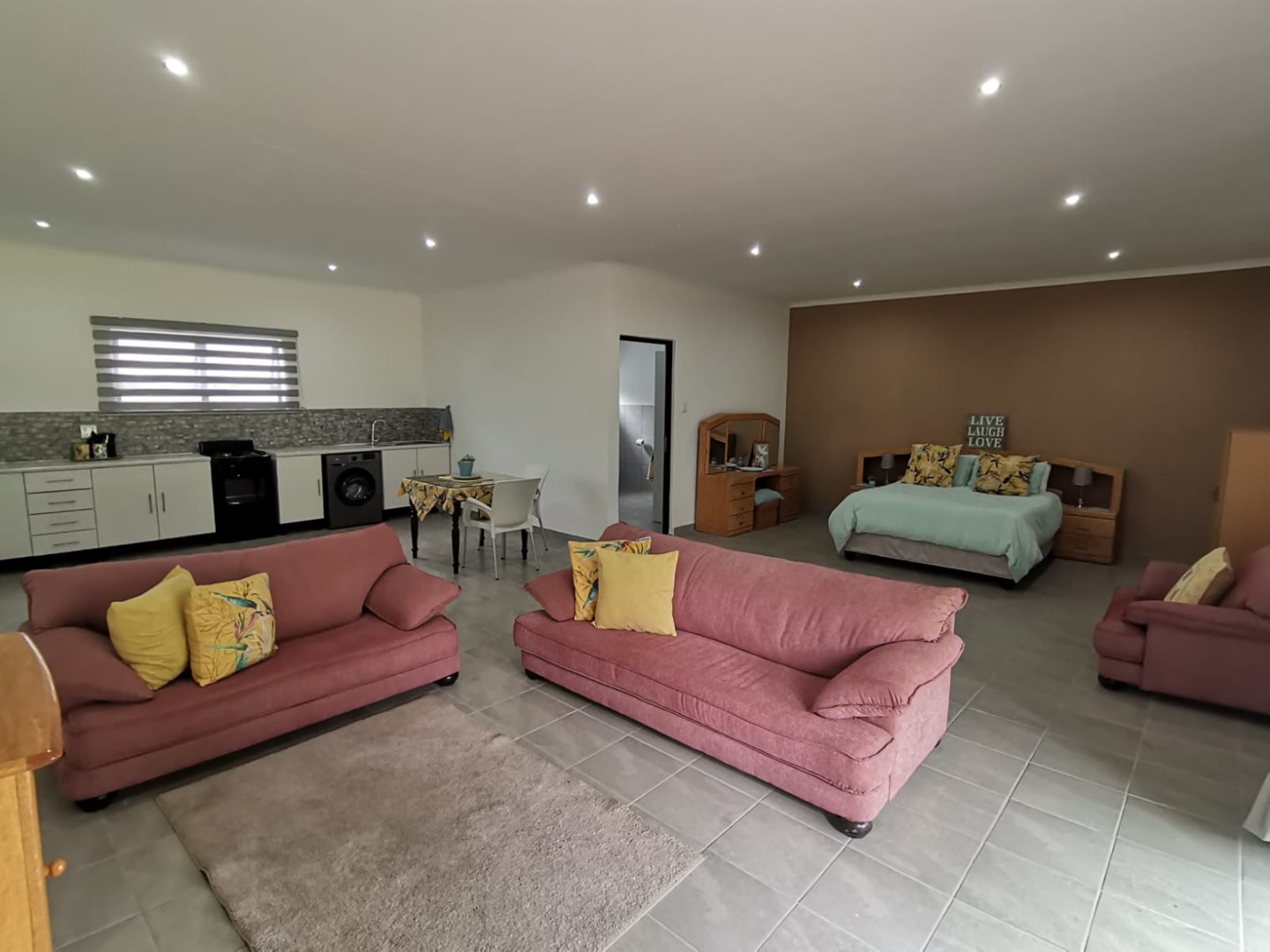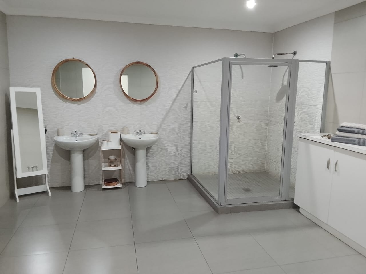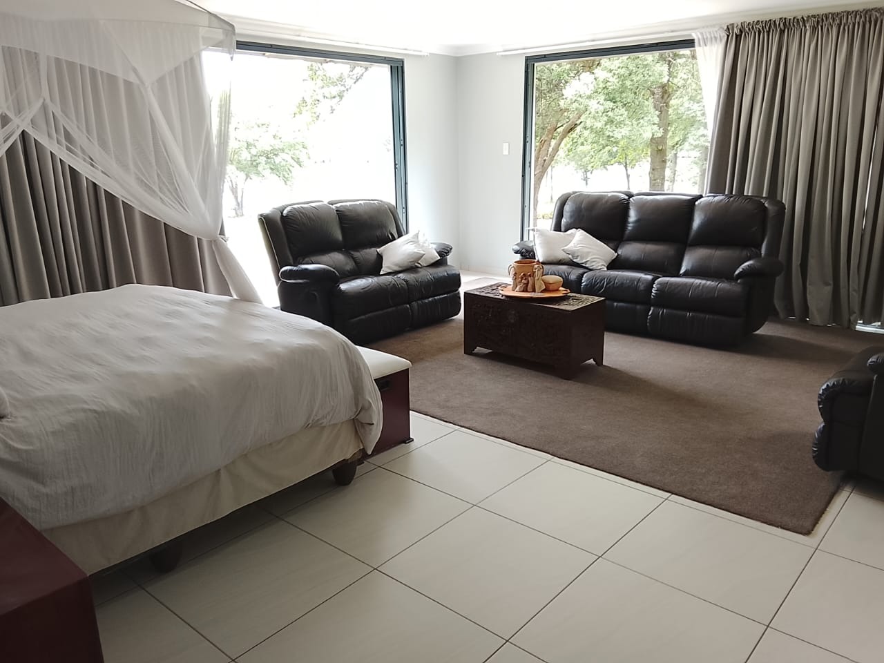 Additional accommodation includes two 80m² studio cottages, each with large walk-in showers, basins, toilets, cupboards, and gas geysers.